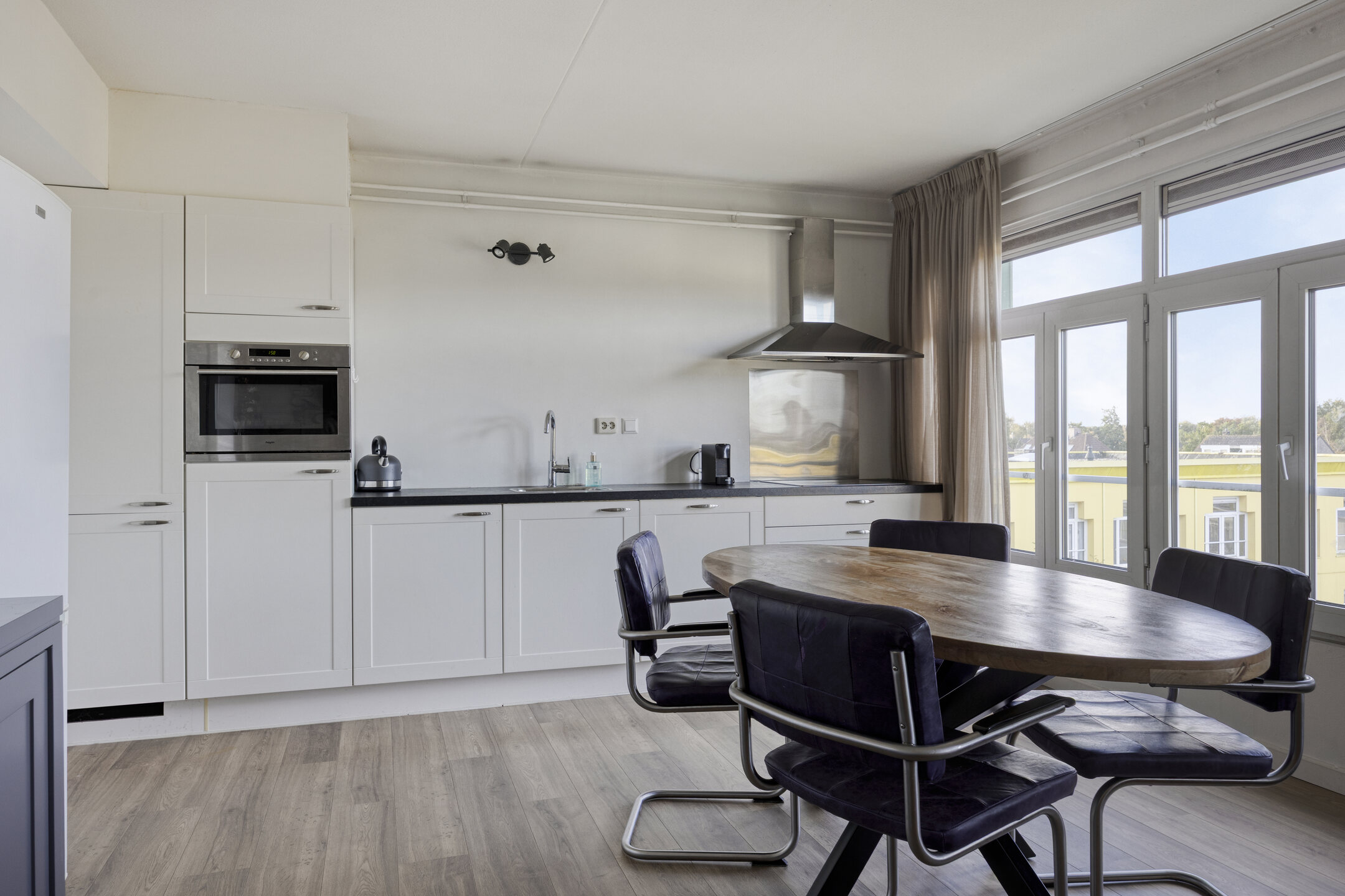 In the living room, your eye is immediately drawn to the large number of windows that provide a pleasant amount of natural light. This creates a feeling of spaciousness, making it a truly wonderful place and truly the heart of the home. The open-plan kitchen is fully equipped.