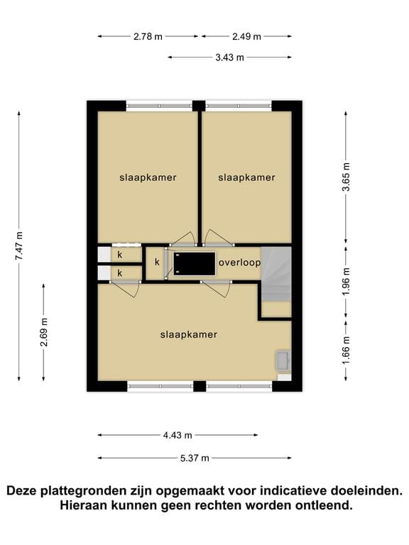 Via the stairs in the hall you reach the landing, which gives access to the 3 bedrooms of the house. The largest bedroom is at the front of the house. Appropriate for homes of this year of construction is a sink and, just like in the living room, a fixed cupboard. Ideal for storing clothes, leaving more than enough space for a king size bed! The other two bedrooms can be found at the rear of the house. These can of course also be used as an office or work space. A loft ladder has been placed in the ceiling of the landing, which provides access to the attic. So there is even more space for all your things here. Are you looking for an energy-efficient and child-friendly home for your family? Then make a viewing appointment quickly!
