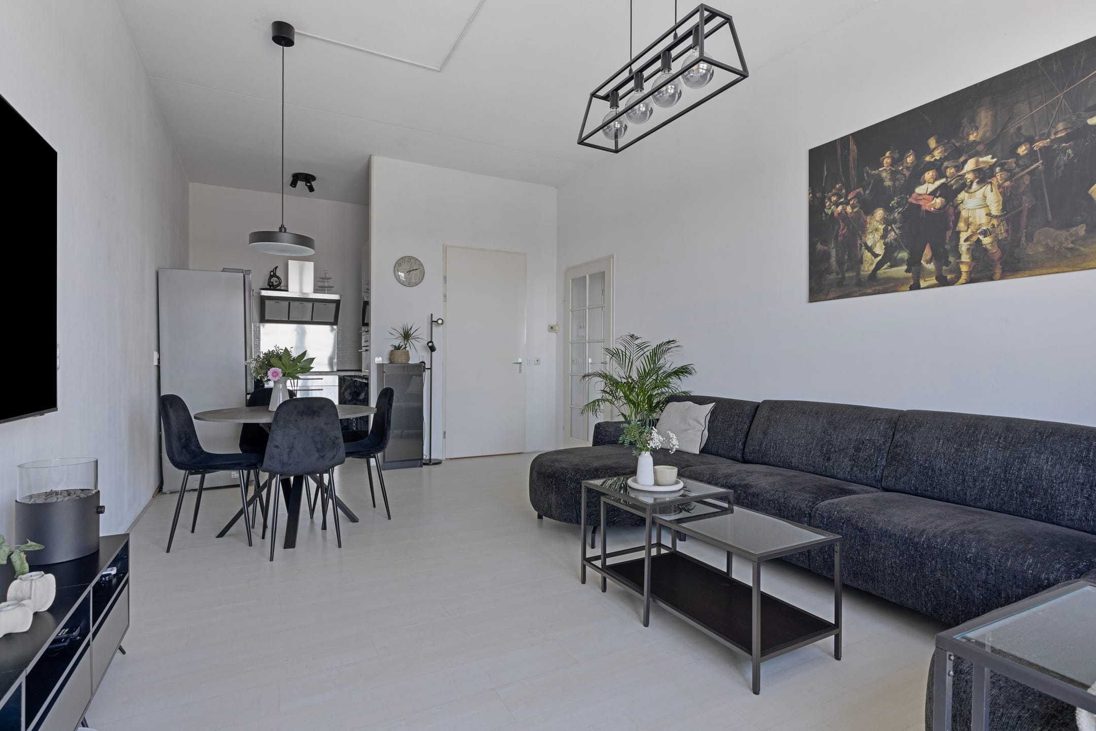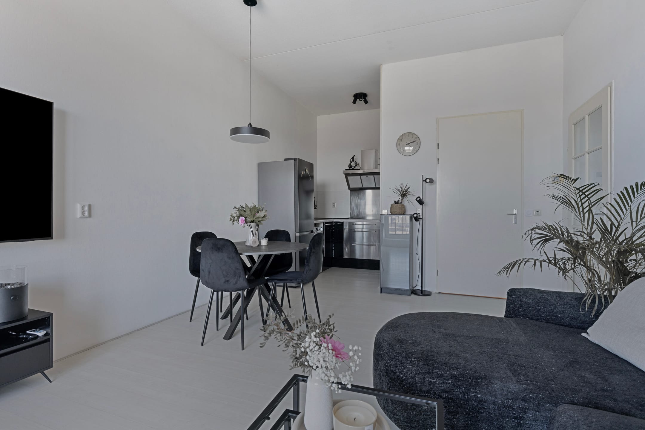 This well-maintained apartment with high ceilings offers everything you are looking for in a comfortable home. With a bright living room with French balcony, an open kitchen, a spacious bedroom with French balcony, this apartment is ready to move in. The house is neatly finished and has a smart layout that makes optimal use of the space. Here you live comfortably and centrally; a place where you will immediately feel at home. Upon arrival, you enter the communal entrance of the building, where the mailboxes and intercoms are also located. You reach the apartment via the stairs or elevator and enter a spacious hall, which gives you access to all rooms. This bright and inviting hallway forms the first impression of the home, and immediately provides a warm welcome. This spacious living room, the focal point of the home, radiates light and space thanks to the large windows that let in plenty of natural daylight.