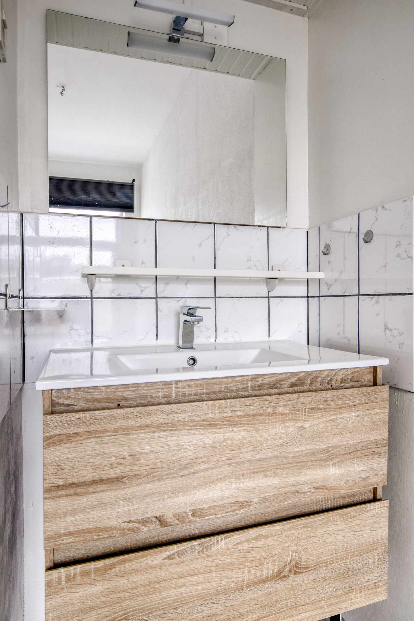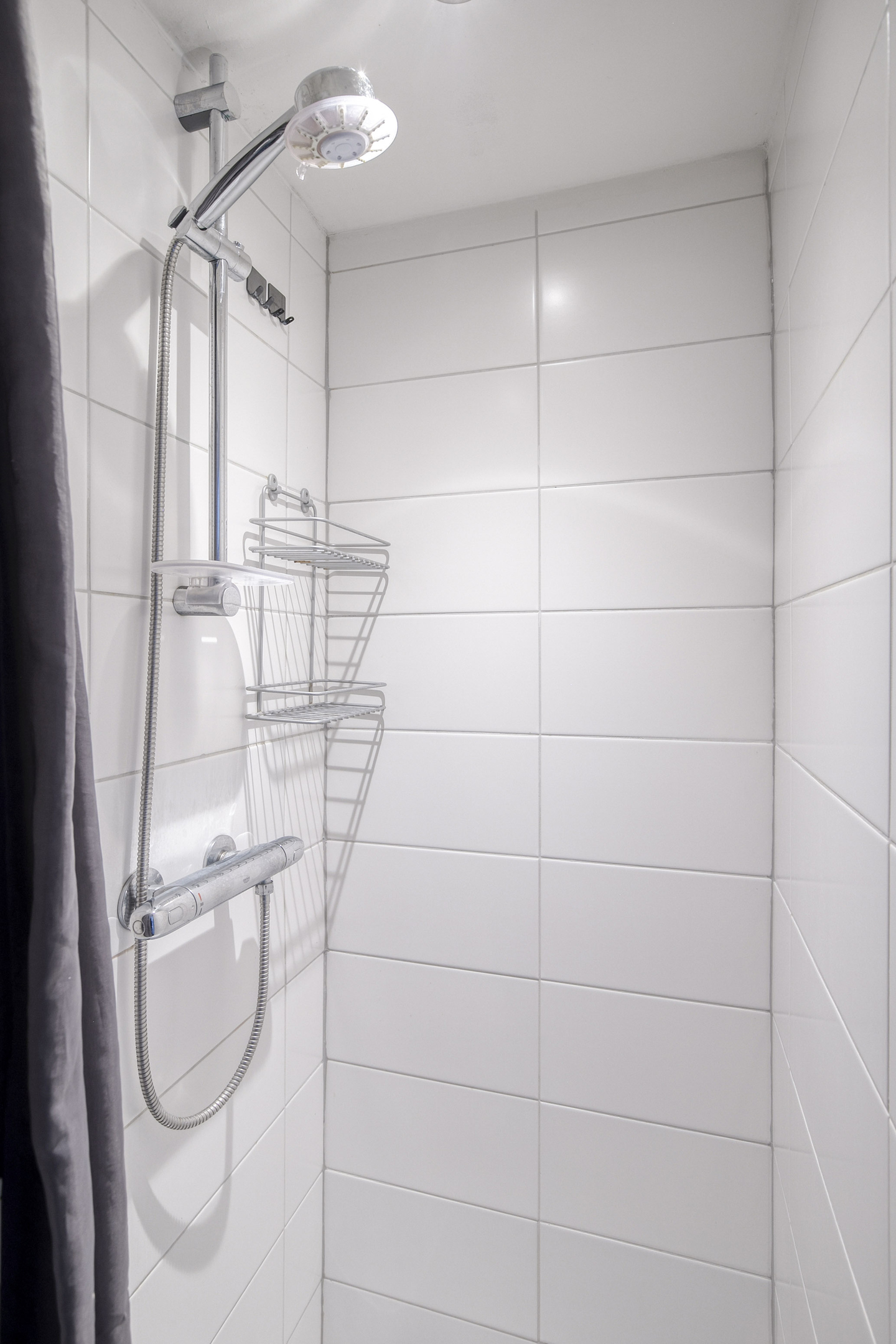 Eenmaal aangekomen in de badkamer ontdekt u een verzorgde ruimte die geheel is betegeld en voorzien is van een ruime douche, een zwevend toilet en een wastafel met spiegel. De nette staat van onderhoud en de praktische indeling maken dit tot een aangename plek voor uw dagelijkse verzorging.