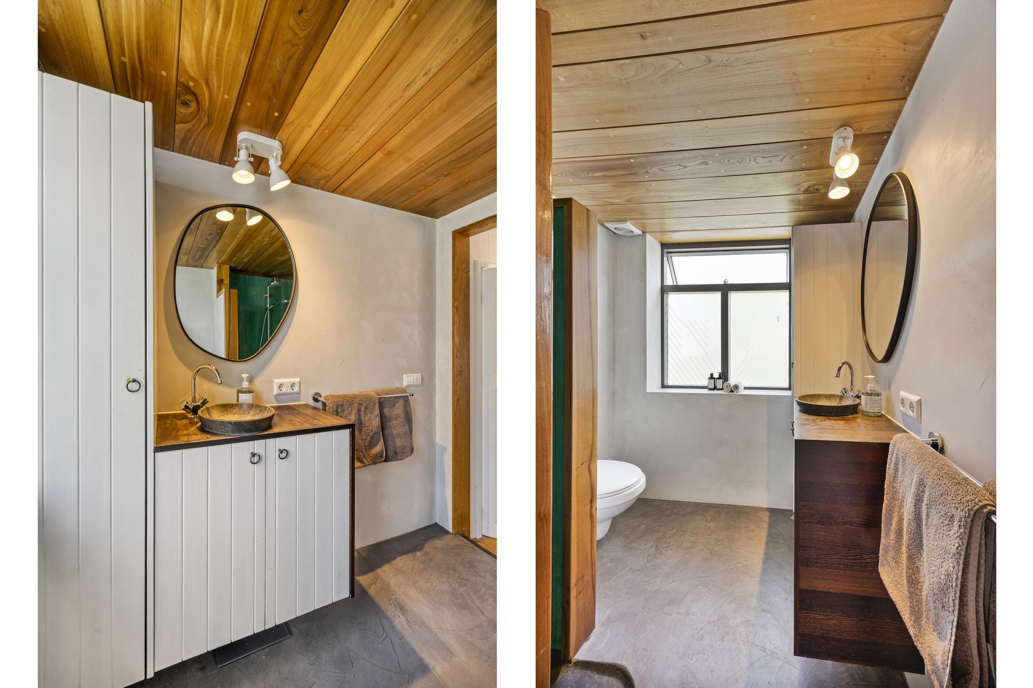 De badkamer heeft een heerlijke regendouche, een toilet en een wastafelmeubel met wasbak. De Scandinavische stijl van deze badkamer is een echte eye catcher! Op deze verdieping is tevens een vlizotrap aanwezig die toegang geeft tot de ruime bergzolder over de gehele lengte van het huis.