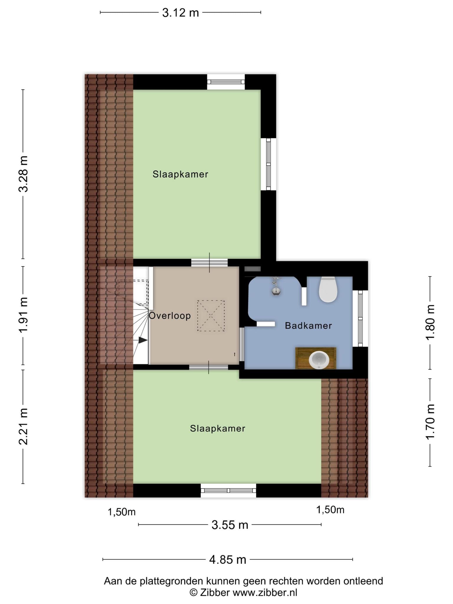 Via de paneeldeuren in de woonkamer loop je de trap op naar de bovenverdieping. Hier zijn 2 royale slaapkamers en een badkamer gesitueerd. Beide slaapkamers bieden ruimte voor een tweepersoonsbed, een kast en een bureau.