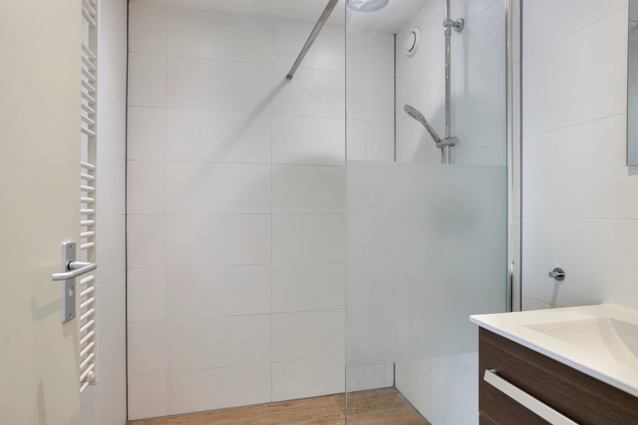 From the living room, you enter the hallway leading to the other rooms. Here you’ll find a separate toilet with a small sink and a spacious bathroom with double washbasin and bathtub/shower combination. The three bedrooms are divided over the front and rear sides of the apartment. One of the balconies can be accessed from both the living room and one of the bedrooms.