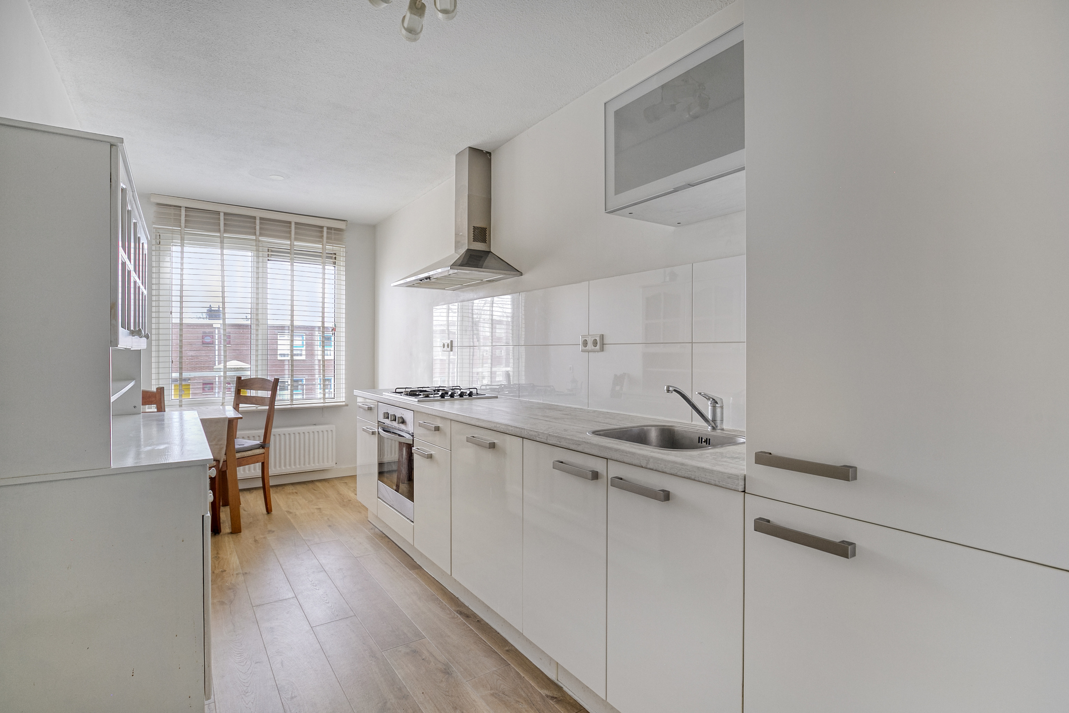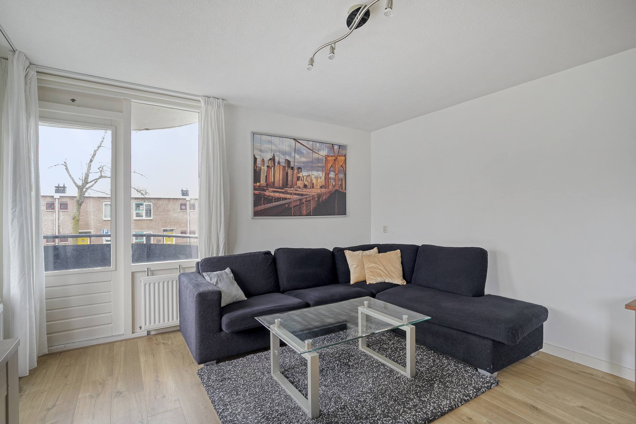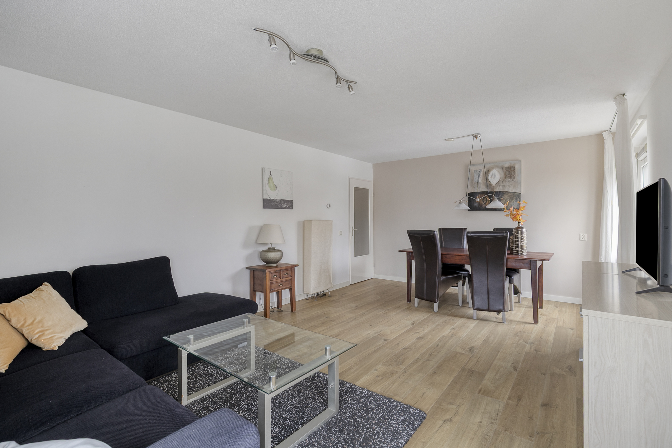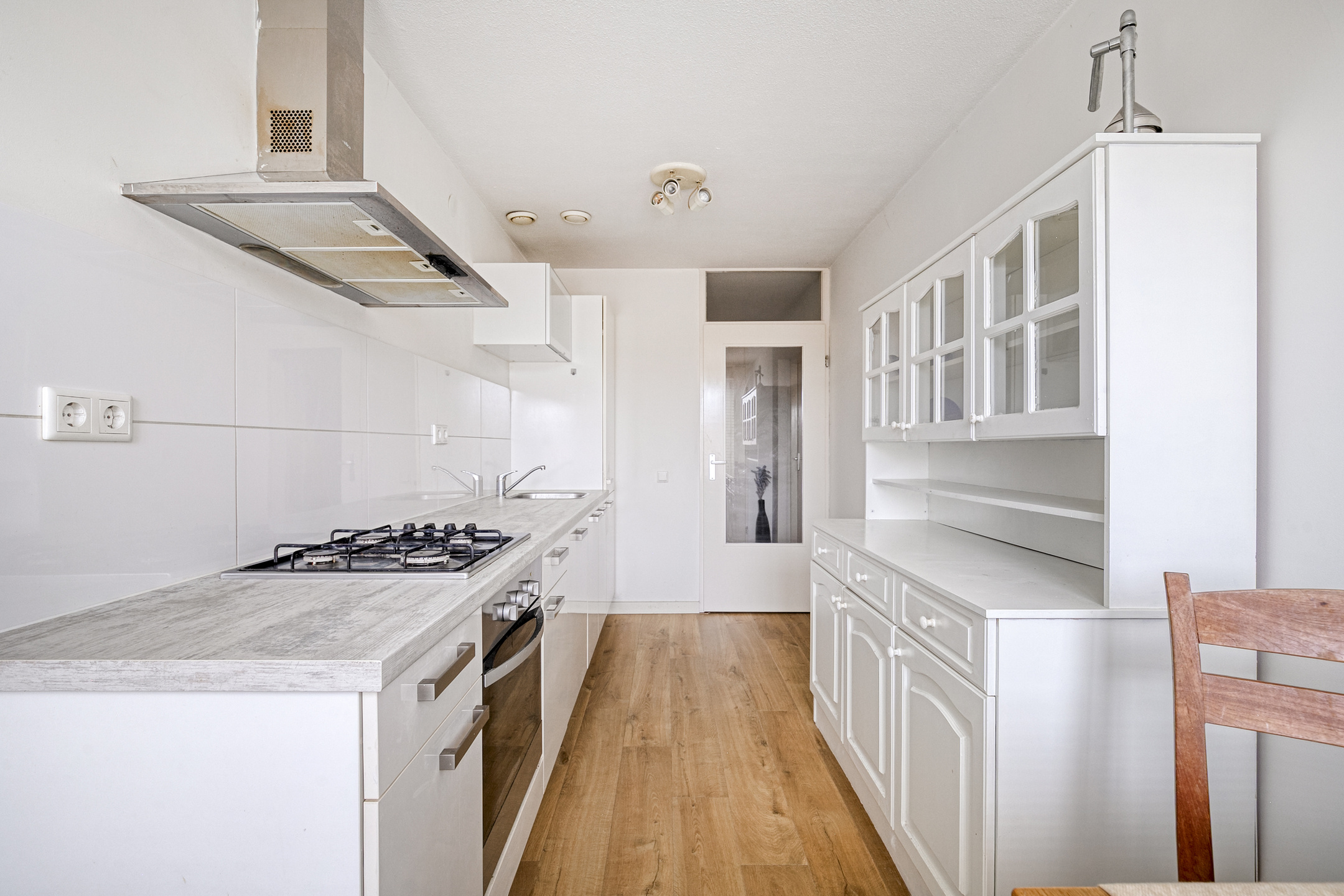 De eerste slaapkamer is netjes afgewerkt en ideaal als logeer- of werkkamer. De royale tweede slaapkamer is heerlijk licht en biedt ruimte voor een groot bed, werkplek of extra kastruimte. De keuken in rechte opstelling is praktisch ingedeeld en voorzien van alle benodigde apparatuur: vaatwasser, koel-vriescombinatie, 4-pits gasfornuis met oven en een afzuigkap. Dankzij de vele kast- en lade-oplossingen is er volop bergruimte. De woonkamer is gelegen op de zonnige hoek, met grote raampartijen die zorgen voor een overvloed aan natuurlijk daglicht. Hier creëer je met gemak een comfortabele zithoek én een ruime eettafel. Vanuit de woonkamer stap je direct het balkon op met vrij uitzicht over het groen — een ideale plek voor een borrel in de avondzon of een rustige ochtendkoffie.