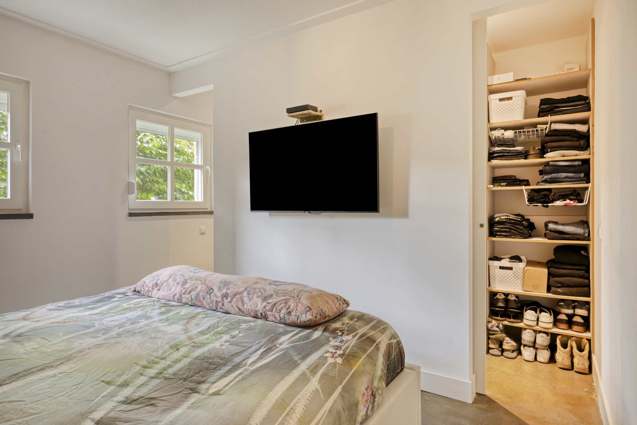 The garden is low-maintenance and private. The large veranda with glass panels is fully lockable, allowing you to enjoy an extra living space all year round while staying connected to the outdoors. At the back of the garden, you’ll find a handy storage shed. The rear facade’s wooden shingle cladding not only adds character but also provides extra insulation.