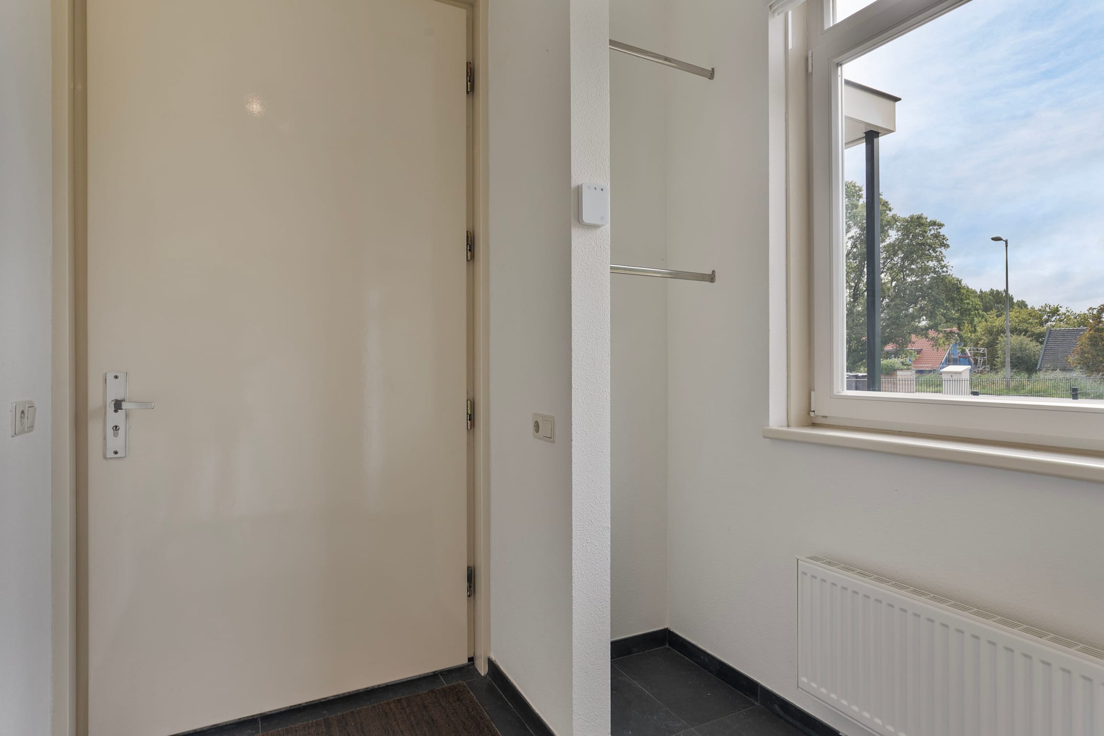 praktisch ingericht en biedt plaats voor onder meer een kapstok en opbergmeubel. Vanaf hier