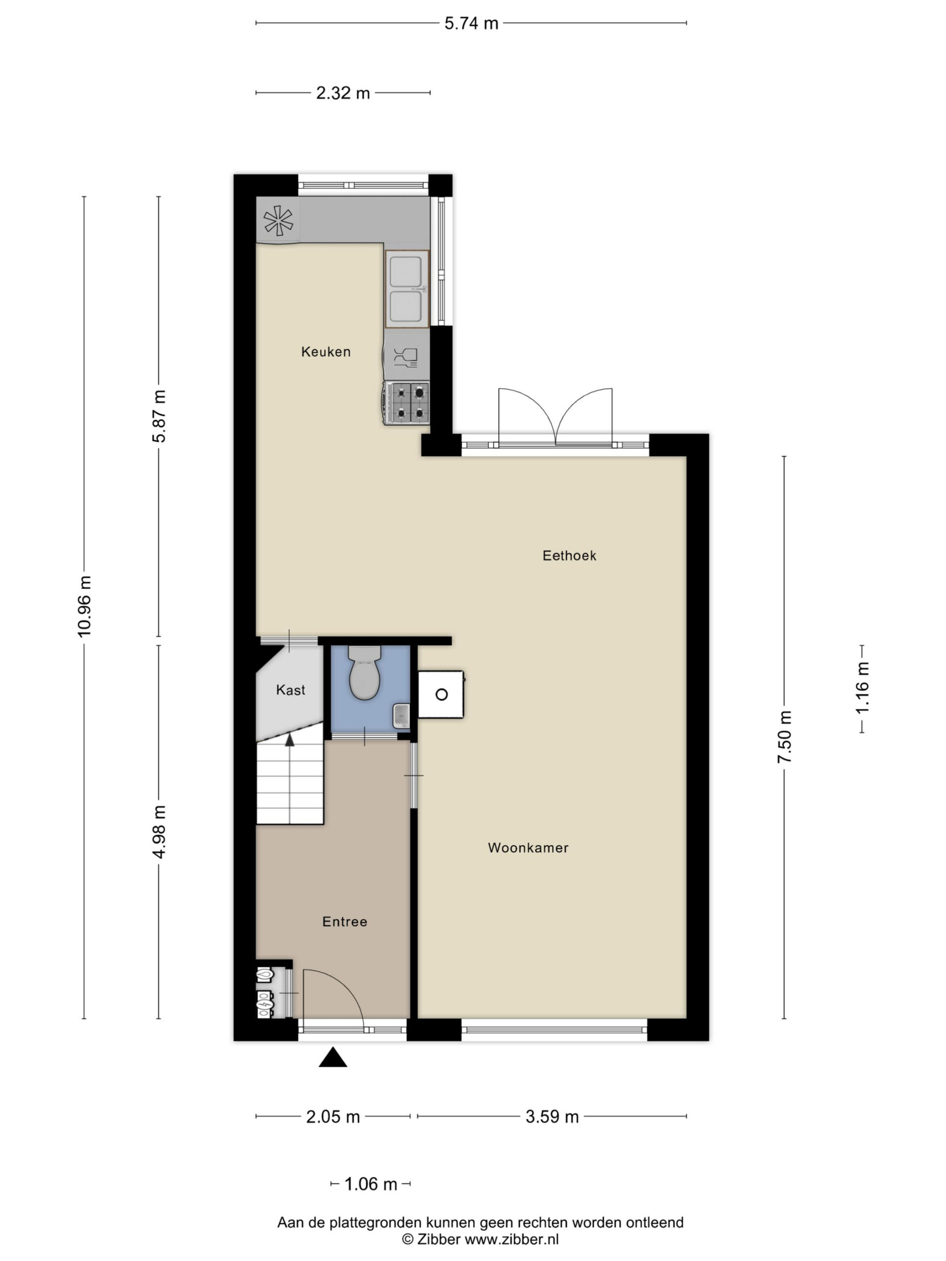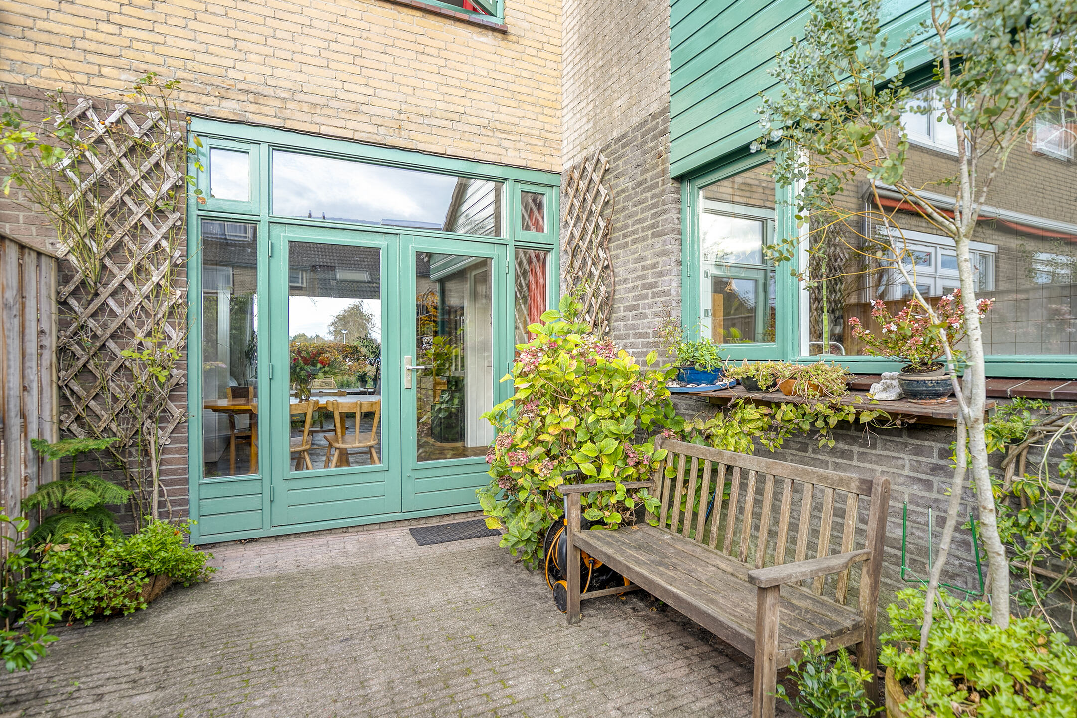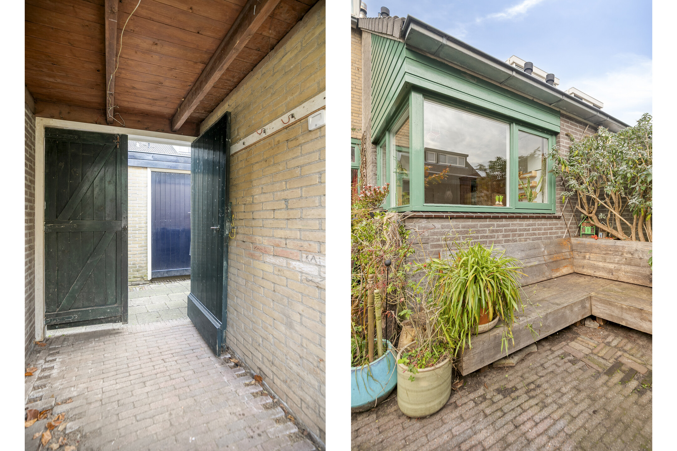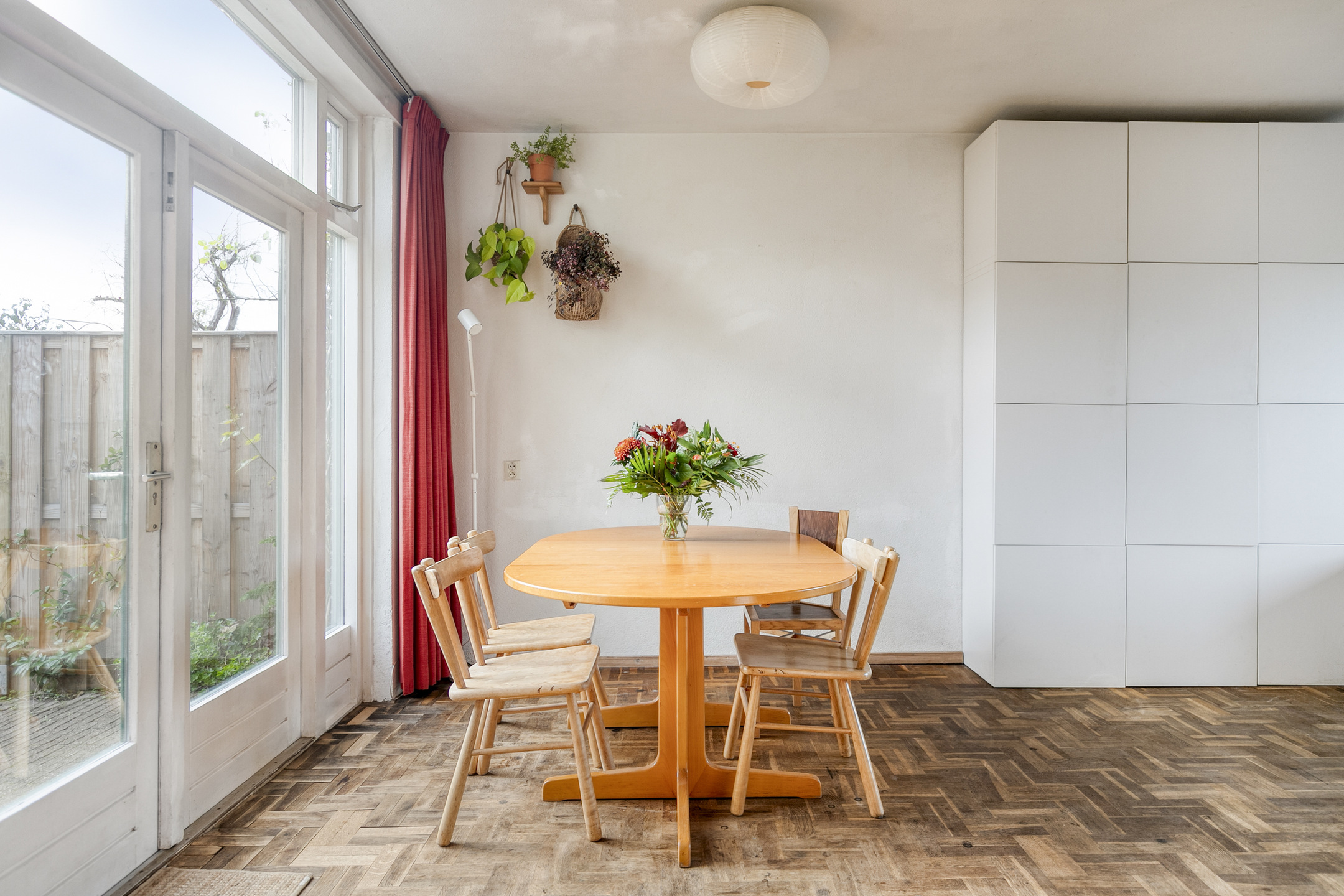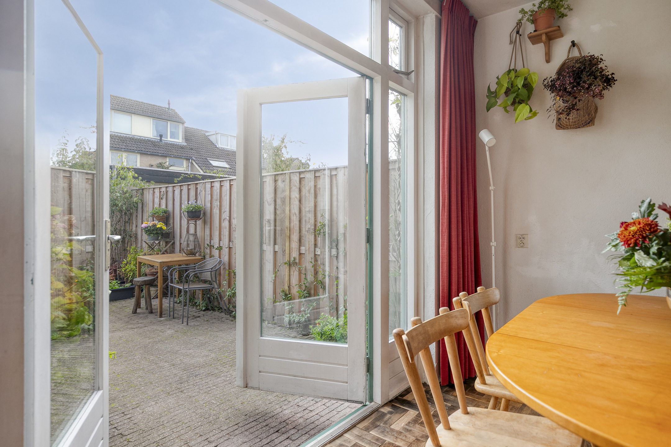 Via dubbele openslaande deuren stap je de zonnige achtertuin in. De keuken, gesitueerd in de aanbouw, kan desgewenst geheel naar eigen stijl worden gemoderniseerd. De ramen aan beide zijden maken de ruimte licht en bieden uitzicht op de tuin.