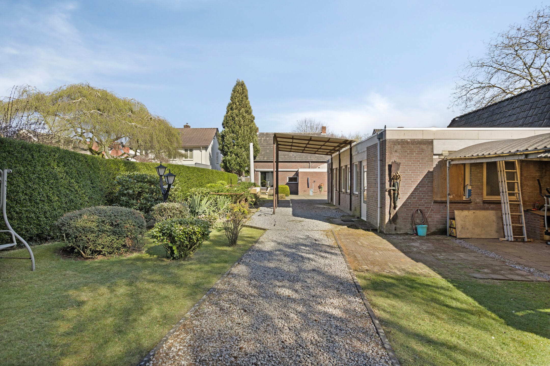 De lange oprit biedt ruimte voor het parkeren van meerdere auto’s, een aanhanger of camper. Voor mensen met groene vingers, dierenliefhebbers of hobbyisten is dit de perfecte plek. Ook aan kinderen is gedacht: met volop speelruimte en beschutting kunnen zij hier veilig buiten spelen.