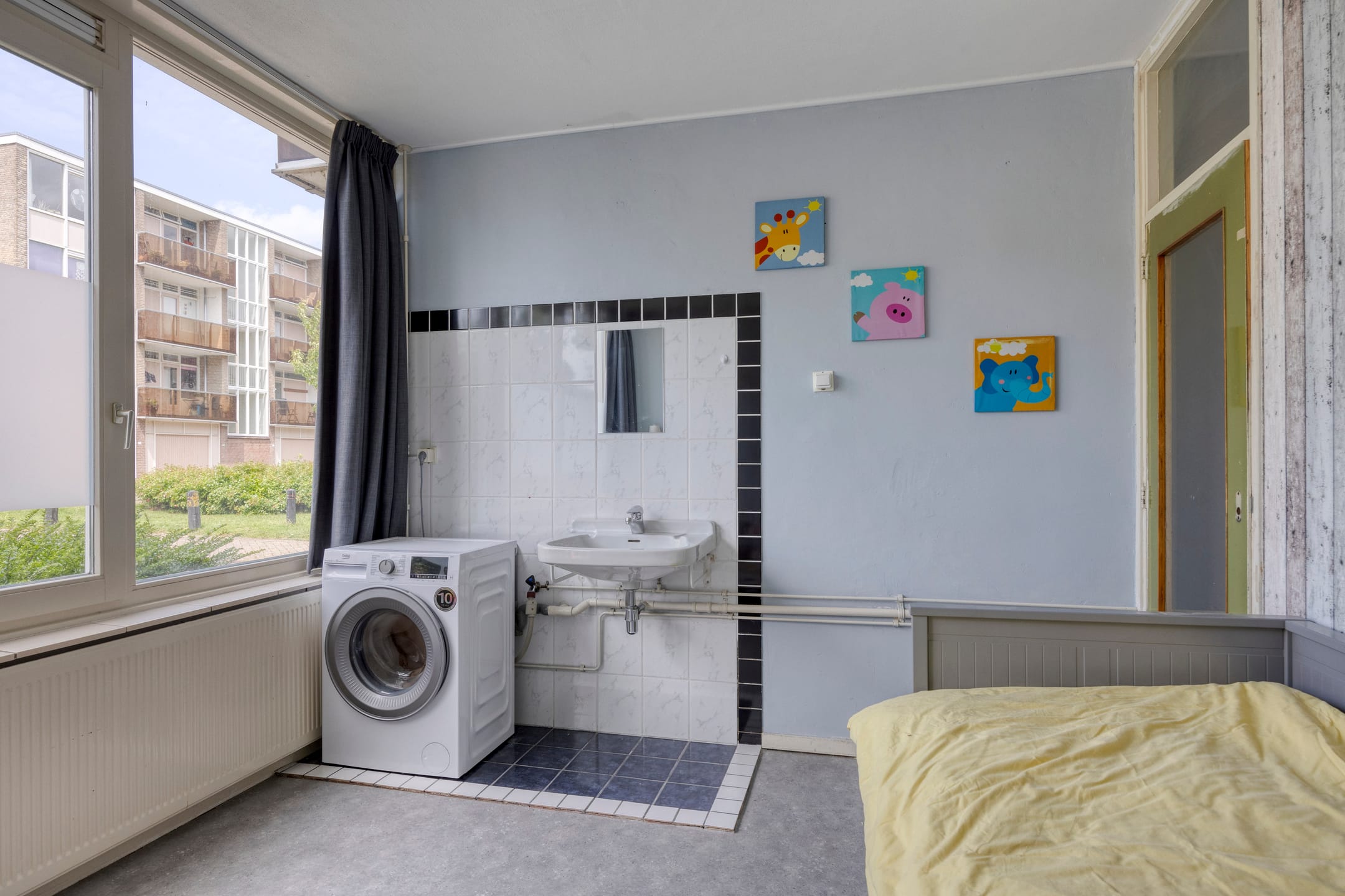 De keuken is bereikbaar via de moderne glazen schuifdeur. In de recent geplaatste keuken is voorzien van moderne apparatuur, met een mooie bijpassende vloertegel. Het tweede balkon bevindt zich direct achter de keuken en biedt uitzicht op de recent verbouwde wijk. Via de keuken bereik je de badkamer, die is voorzien van een ligbad, witte tegels tot aan het plafond en een apart toilet. Ook bij de toegang tot de woonkamer is een moderne schuifdeur terug te zien.