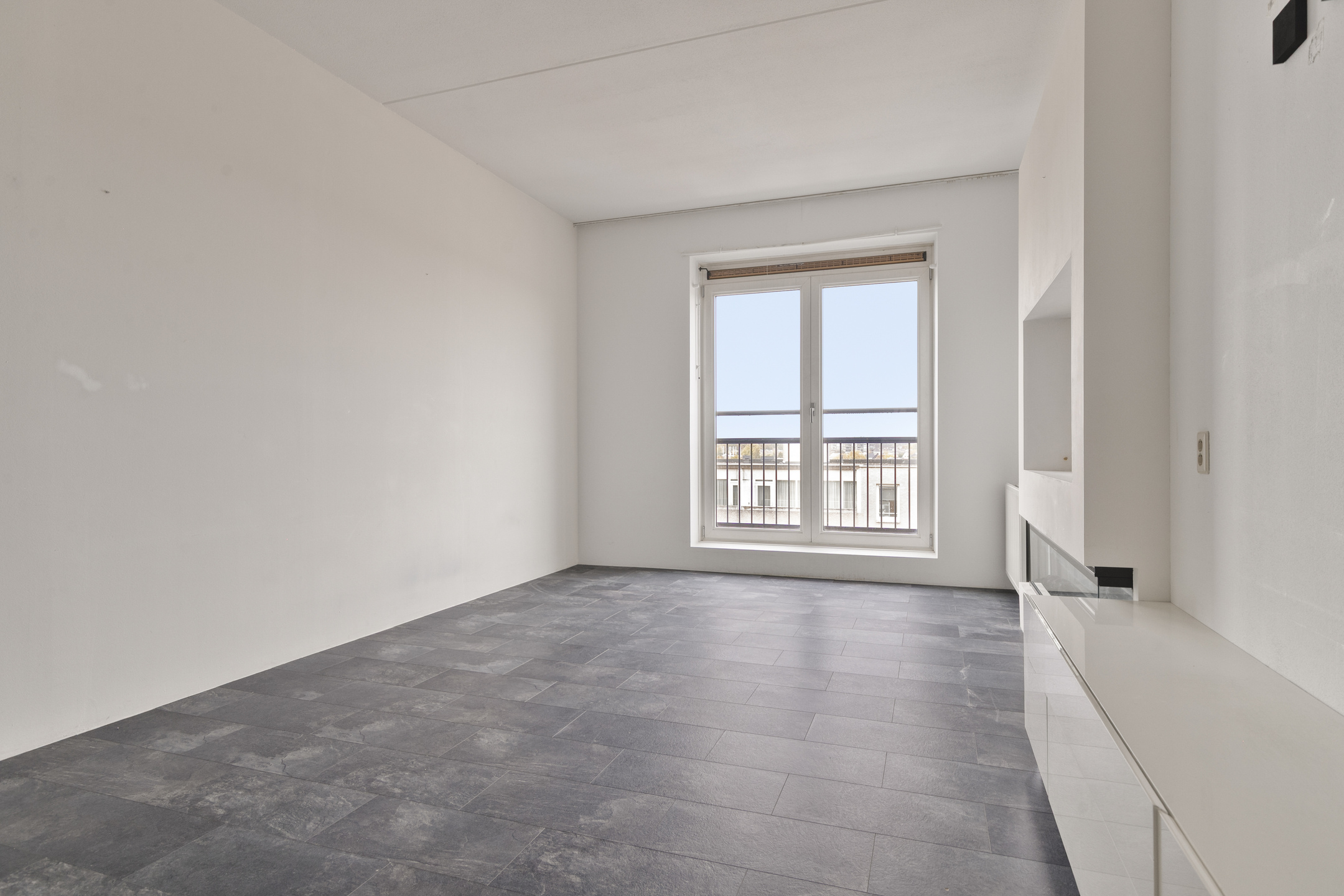 This well-maintained apartment with high ceilings offers everything you are looking for in a comfortable home. With a bright living room with French balcony, an open kitchen, a spacious bedroom with French balcony, this apartment is ready to move in. The house is neatly finished and has a smart layout that makes optimal use of the space. Here you live comfortably and centrally; a place where you will immediately feel at home. Upon arrival, you enter the communal entrance of the building, where the mailboxes and intercoms are also located. You reach the apartment via the stairs or elevator and enter a spacious hall, which gives you access to all rooms. This bright and inviting hallway forms the first impression of the home, and immediately provides a warm welcome. This spacious living room, the focal point of the home, radiates light and space thanks to the large windows that let in plenty of natural daylight.