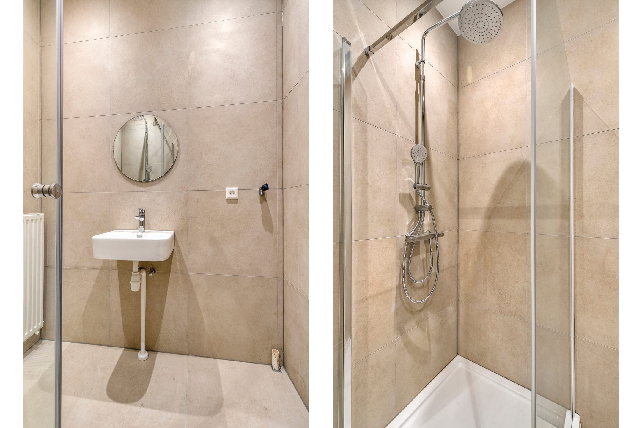 De ruime en goed onderhouden slaapkamer biedt een rustige plek om te ontspannen. Dankzij de royale afmetingen is er genoeg ruimte voor een comfortabel bed, een bureau of een extra opbergmeubel. De grote raampartijen zorgen voor een prettige hoeveelheid natuurlijk licht, wat bijdraagt aan de rustgevende sfeer in deze kamer. De woning beschikt over een in 2025 vernieuwde nette en volledig betegelde badkamer. Hier vindt u een ruime douche en wastafel en de witgoedaansluiting. De tevens vernieuwde wc in 2025 bevindt zich in een separate ruimte voor extra gemak en privacy.