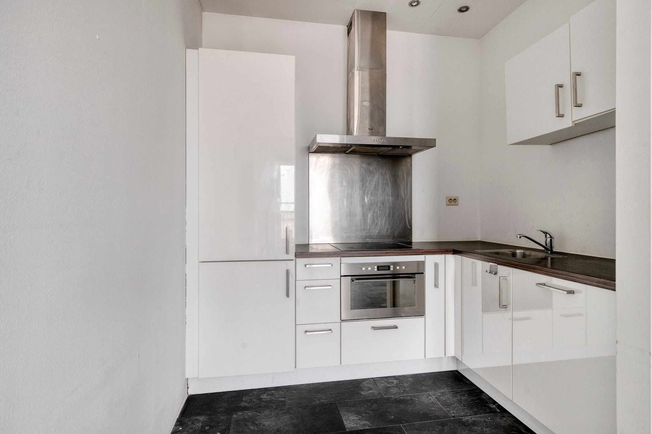 This well-maintained apartment with high ceilings offers everything you are looking for in a comfortable home. With a bright living room with French balcony, an open kitchen, a spacious bedroom with French balcony, this apartment is ready to move in. The house is neatly finished and has a smart layout that makes optimal use of the space. Here you live comfortably and centrally; a place where you will immediately feel at home. Upon arrival, you enter the communal entrance of the building, where the mailboxes and intercoms are also located. You reach the apartment via the stairs or elevator and enter a spacious hall, which gives you access to all rooms. This bright and inviting hallway forms the first impression of the home, and immediately provides a warm welcome. This spacious living room, the focal point of the home, radiates light and space thanks to the large windows that let in plenty of natural daylight.