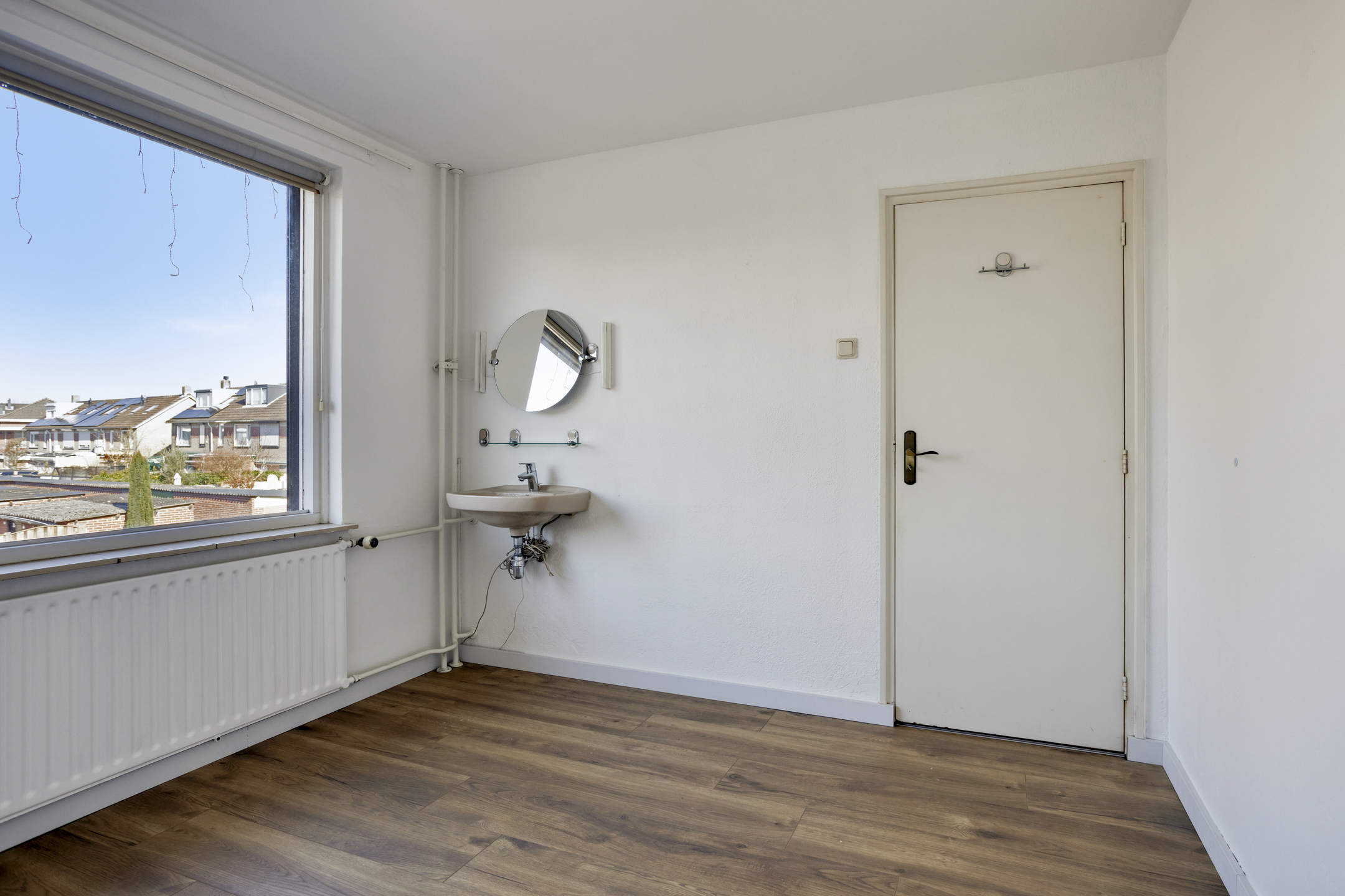 Op de eerste verdieping bevinden zich drie volwaardige slaapkamers van goed formaat met strak gestuukte wanden, ideaal als slaap- werk- of hobbykamer. De master bedroom is uitgerust met eigen wastafel en spiegel.
