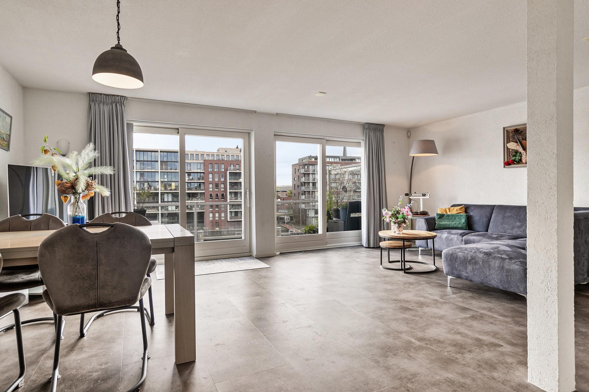 Bij binnenkomst leidt een ruime hal naar alle vertrekken. De royale en lichte woonkamer met grote ramen rondom zorgt voor veel natuurlijk licht en biedt een fantastisch uitzicht over het water en de Zaanse sluizen. Vanuit de woonkamer heeft u toegang tot het grote, recent gerenoveerde balkon, uitgerust met onderhoudsarme materialen, waar u heerlijk kunt ontspannen en genieten van het uitzicht.