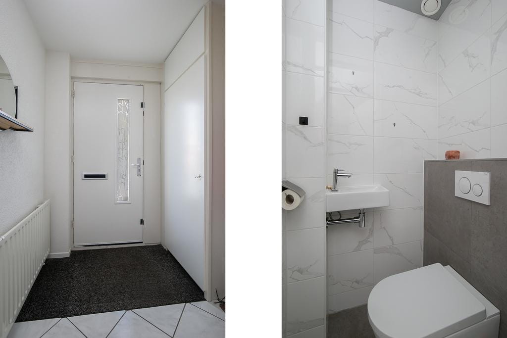 Bij binnenkomst van de woning de hal, meterkast en toilet welke is vernieuwd in 2022 en voorzien van een luxe witmarmeren tegellook. Aan de rechterkant van de hal is de toegangsdeur tot de woonkamer. Door het grote raam aan de voorzijde wordt de kamer voorzien van veel natuurlijk lichtinval en geeft uitzicht op het plantsoen. Door de totale lengte van 7 meter, heeft deze kamer ook de ruimte voor een royale eethoek. De open doorgang van de woonkamer naar de keuken geeft beide ruimten een ruime en toegankelijke ambiance. De vernieuwde moderne keuken (2017) met houtlook is voorzien van een marmer stenen werkblad aan beide zijden, koel-vriescombinatie, inductiekookplaat, afzuigkap en combimagnetron. De deur naar de achtertuin is aan de achterzijde van de keuken. Wat deze woning zo bijzonder maakt is dat de slaapkamer en badkamer ook op de begane grond zijn gelegen. Dit maakt het een buitengewone levensloopbestendige semibungalow. De slaapkamer is zeer groot van formaat (ruim 15 m2!) en biedt daardoor naast veel kastruimte ook voldoende plek voor een groot tweepersoonsbed. Deze moderne badkamer, is vernieuwd in 2022, is voorzien van een inloopdouche, een verwarmd handdoekenrek, aansluiting voor wasmachine/droger en eveneens de luxe witmarmeren tegellook.