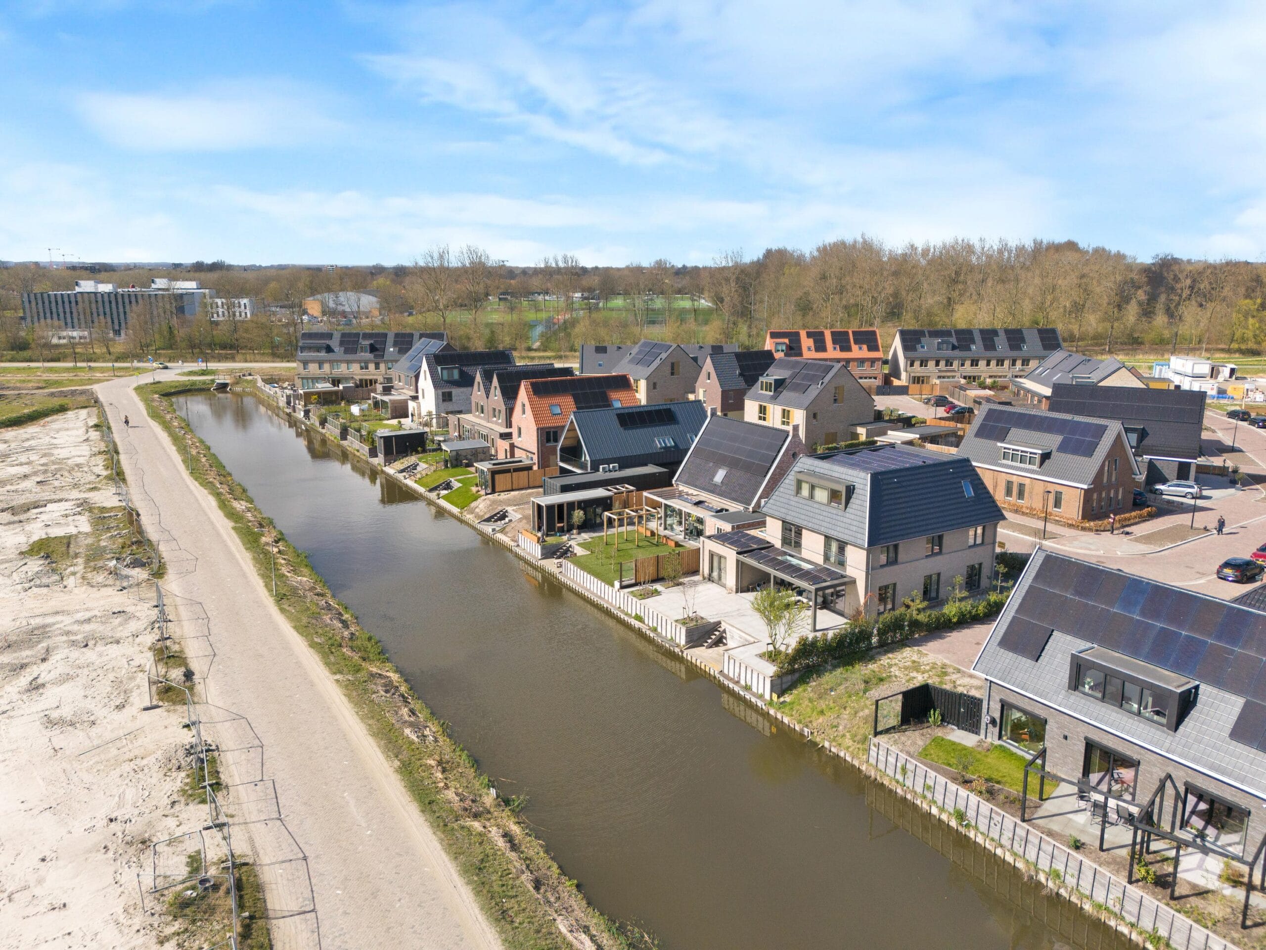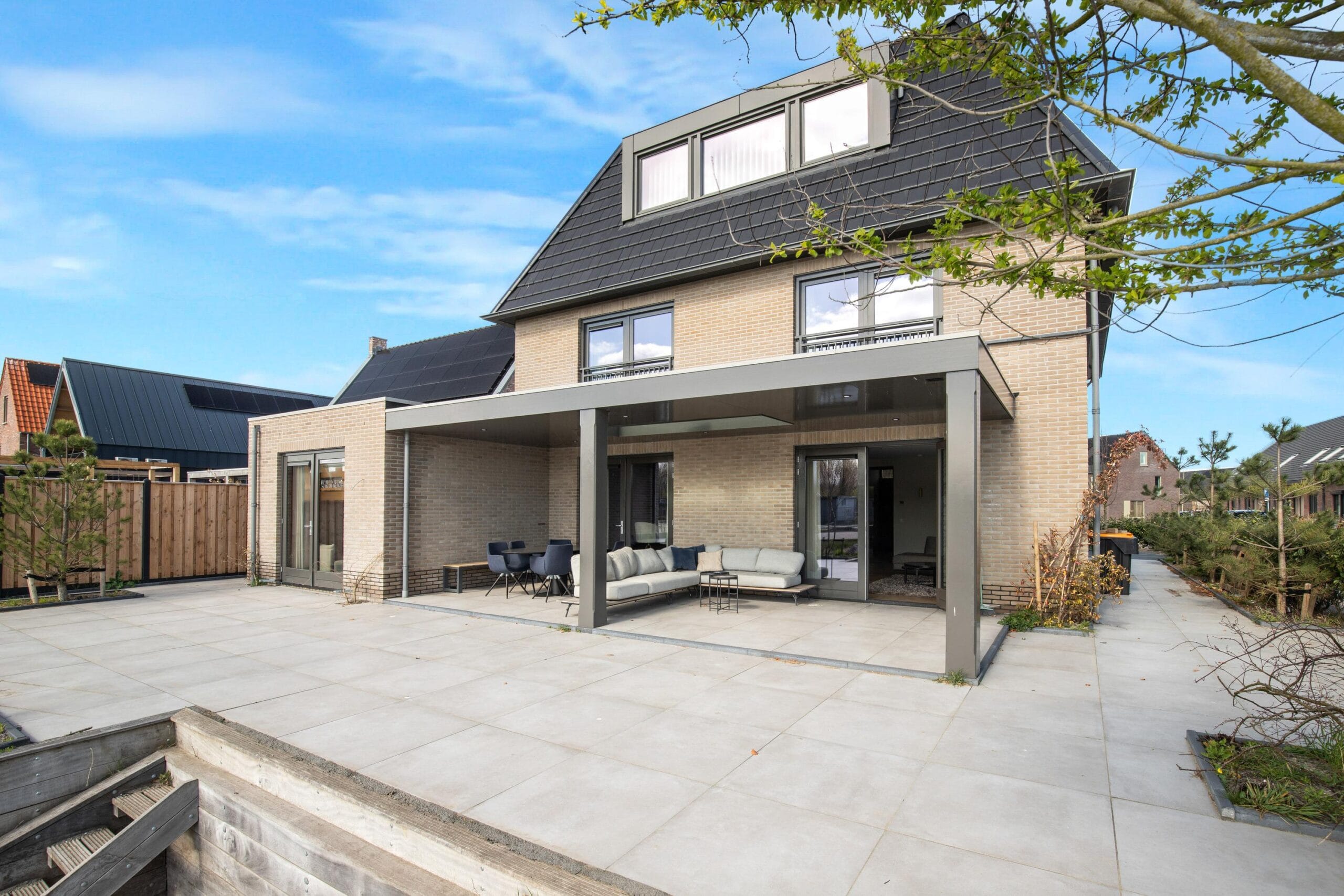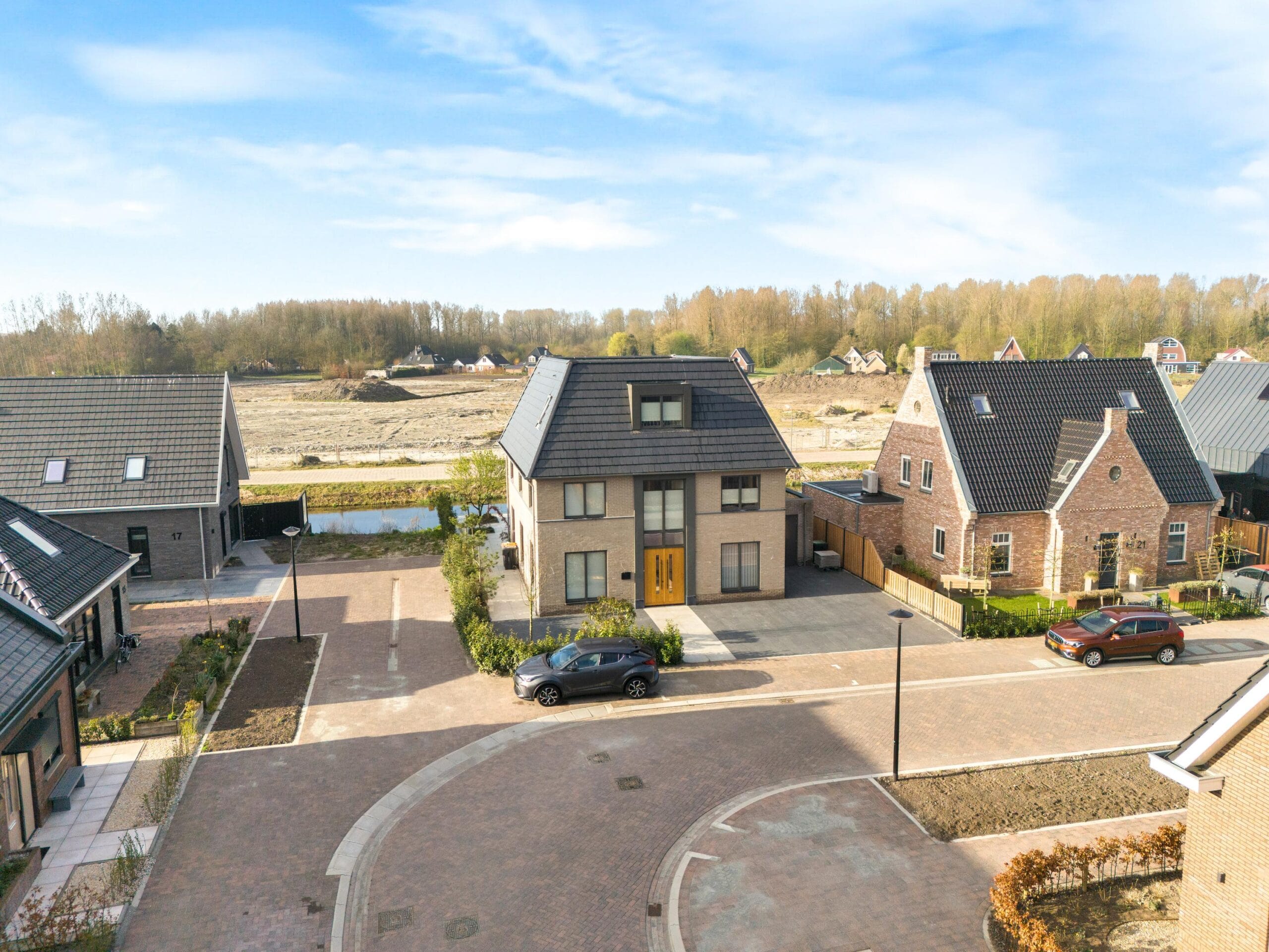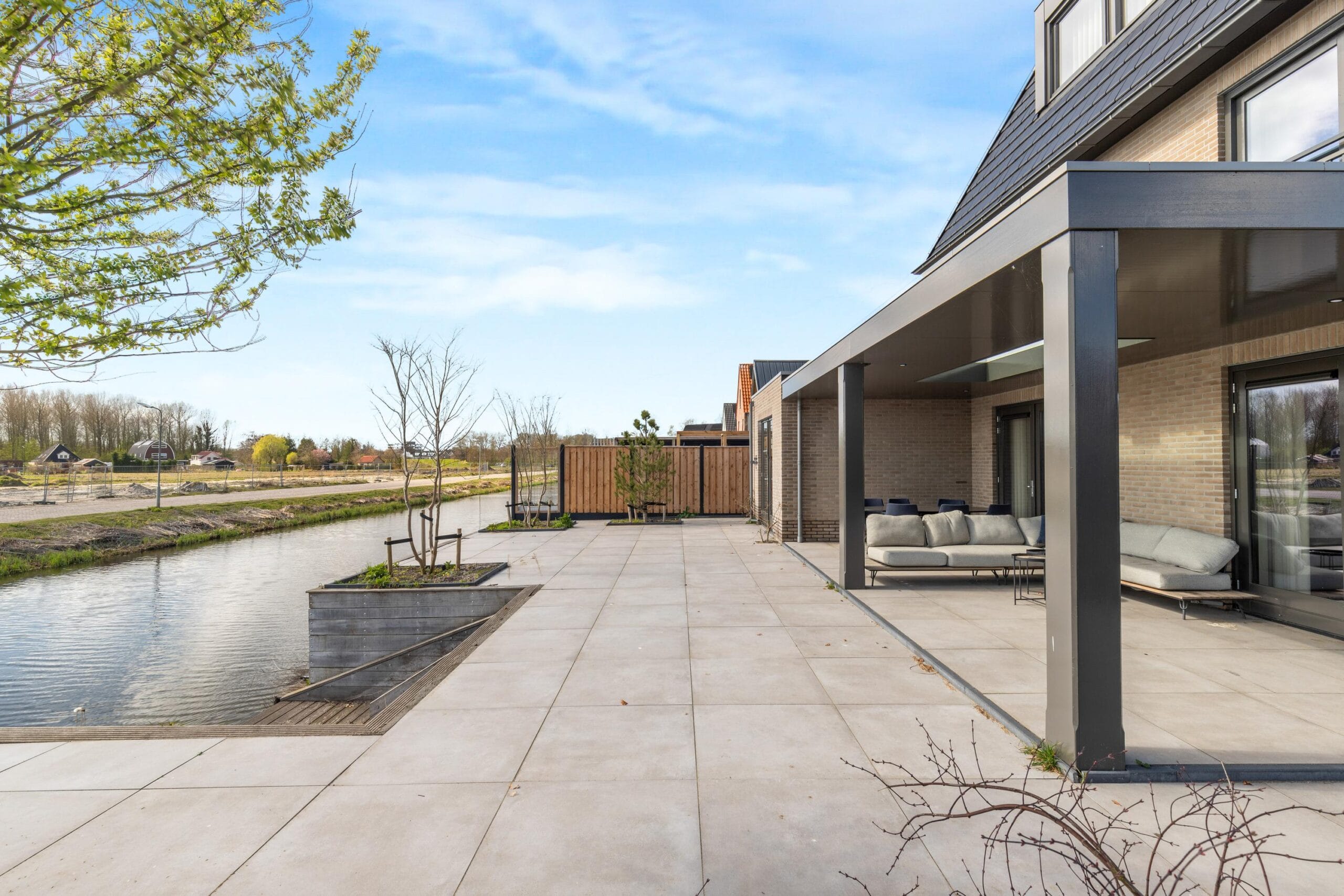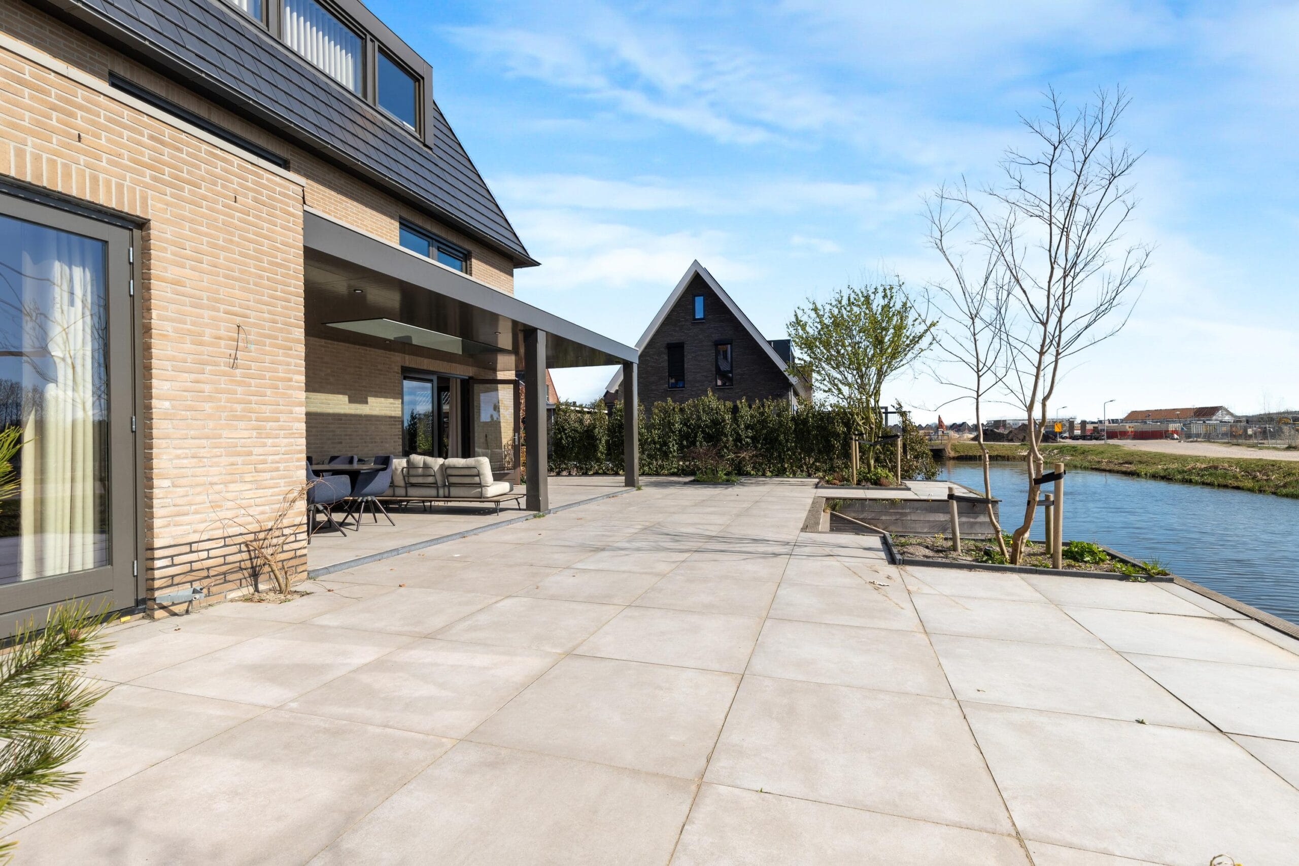 De woning heeft een heerlijke tuin rondom het huis. Zo heb je op elk moment van de dag een lekker zonnetje. Aan de achtergevel van de woning is een zeer ruime veranda gesitueerd waar je tot in de late uurtjes kunt genieten. Aan het water is een vlonder waar je heerlijk kunt ontspannen. Aan de voorkant van de woning kun je met gemak 3 auto’s parkeren op eigen terrein. Uiteraard is er een oplaadpunt aanwezig voor een elektrische auto. Met de 26 zonnepanelen is elektrisch rijden enorm aantrekkelijk! Aan de voorzijde is er ook toegang tot de aangrenzende garage die zich rechts van de woning bevind. Zowel links- als rechts kun je om de woning heen lopen.