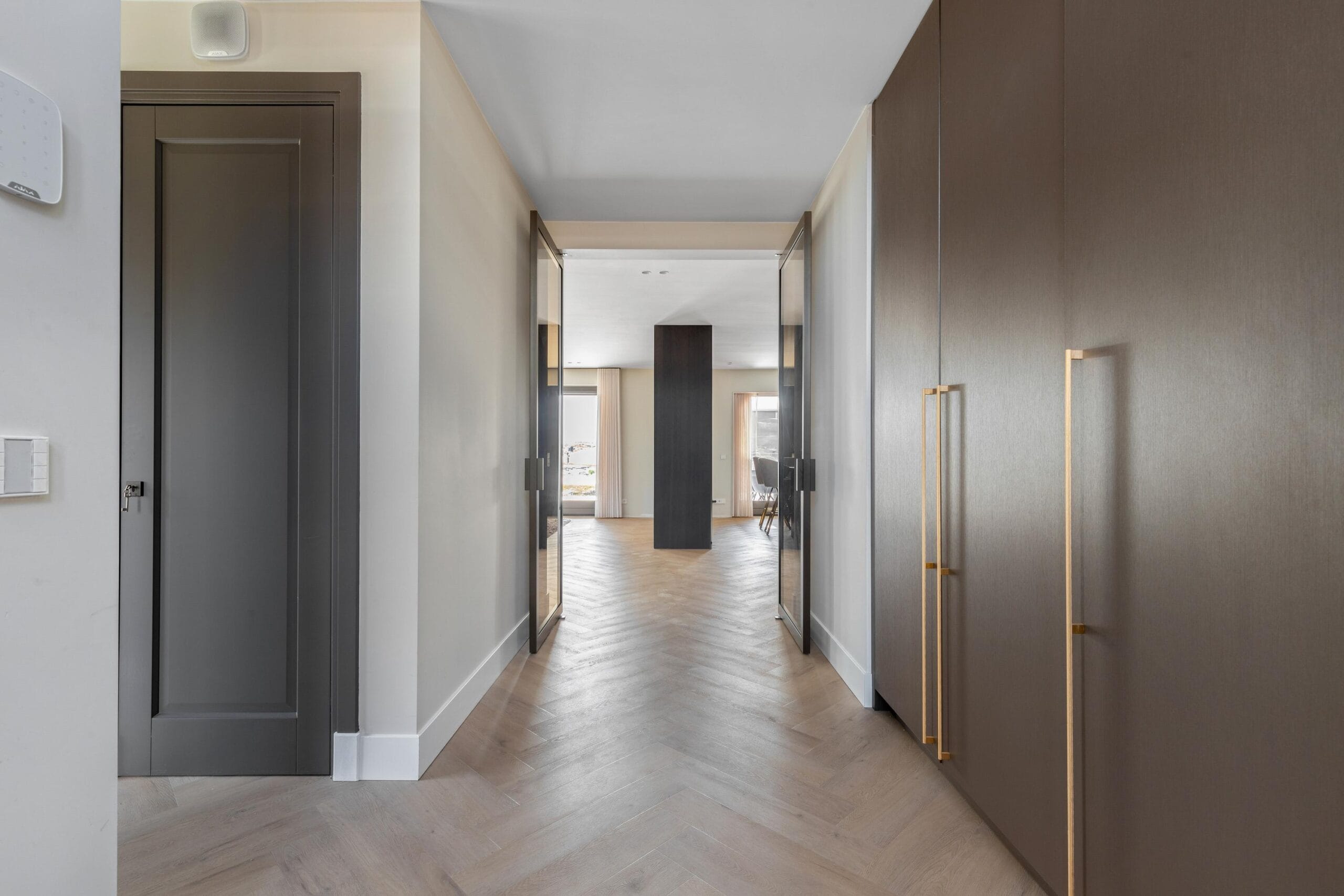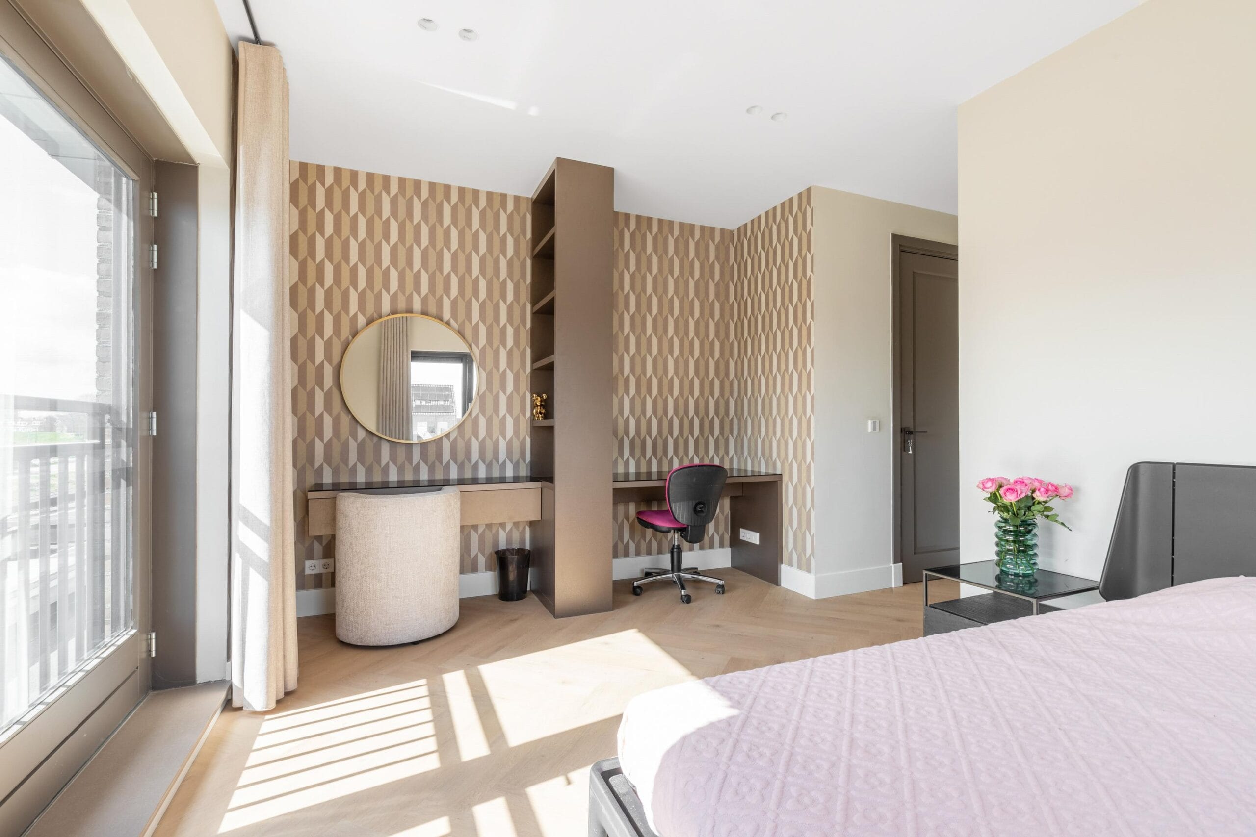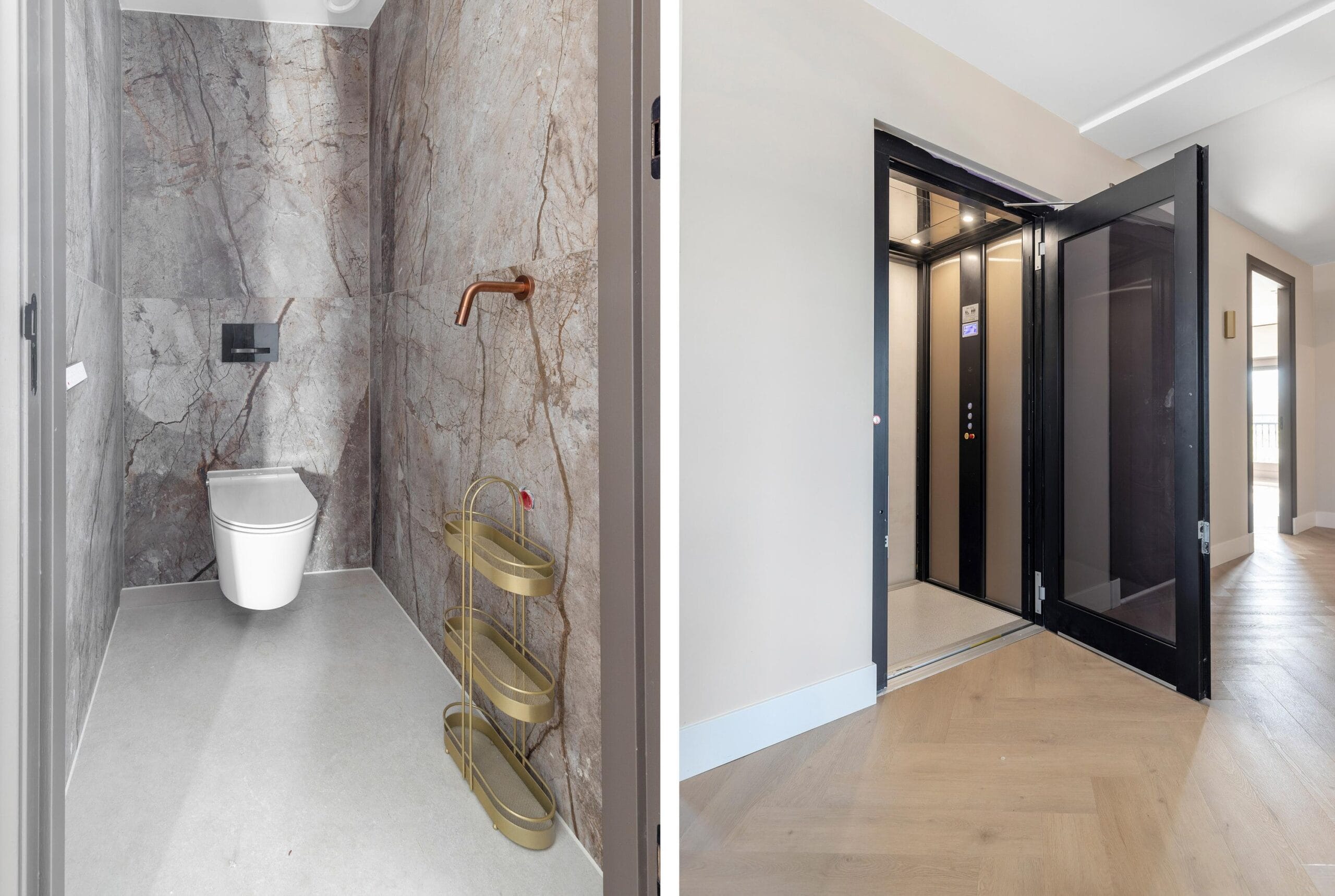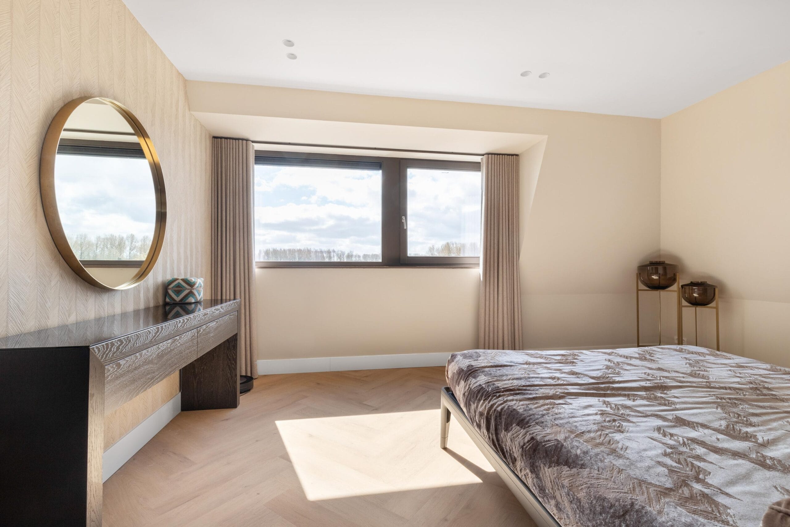 This floor can also be reached both by stairs and by elevator and can rightly be called an ‘owners floor’. On this floor there are 2 bedrooms, 1 of which functions as a laundry room. Furthermore, on this floor there is also a separate toilet and a spacious storage room. The Master bedroom is spectacularly large. This wonderfully light space has a spacious walk-in closet for him and for her. There is also a luxurious bathroom adjacent to this room with all facilities such as a large bath, rain shower and double sink.