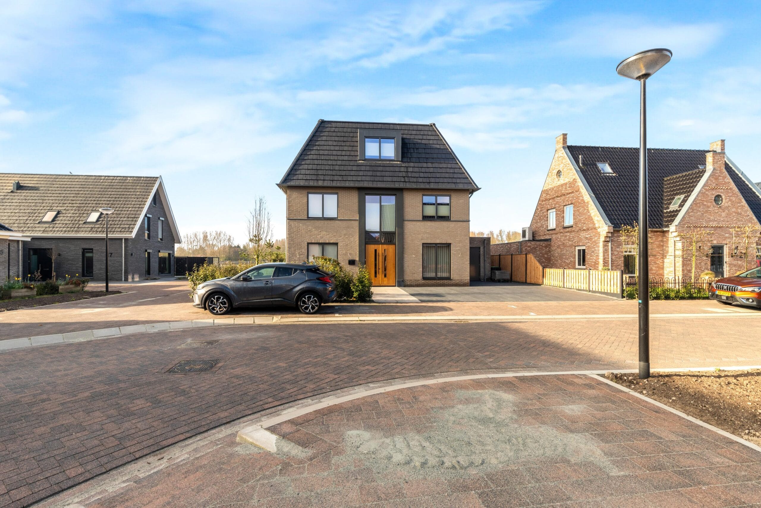Aan rustige weg, in woonwijk, vrij uitzicht