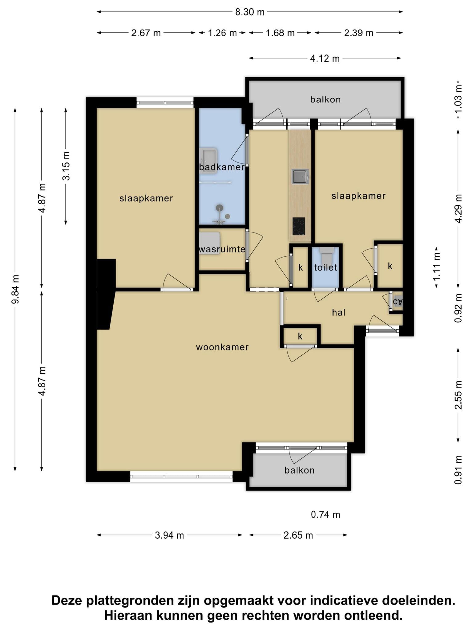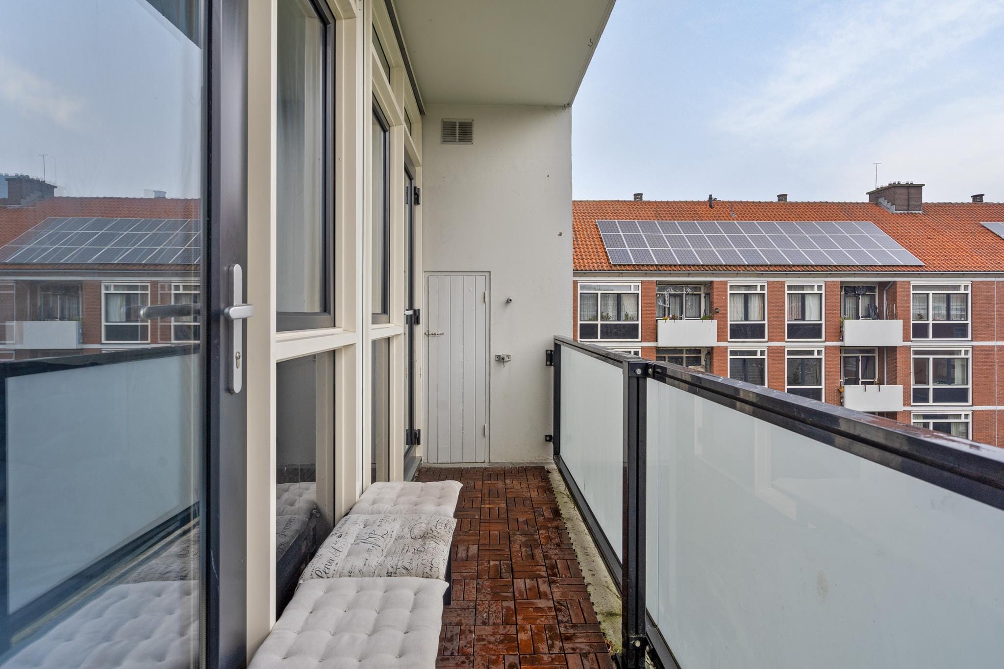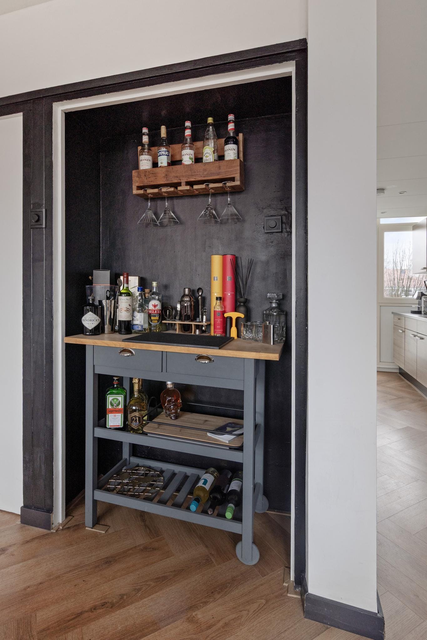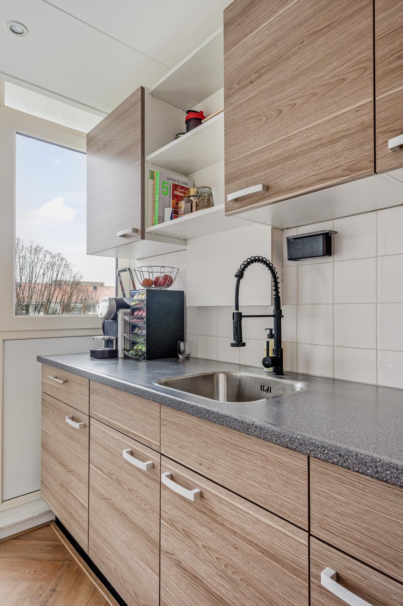 The central entrance with mailbox and intercom system provides access to the stairwell. This takes you to the apartment on the 3rd floor. Upon entering, the hall has a spacious appearance, due to the modern industrial sliding door that leads to the living room. Because the walls in the living room have been broken through, this room also has a spacious layout, and an open kitchen has been created. A tasteful herringbone floor with underfloor heating has been laid everywhere. A Cinewall including electric fireplace was installed in 2022. The perfect place to have drinks with friends and family at the end of the working week. On the other side of the room there is room for a large dining table where you can easily dine with six to eight people. Next to the dining table you will find the outside door to the first balcony. This is located on the east, so this is where you can start your summer day with a delicious cup of coffee! At the rear of the living room is the largest bedroom. Thanks to the surface area of 13 m2, a king-size bed, wardrobe, desk and the like can easily fit here.