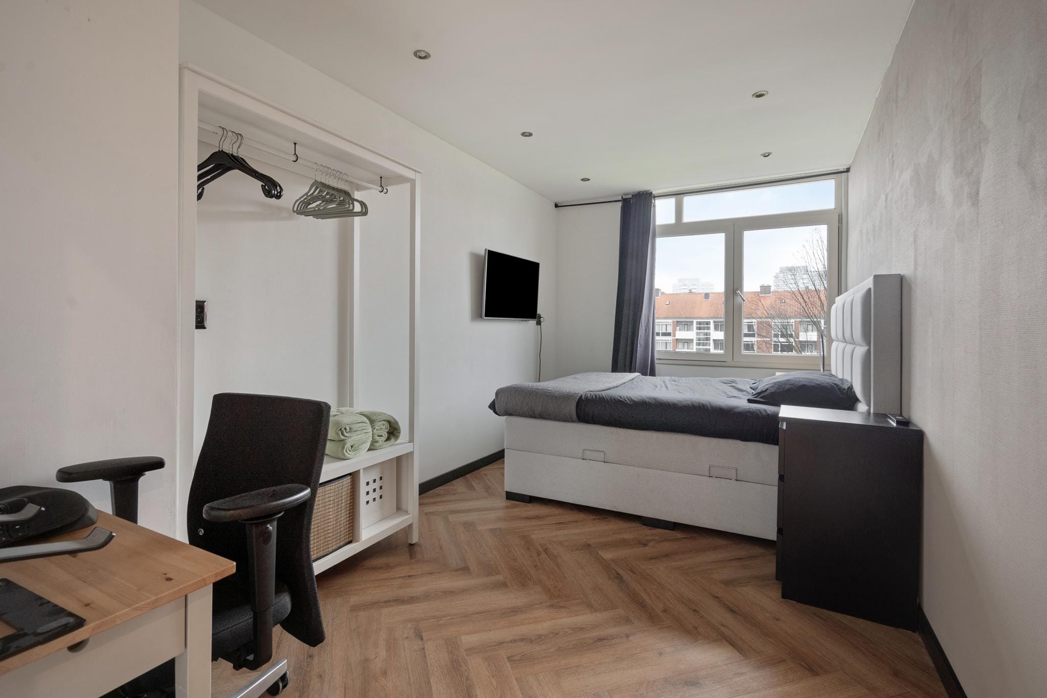 De centrale entree met brievenbus en intercom-installatie biedt toegang tot het trappenhuis. Deze brengt je naar het appartement op de 3de etage. Bij binnenkomst heeft de hal een ruime uitstraling, door de moderne industriële schuifdeur die naar de woonkamer leidt. Doordat de muren in de woonkamer zijn doorbroken, heeft ook deze ruimte een riante opstelling en is er een open keuken gecreëerd. Hier is overal een smaakvolle visgraatvloer met vloerverwarming gelegd. In 2022 is er een Cinewall inclusief elektrische openhaard geplaatst. De perfecte plek om eind van de werkweek te borrelen met vrienden en familie. Aan de andere zijde van de ruimte is plek voor een grote eettafel waar je met gemak met zes tot acht man aan kunt dineren. Naast de eettafel vind je de buitendeur naar het eerste balkon. Deze is gelegen op het oosten, dus hier start jij jouw zomerse dag met een heerlijke kop koffie! Aan de achterzijde van de woonkamer is de grootste slaapkamer. Door het oppervlak van 13 m2 past hier met gemak een kingsize bed, een kledingkast, bureau en dergelijke.