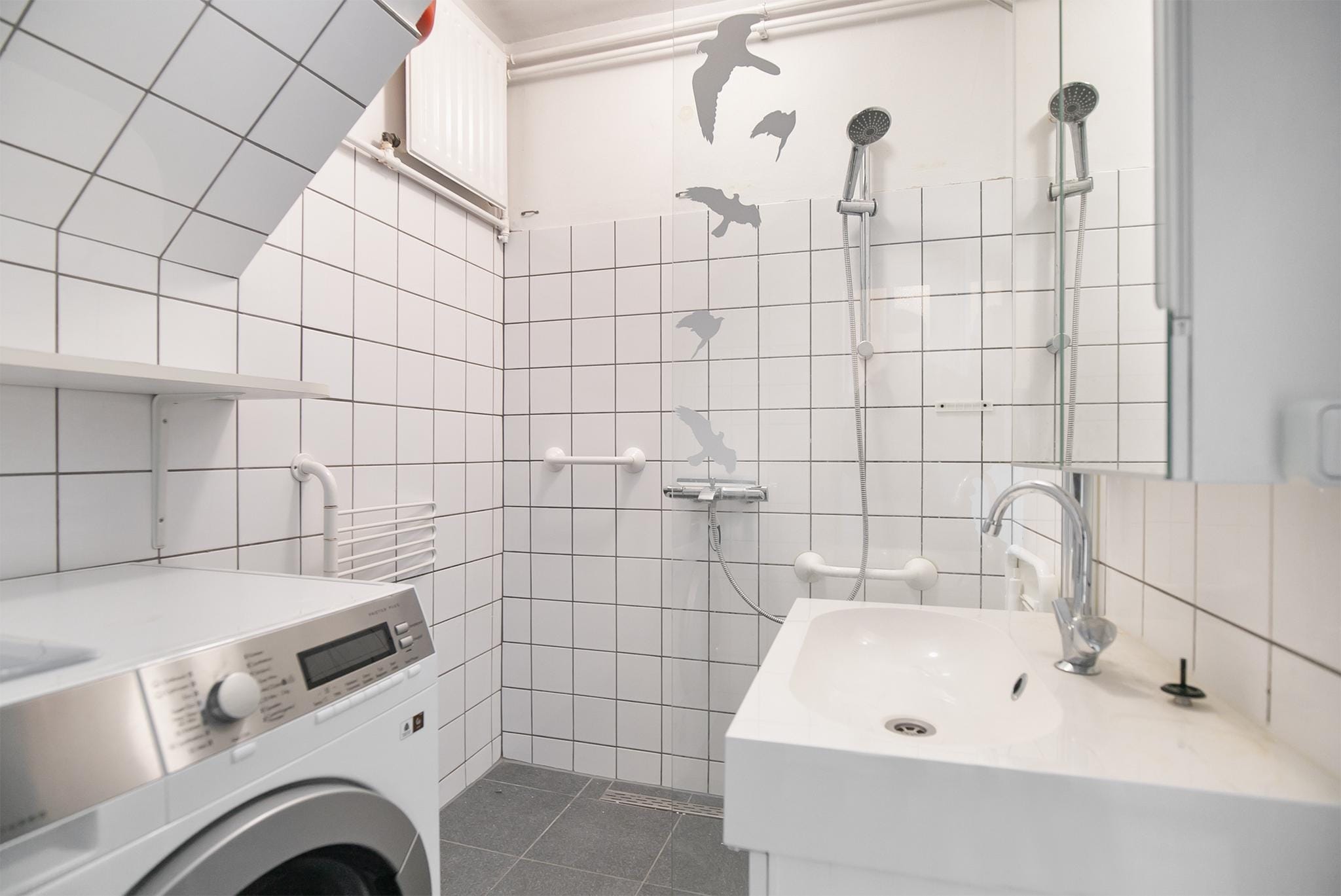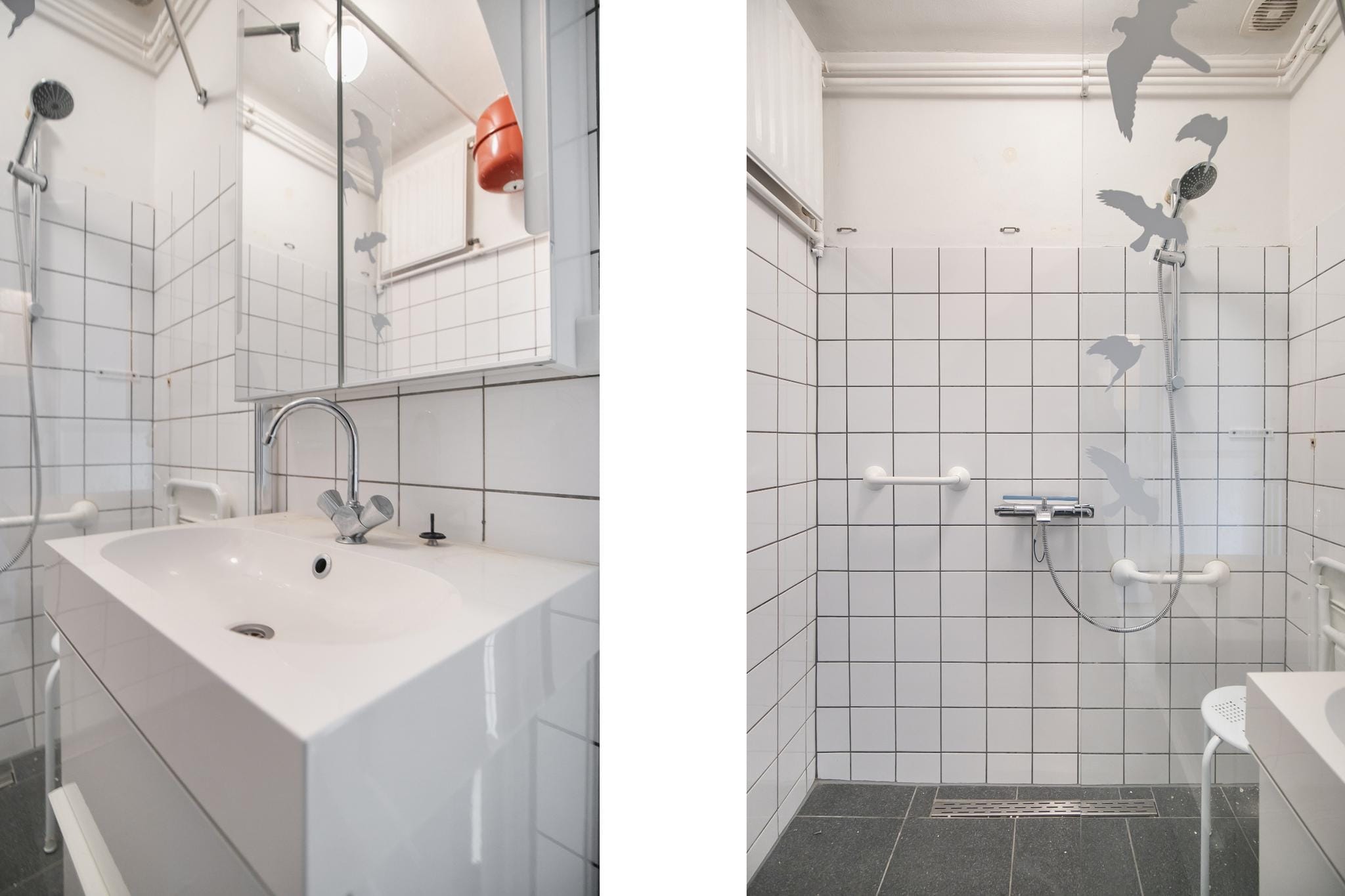 Dit appartement heeft een nette afwerking en heeft, net als de stad, karakteristieke details. Via het open portiek kom je uit bij de entree van het appartement op de 1e etage. De hal geeft de toegang tot de verschillende vertrekken van het appartement. Aan de linkerzijde is de badkamer te vinden. Deze beschikt over een douche, badkamermeubel met mengkraan, spiegel en de aansluiting voor de wasmachine. Het vrijstaande toilet is aan de overzijde van de hal te vinden. Hierdoor is uw badkamer een privéruimte, waar gasten geen gebruik van hoeven te maken. Links van de badkamer bevindt zich de keuken.