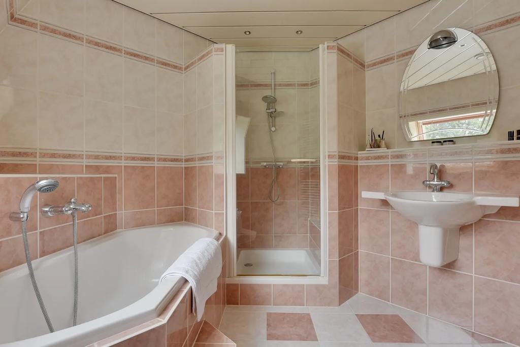 4e Verdieping: Overloop, inloopkast, ruime twee slaapkamers, badkamer 1 v.v. ligbad, douchecabine, wastafel en designradiator, bergkast met aansluitingen, slaapkamer 2 met badkamer v.v. douchehoek, 2e toilet, wastafel.