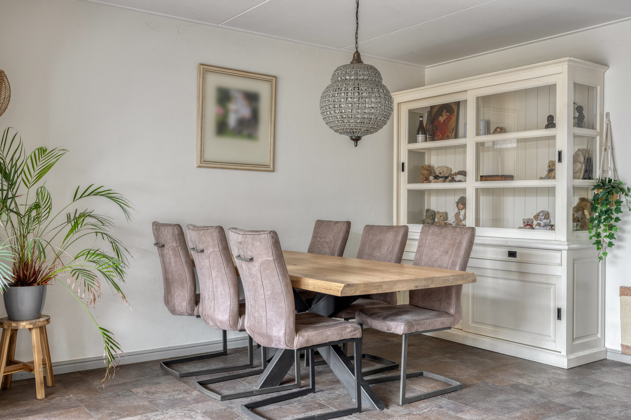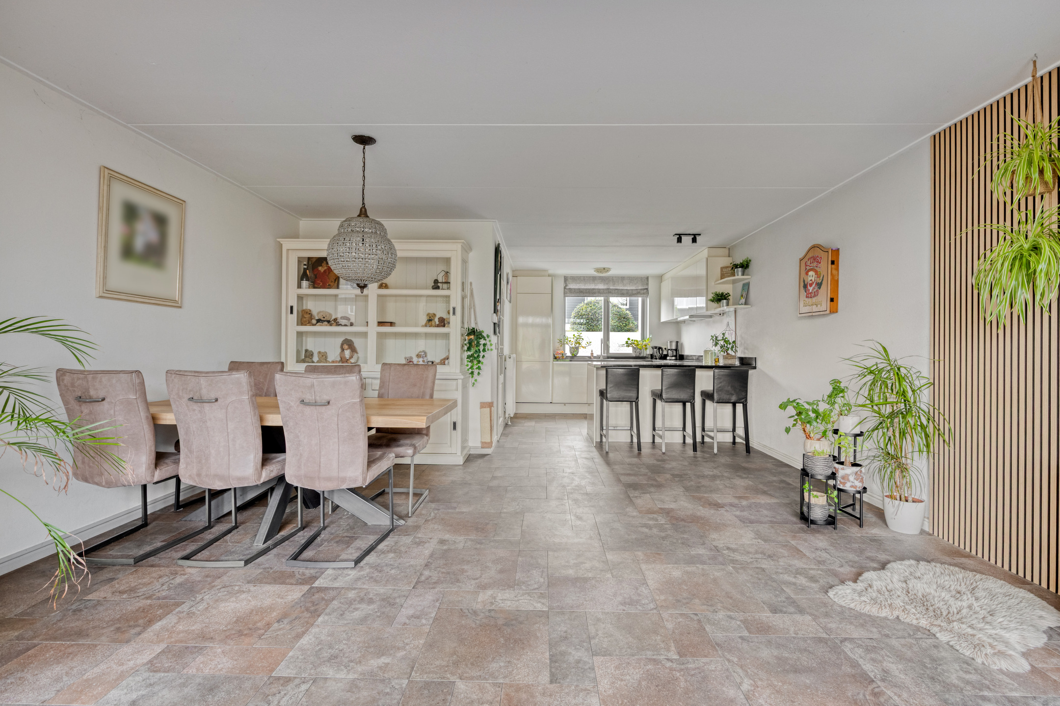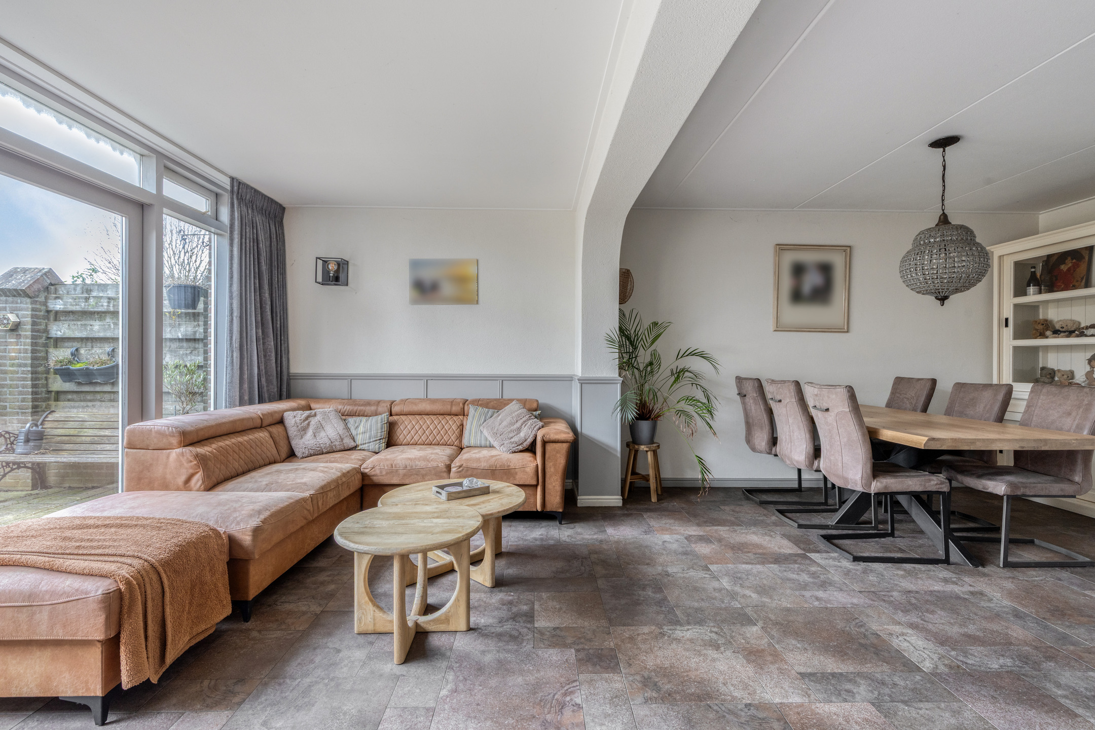 And we haven’t even mentioned the fantastic living room yet. It features large sliding doors that provide direct access to the sunny garden. There is also plenty of space for both a dining and sitting area. The utility room offers ample storage space, ideal for a large family. From the utility room, you have access to the large garage of over 25 m², perfect for parking a car and/or other uses.