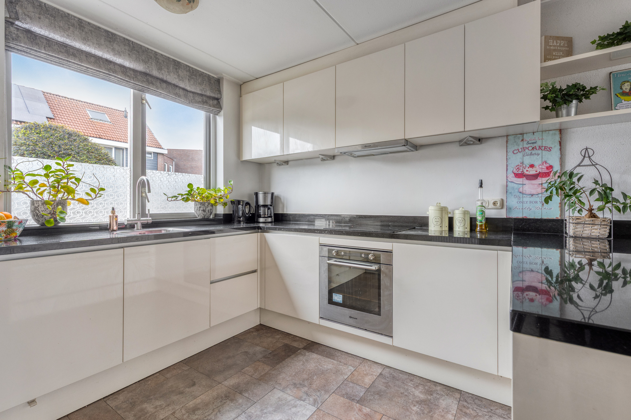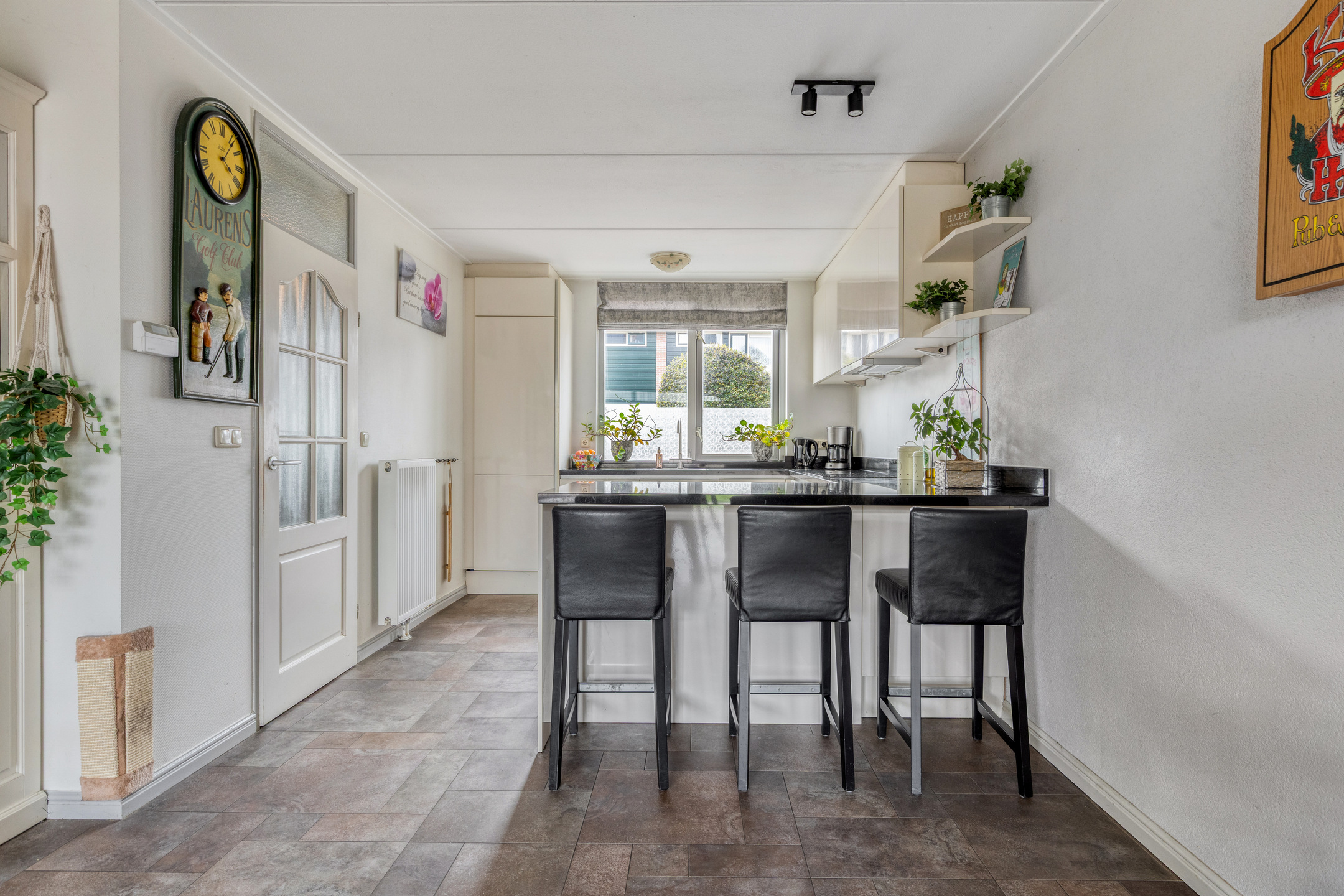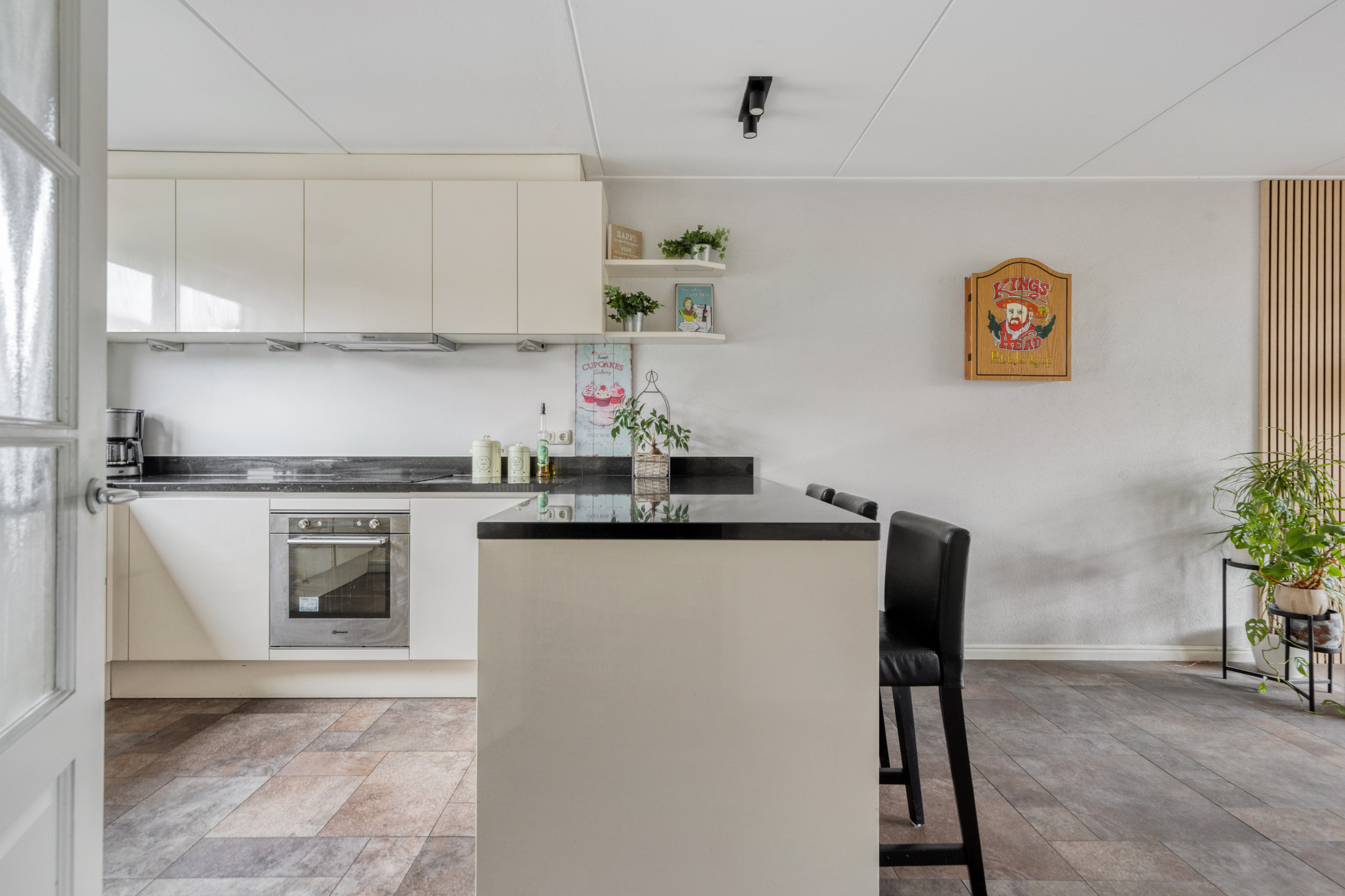 Entree via de voordeur, meterkast en separaat toilet. Vervolgens kom je binnen in de heerlijk lichte en ruime woonkamer met uitzicht op het water. De strakke, moderne keuken met composietblad is aan de voorzijde gelegen en voorzien van alle gemakken, zoals een inductiekookplaat, Quooker, combimagnetron, koel-/vriescombinatie en interne afzuigkap. De gezellige bar direct aan de keuken maakt koken extra plezierig.