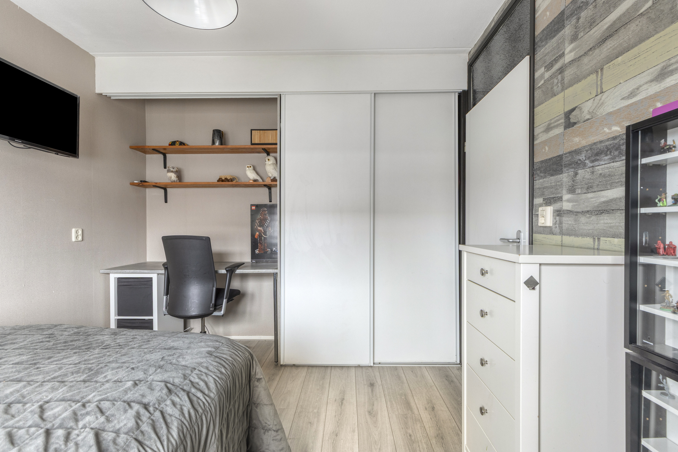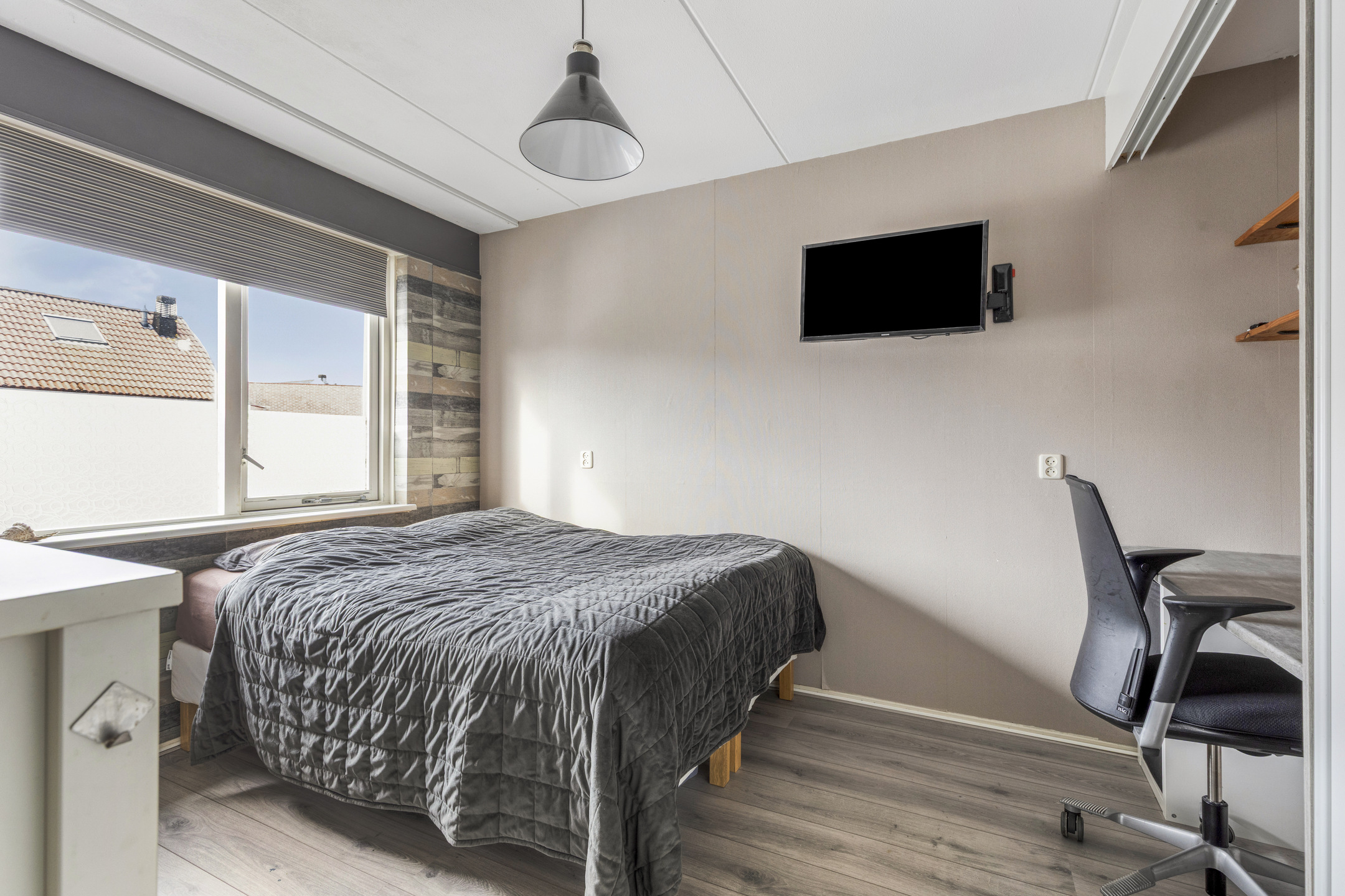 De tweede slaapkamer doet daar niet voor onder: deze is gelegen aan de achterzijde en kijkt uit op groen en water. De derde slaapkamer kan ook dienen als babykamer, thuiswerkplek of logeerkamer. De badkamer is modern, strak en warm qua uitstraling. Deze beschikt over een wastafelmeubel, designradiator, tweede toilet en een royale inloopdouche met regendouche en handdouche.
