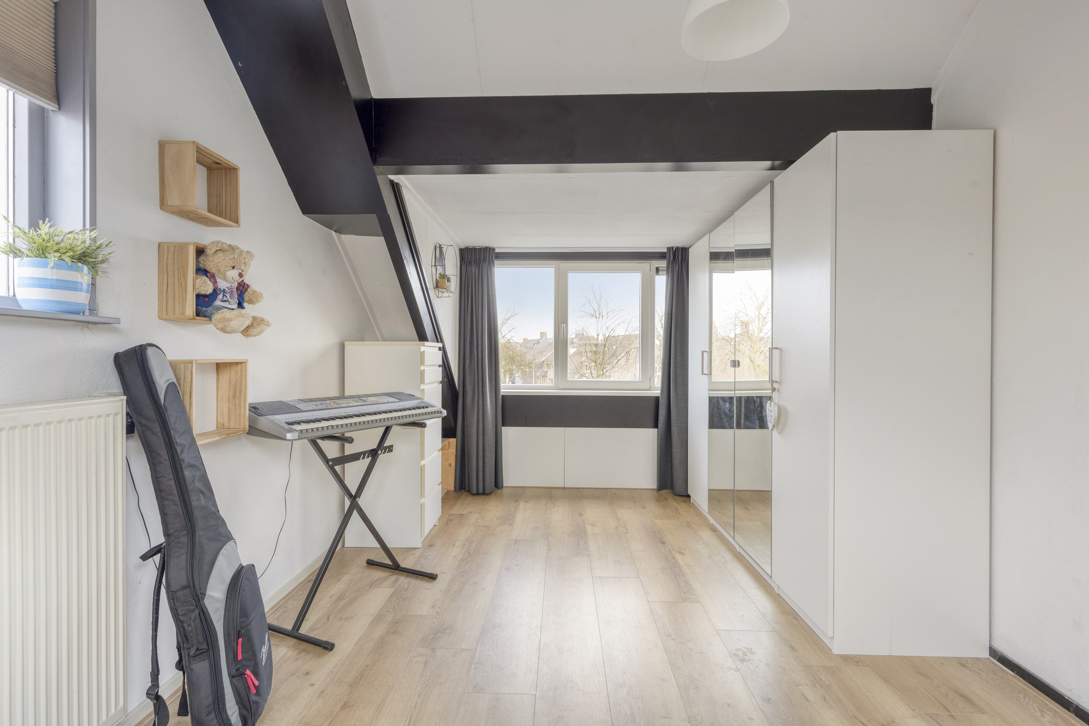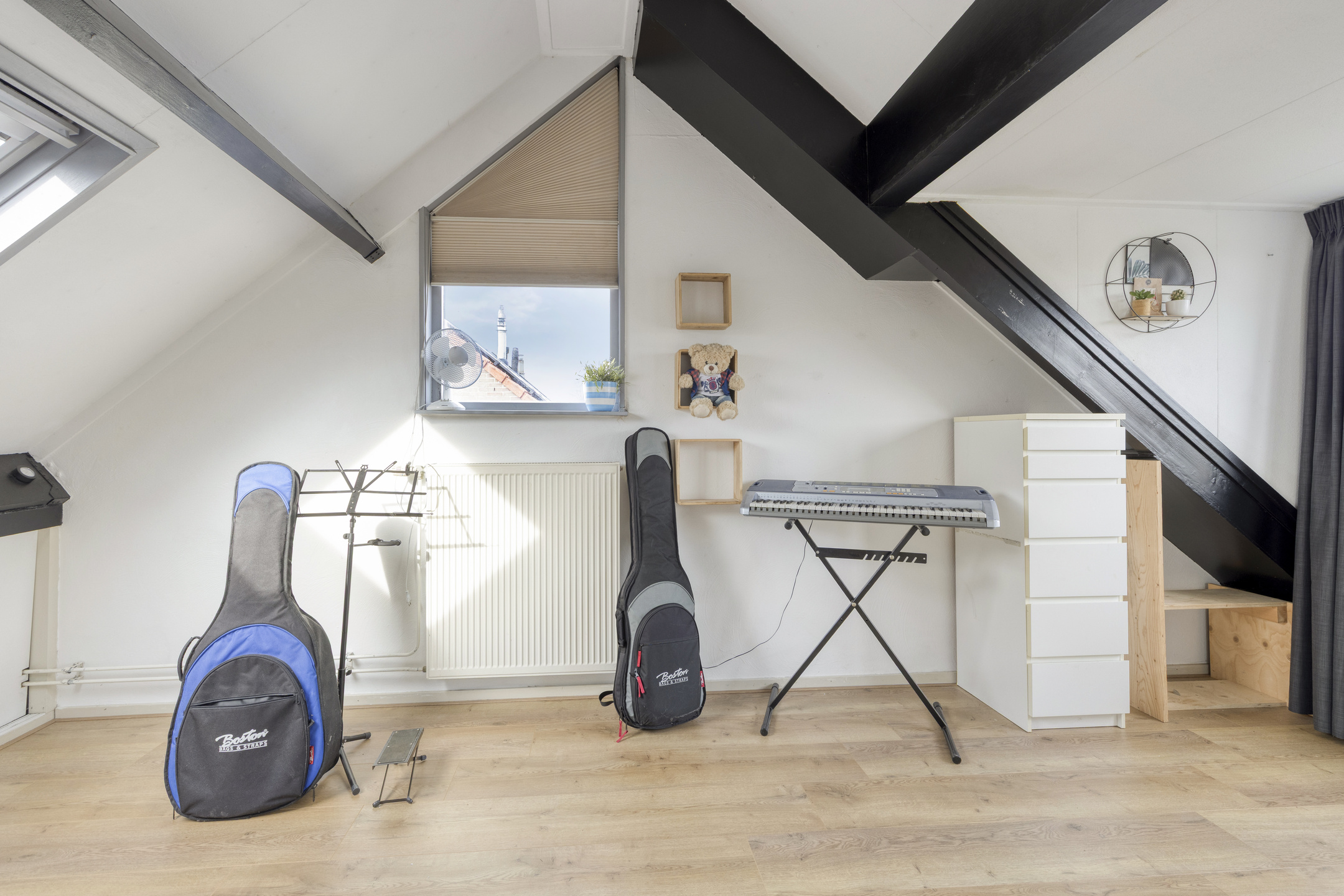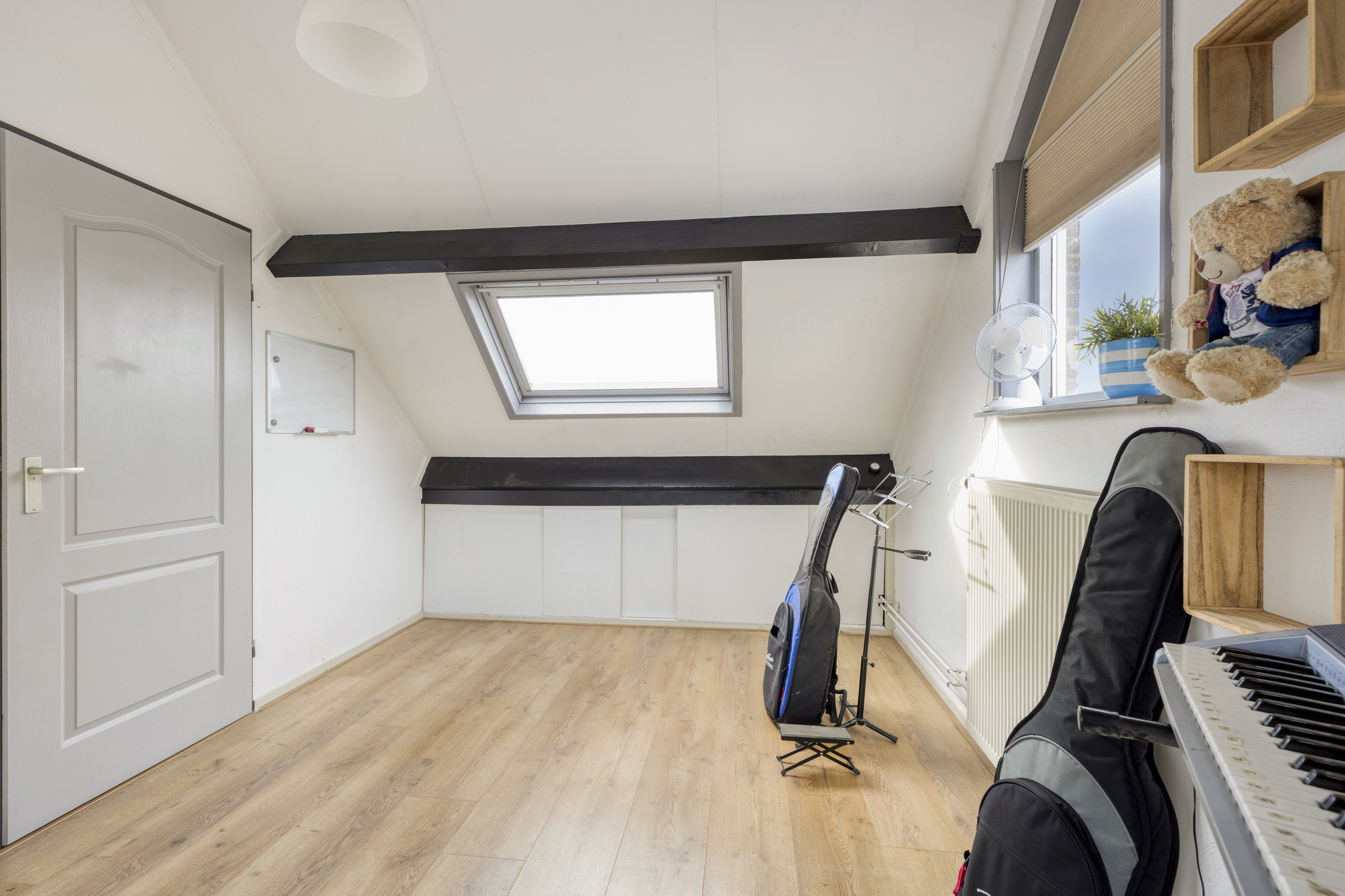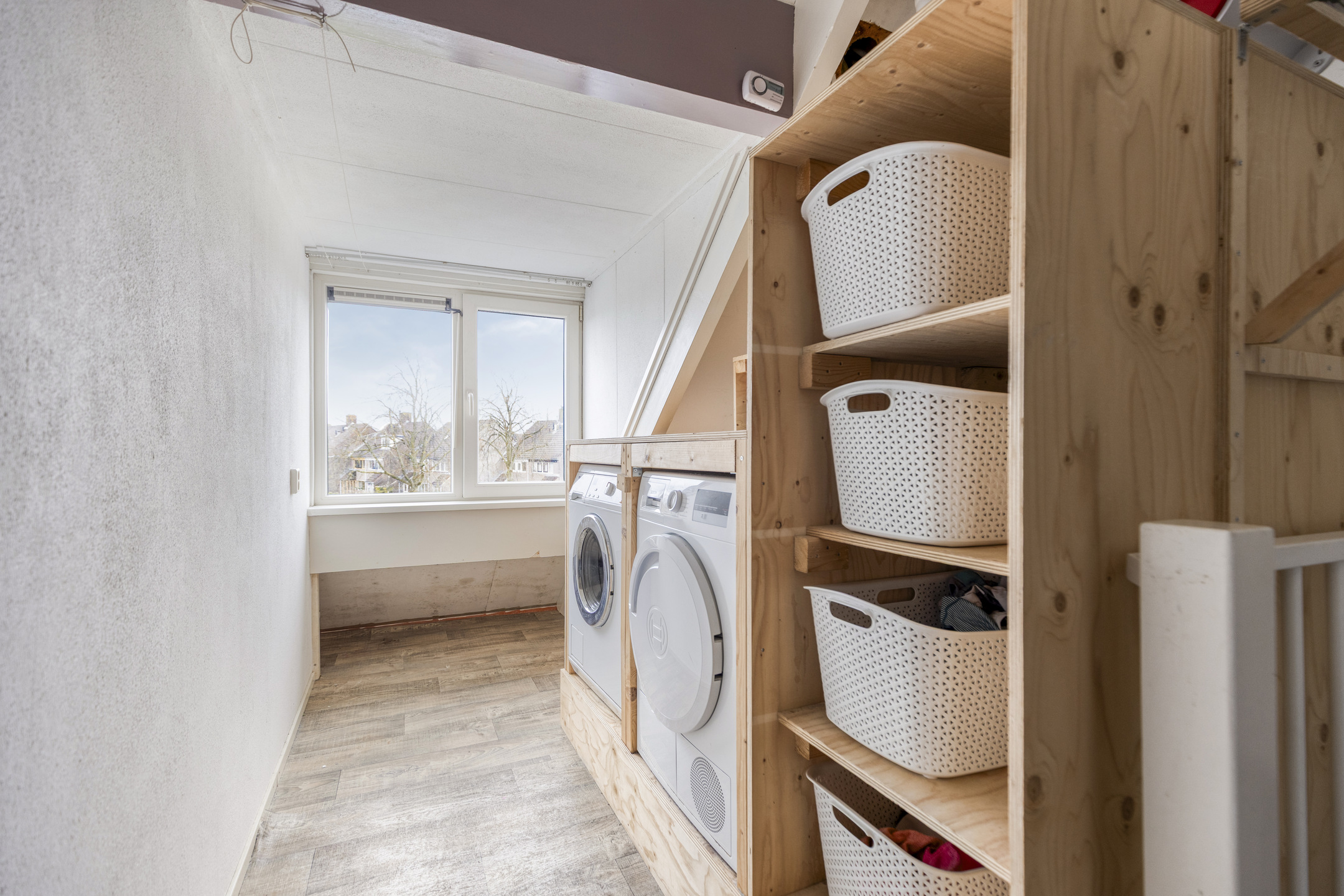 There’s more: the spacious attic. On the landing, a laundry area has been created, equipped with connections for a washing machine and dryer. The bright and generous attic room of approx. 15 m² is a highlight in itself. With high ceilings and windows on both sides, it offers an abundance of light and space. Easy to adapt for various purposes.