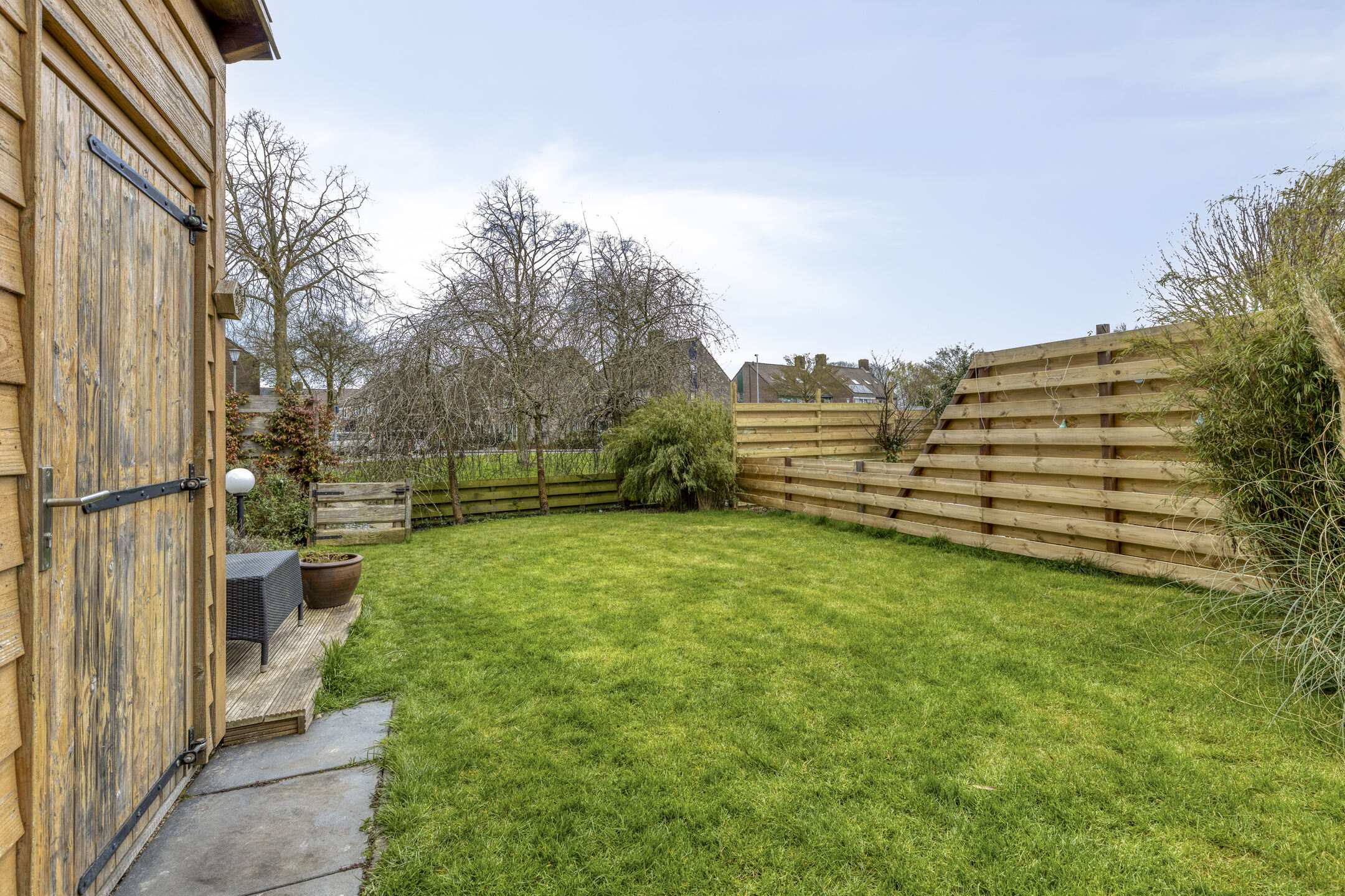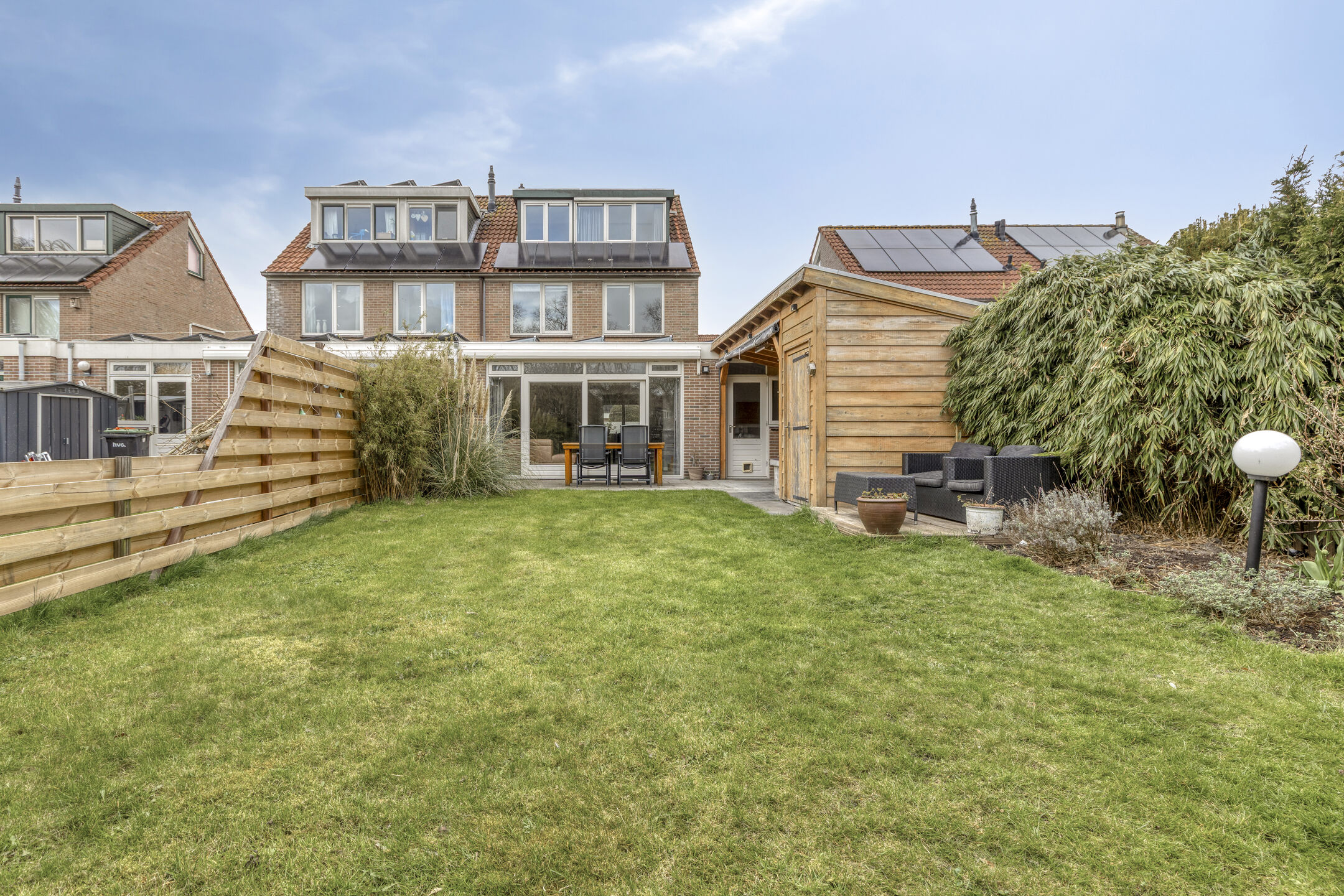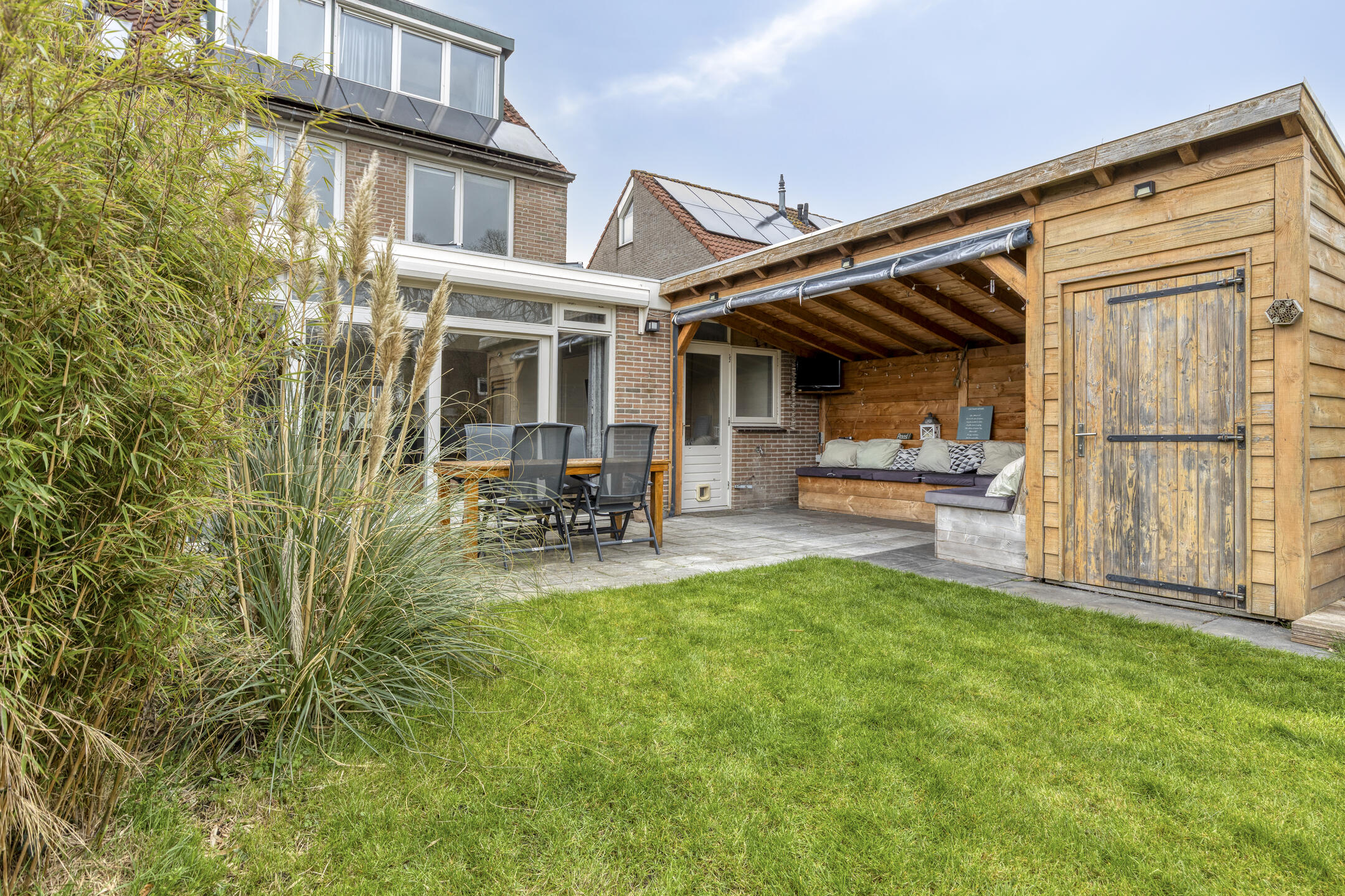 As the cherry on top, there is a spacious sunny backyard. Rain or shine: you’ll always be comfortable under the large covered area of over 11 m². Green thumb? In addition to the canopy, there is also a storage shed where you can easily store all your belongings. Relax on the terrace or by the waterside deck. Are you ready to enjoy the summer in this wonderful garden? With such a great outdoor space, family and friends will love to visit.
