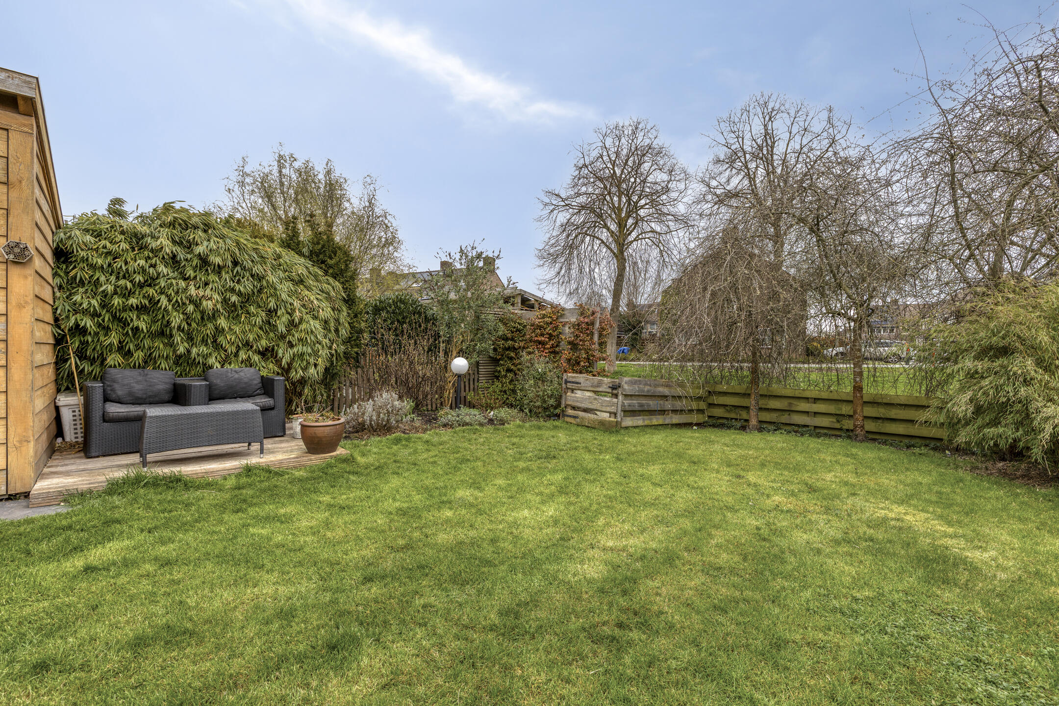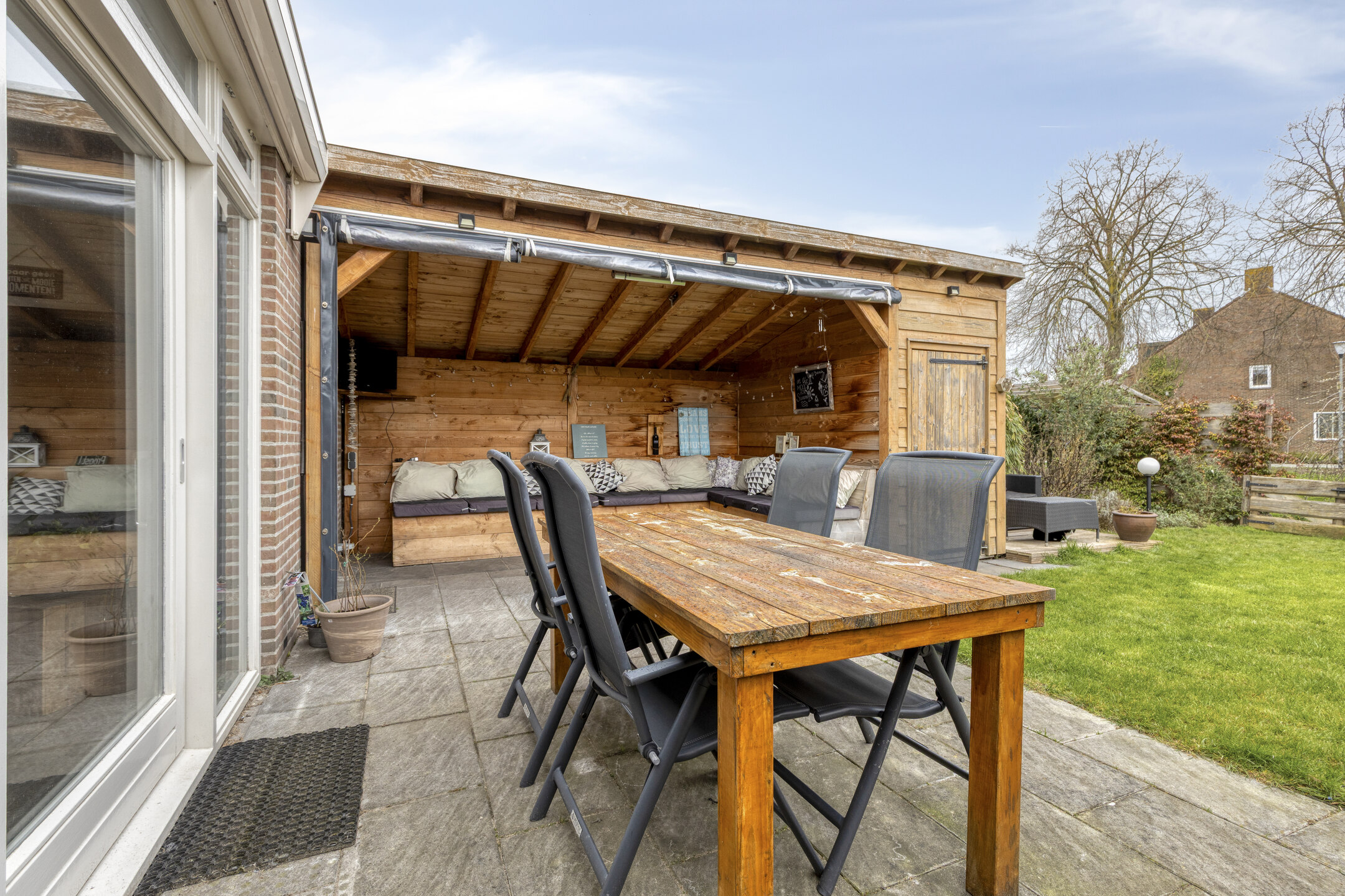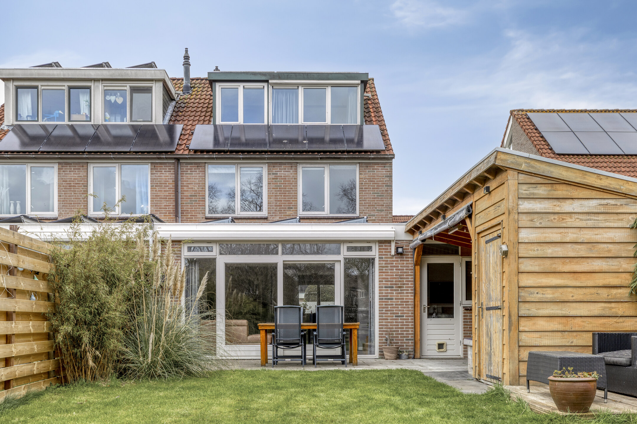 As the cherry on top, there is a spacious sunny backyard. Rain or shine: you’ll always be comfortable under the large covered area of over 11 m². Green thumb? In addition to the canopy, there is also a storage shed where you can easily store all your belongings. Relax on the terrace or by the waterside deck. Are you ready to enjoy the summer in this wonderful garden? With such a great outdoor space, family and friends will love to visit.
