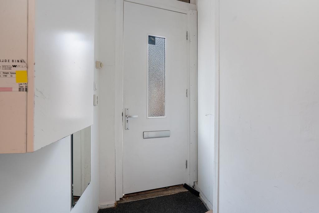 Tussen de winkels en vlak naast een brasserie en supermarkt bevindt zich de entree. Voor een goede kop koffie of een lekker ontbijt hoef je dus niet ver van huis. In de hal bevindt zich de trapopgang naar het appartement, gelegen op de tweede etage.