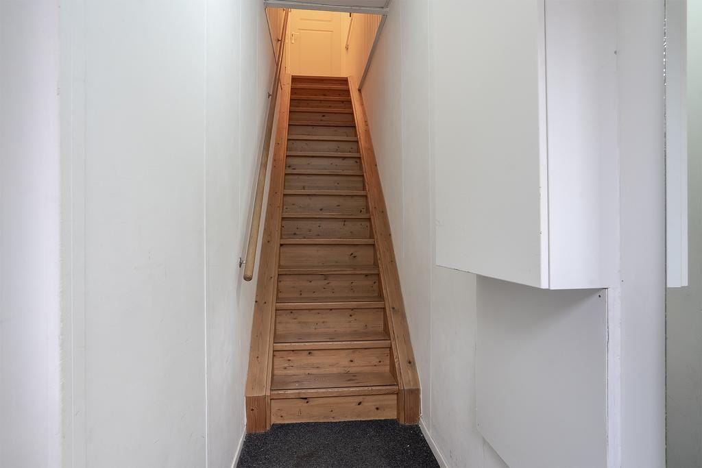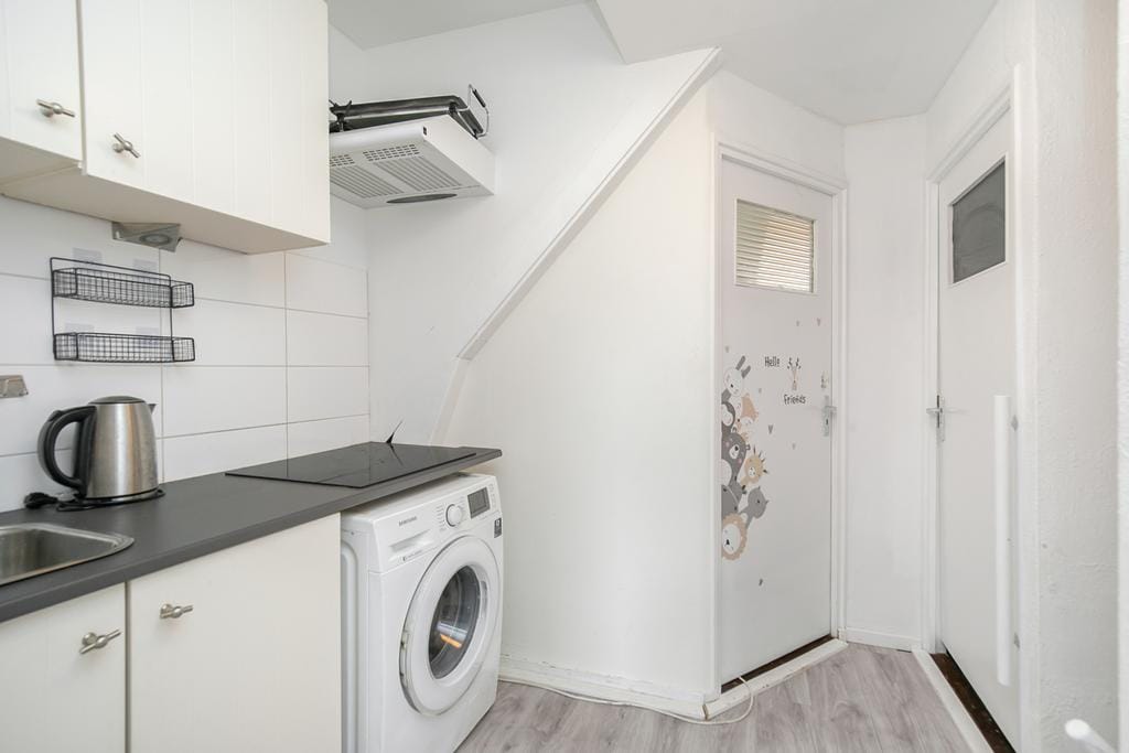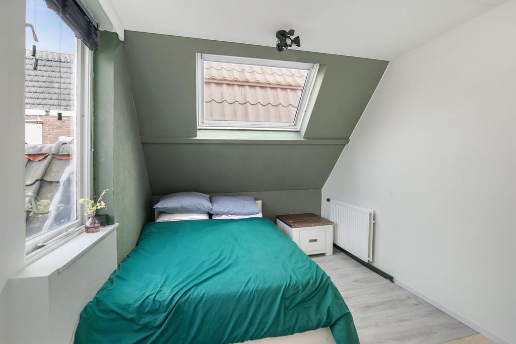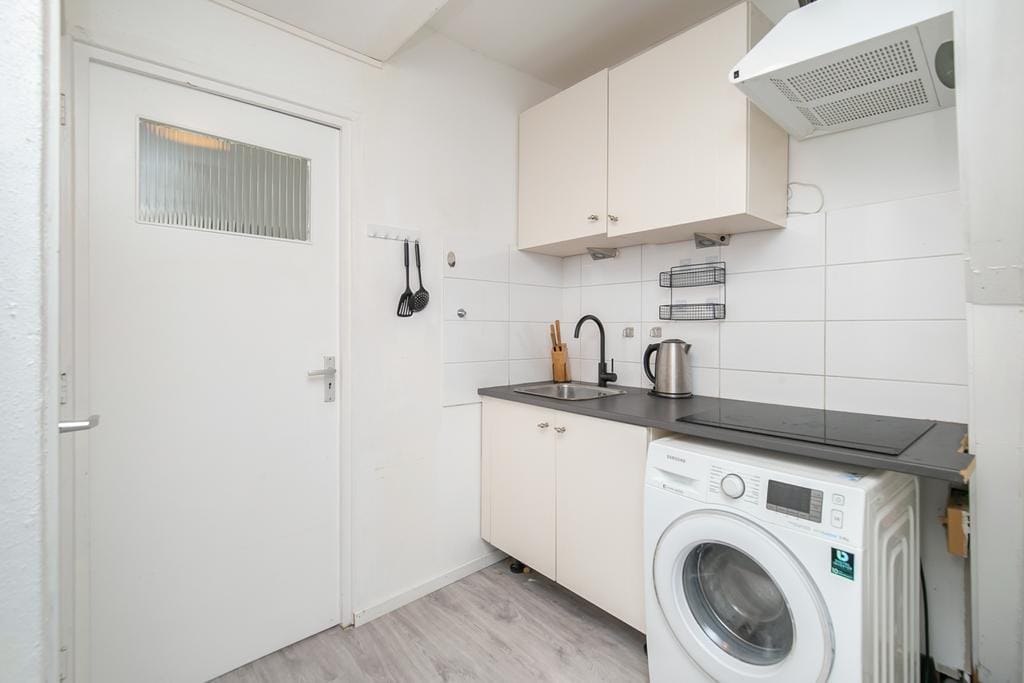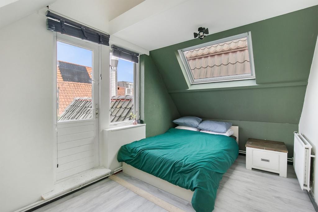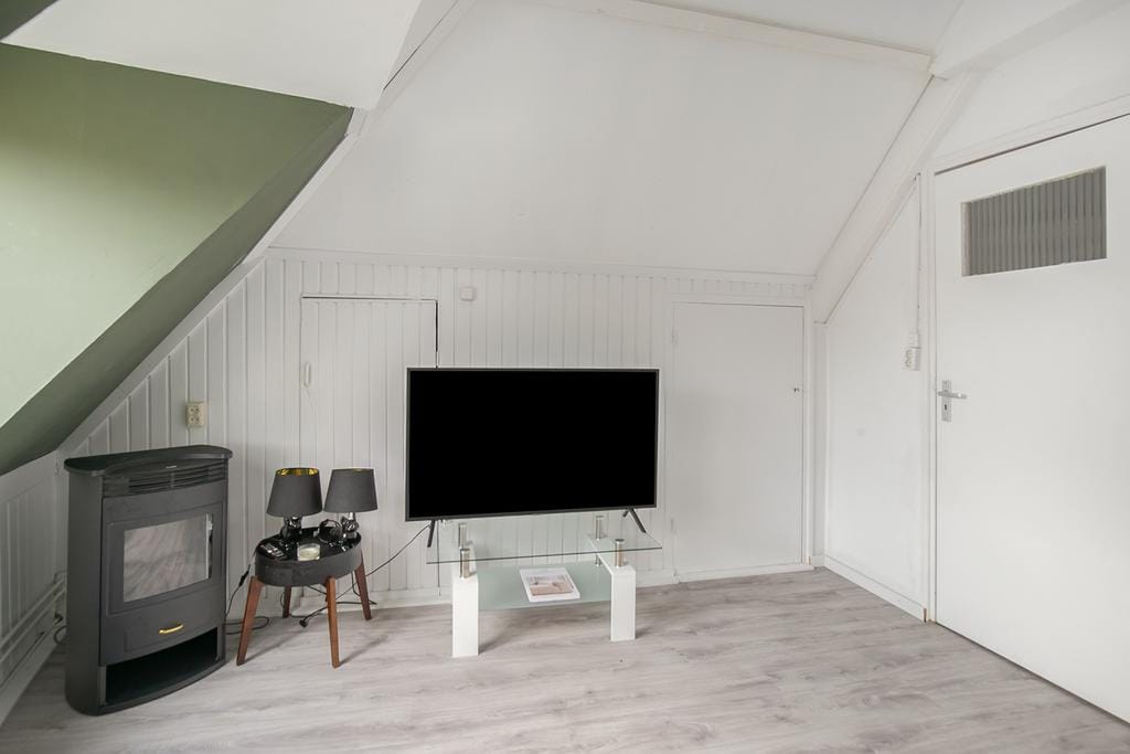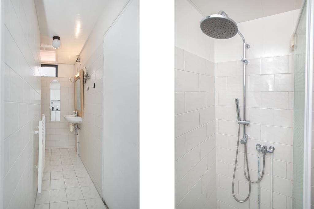 Upon entering you immediately step into the cozy kitchen. This is equipped with a connection for a washing machine, worktop, induction hob, extractor hood, mixer tap and a functional layout for all kitchen utensils. On the left of the kitchen is the living room. The characteristic wooden paneling and the sloping roof give this room a warm appearance. From here you also have a direct view of the shopping street! The modern bathroom on the other side of the kitchen has a shower cabin, sink and towel radiator. The white tiled floor and wall give this spacious room a fresh look.Unique to this house is the very spacious bedroom located at the rear of the house. Adjacent to the bedroom is the entrance to the detached toilet. The sloping skylight illuminates the room naturally. The bedroom gives access to the sunny roof terrace. Because the bedroom located at the rear of the house, you have privacy and no noise pollution from the (shopping) street side!