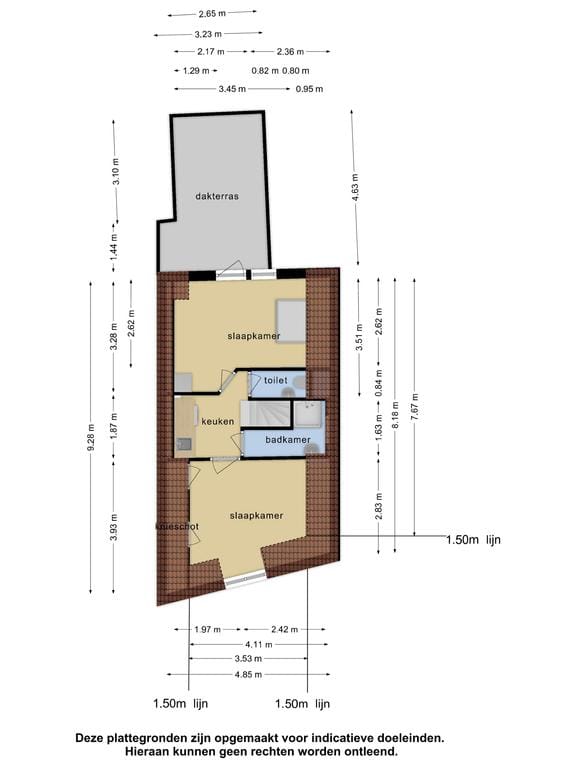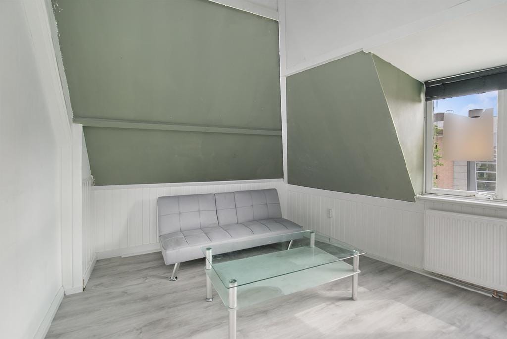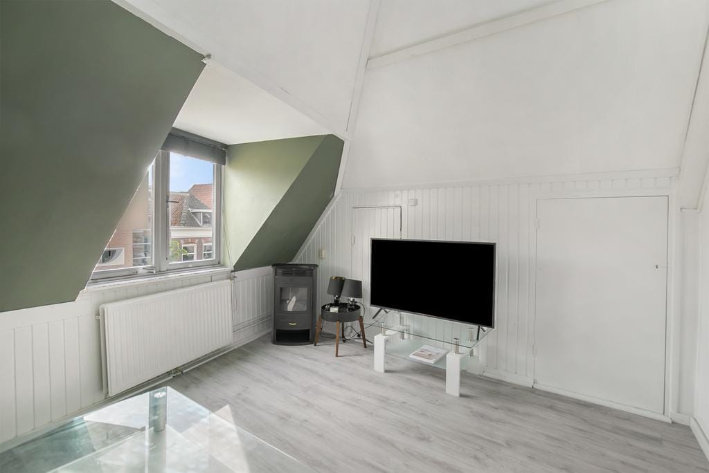 Bij binnenkomst stap je direct in de knusse keuken. Deze is voorzien van een aansluiting voor een wasmachine, werkblad, inductiekookplaat, afzuigkap, mengkraan en een functionele indeling voor al het keukengerei. Aan de linkerkant van de keuken bevindt zich de woonkamer. De karakteristieke houten lambrisering en het schuine dak geeft deze ruimte een warme uitstraling. Vanuit hier heb je ook nog eens direct zicht op de winkelstraat. De praktische ingedeelde badkamer aan de overzijde van de keuken is voorzien van douchecabine, wastafel en handdoekradiator. De witte tegelvloer en muur geven deze ruime een frisse look. Uniek aan deze woning is de zeer ruime slaapkamer die aan de achterzijde van het huis gelegen zijn. Aansluitende bij de slaapkamer is de ingang van het vrijstaande toilet. Door het schuine dakraam wordt de kamer op een natuurlijke manier verlicht. De slaapkamer geeft toegang naar het zonnige dakterras, ook is hier makkelijk een grote slaap of woonkamer van te maken door de tussenwand te verwijderen. Doordat de slaapkamer aan de achterzijde van de woning zijn gelegen, heeft u privacy en geen geluidsoverlast van de (winkel)straatkant!