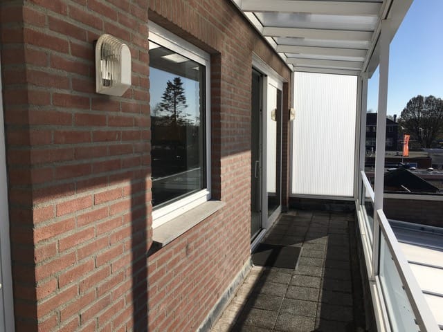 strekt over de gehele breedte van het appartement. Aan het eind van het balkon is er een