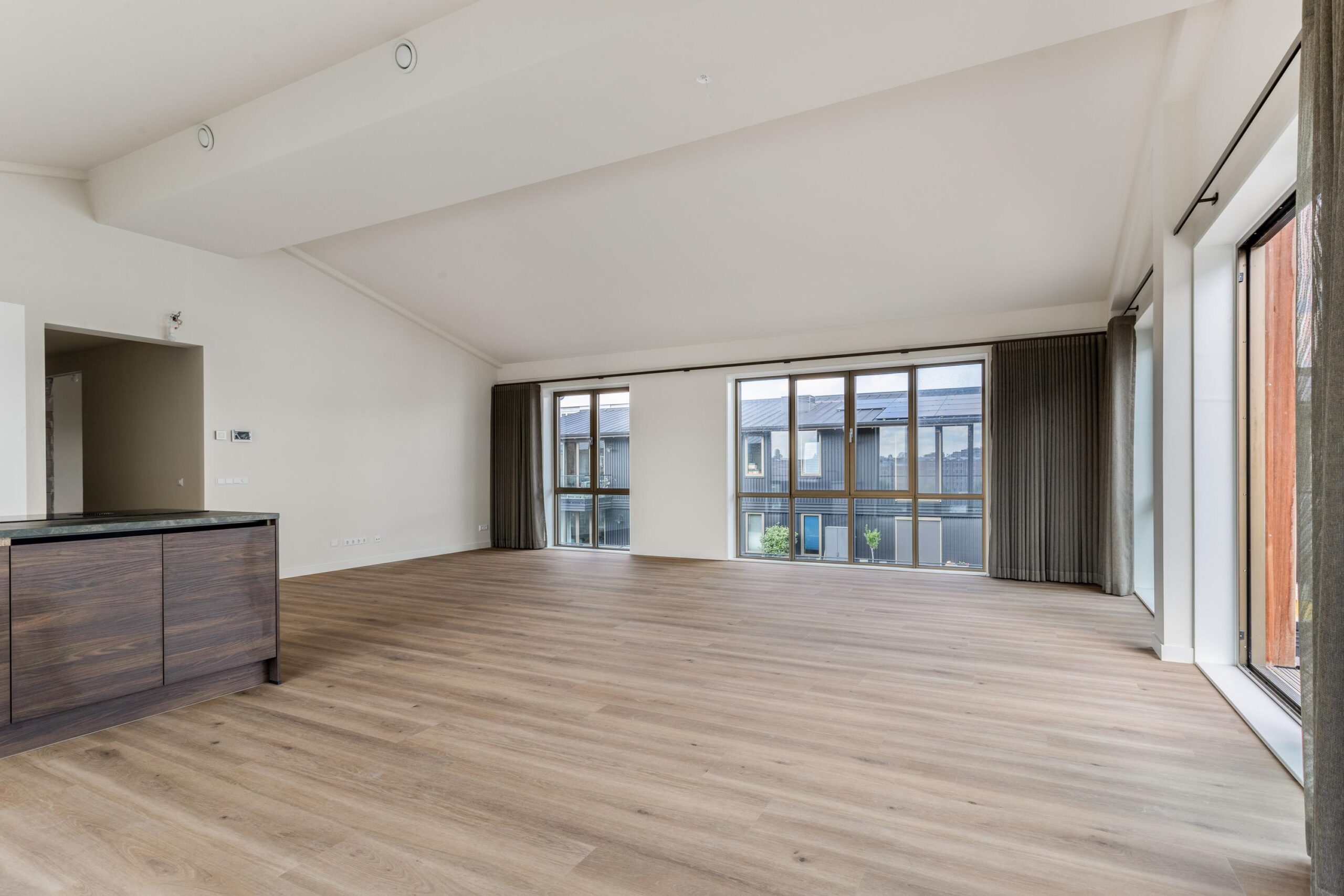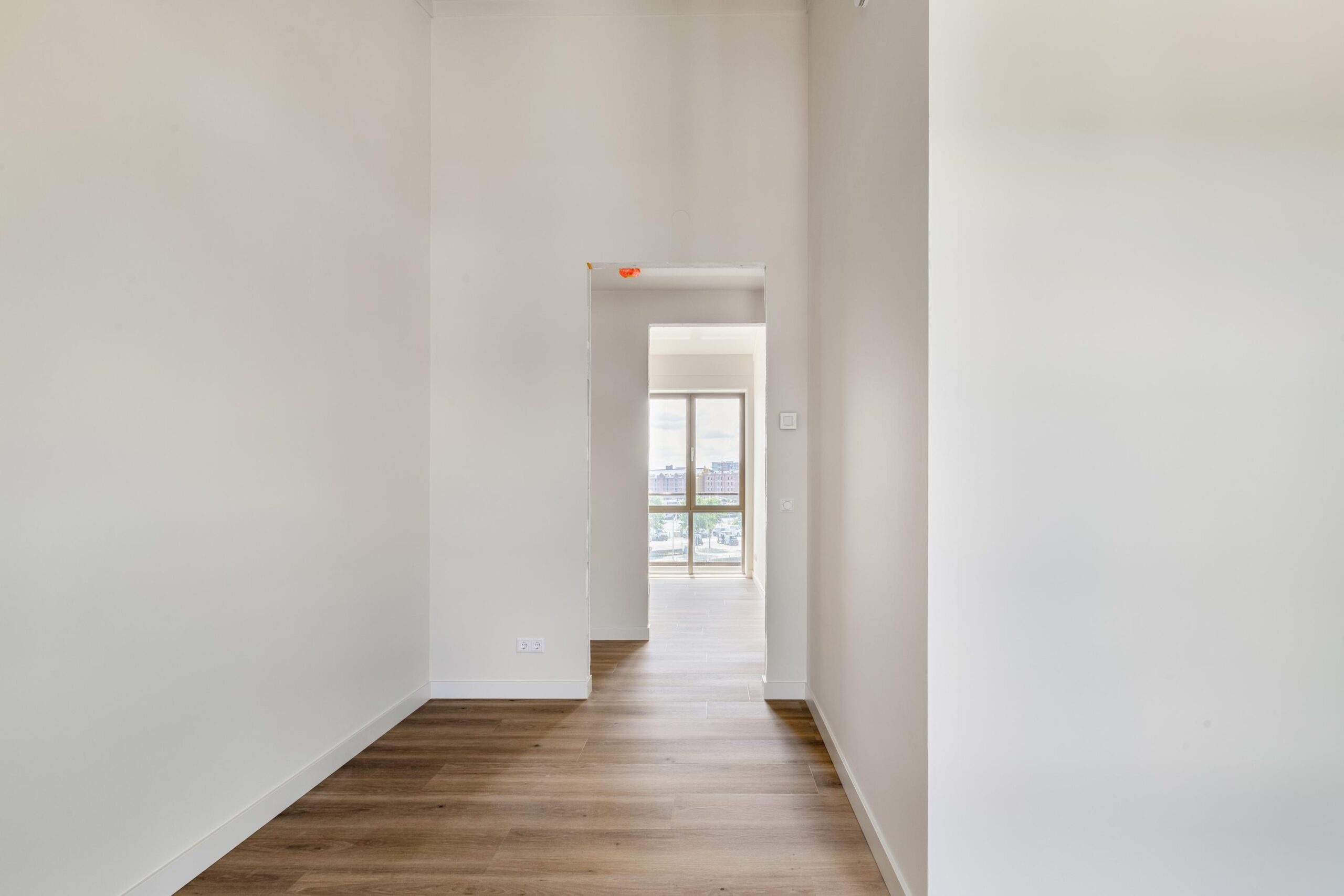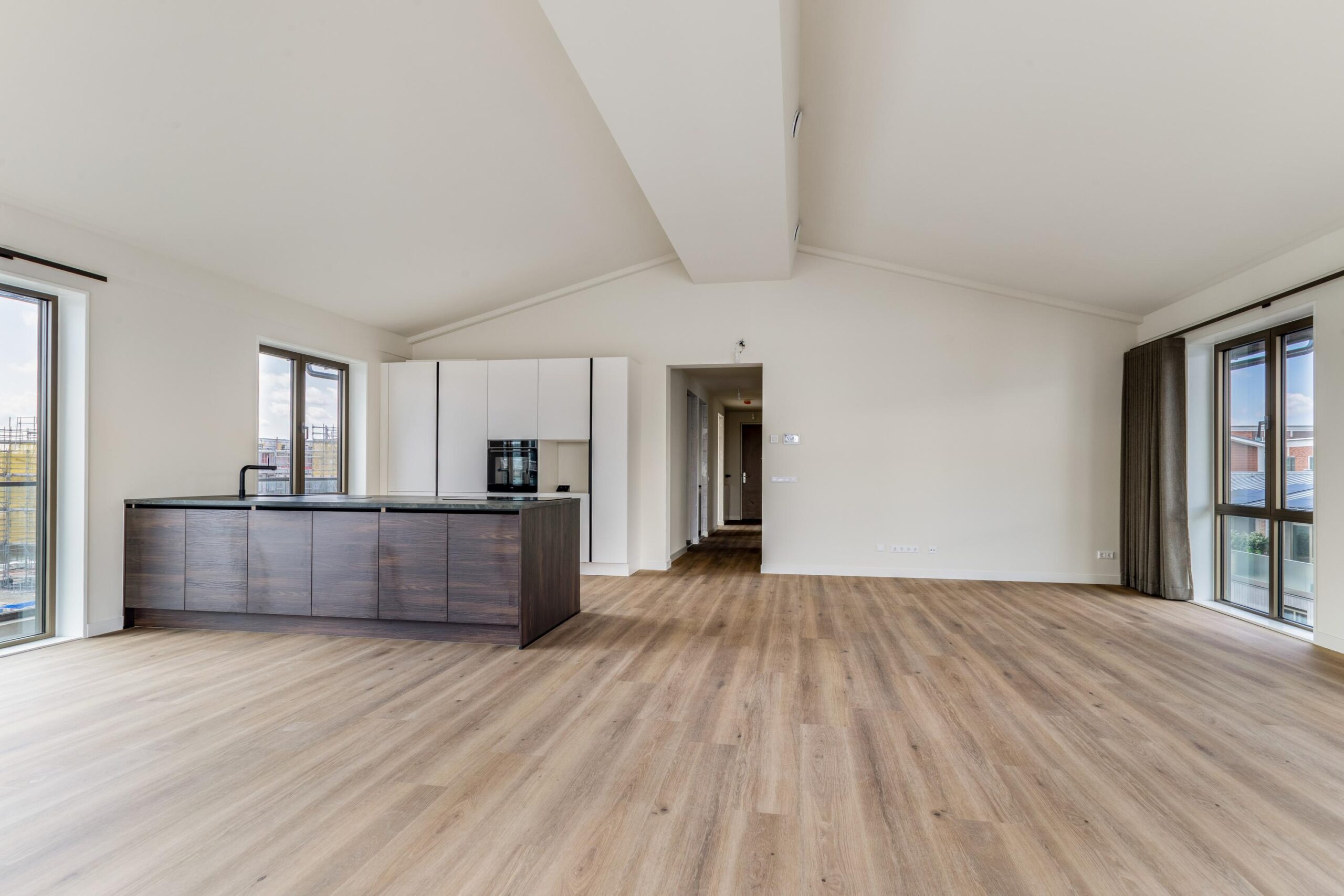 The living room boasts impressively high ceilings, enhancing the sense of space. On three sides, you have unobstructed views of the city — and a connected balcony of approximately 27 m², where you can enjoy the sun and water until late in the evening. The open-plan kitchen is fully equipped with a cooking island and all the conveniences you’d expect. There’s even room for a coffee bar, making it the beating heart of the home — perfect for cooking enthusiasts and entertainers alike.