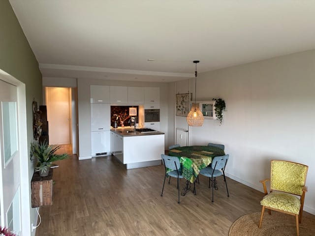 Spacious and bright living room with a beautiful view over Heemstede. The apartment has a modern open kitchen with a stylish cooking island, a 5-burner gas hob and high-quality built-in appliances, including a dishwasher, oven and refrigerator. There is also a spacious and bright bedroom with sufficient cupboard space. From the bedroom you walk to the luxurious bathroom with a walk-in shower and designer sanitary facilities. And of course there is a lovely balcony: Enjoy the breathtaking view over Heemstede.