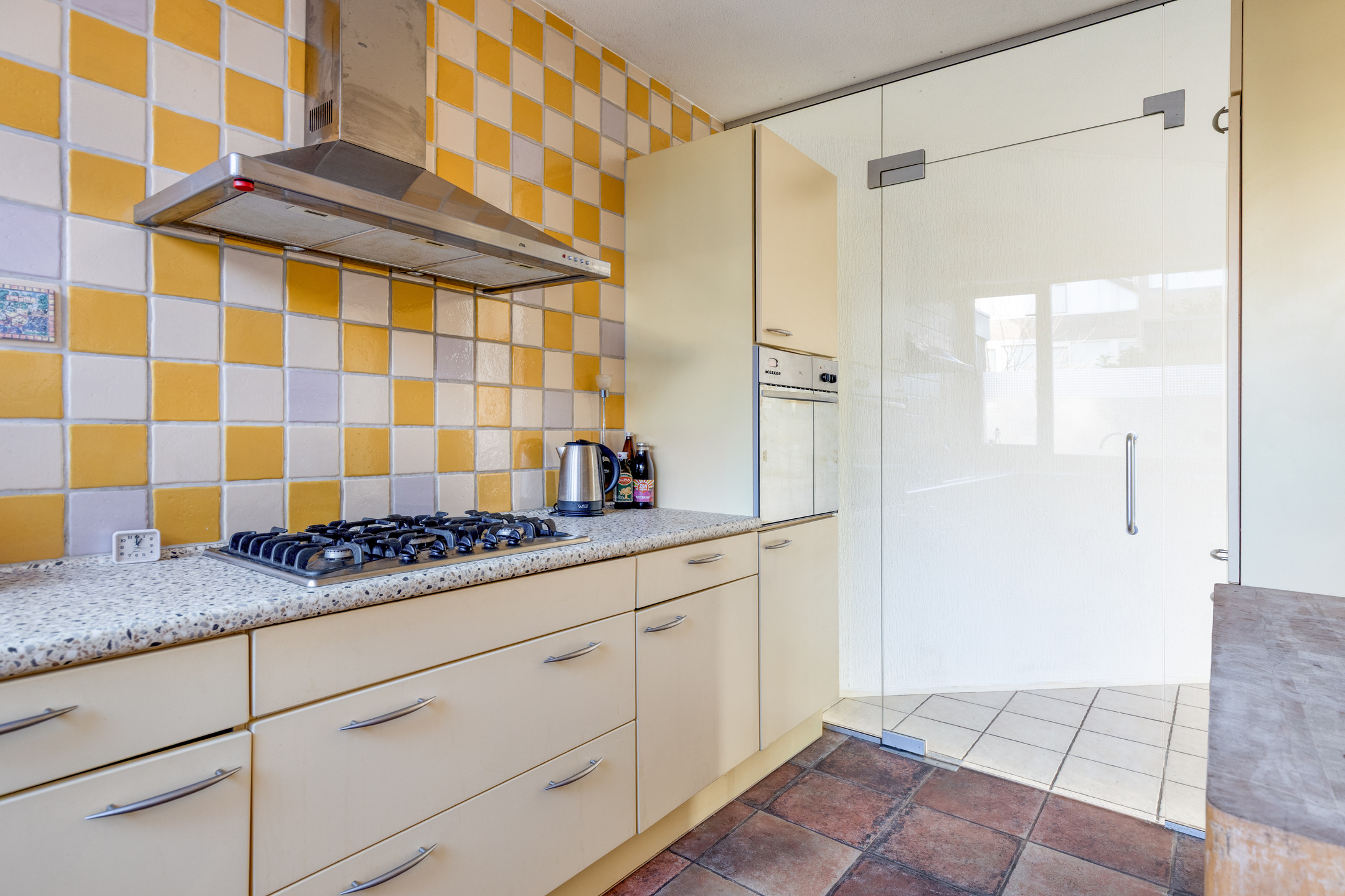 At the front is the kitchen — functional but ready for updating. This is the perfect opportunity to create a modern open-plan kitchen that seamlessly connects with the living room.