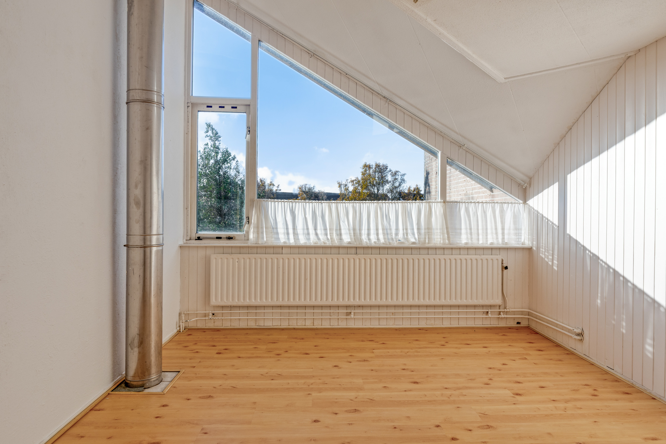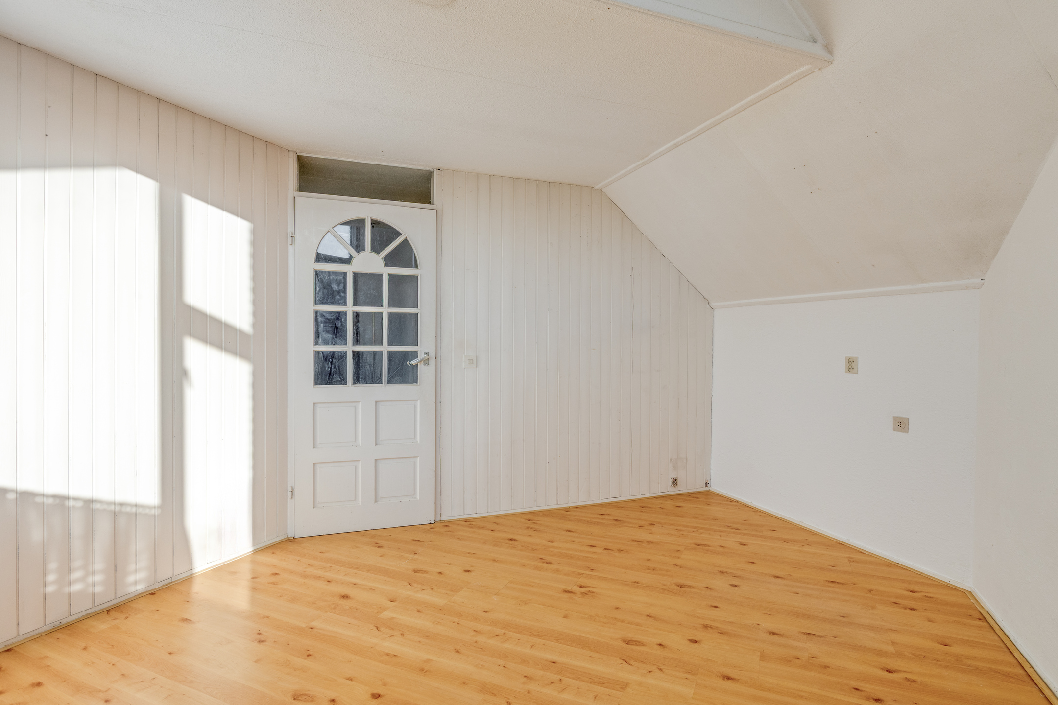 The bathroom is basic and ready for renovation. The roof window provides plenty of natural light and makes it easy to turn this into a fresh, modern family bathroom — for example with a walk-in shower, double washbasin and extra storage.