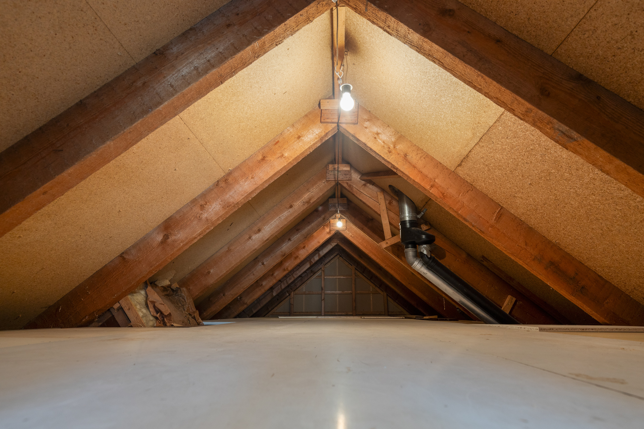 The attic is accessible via a mobile staircase and offers practical storage space for seasonal items such as Christmas decorations or camping equipment.