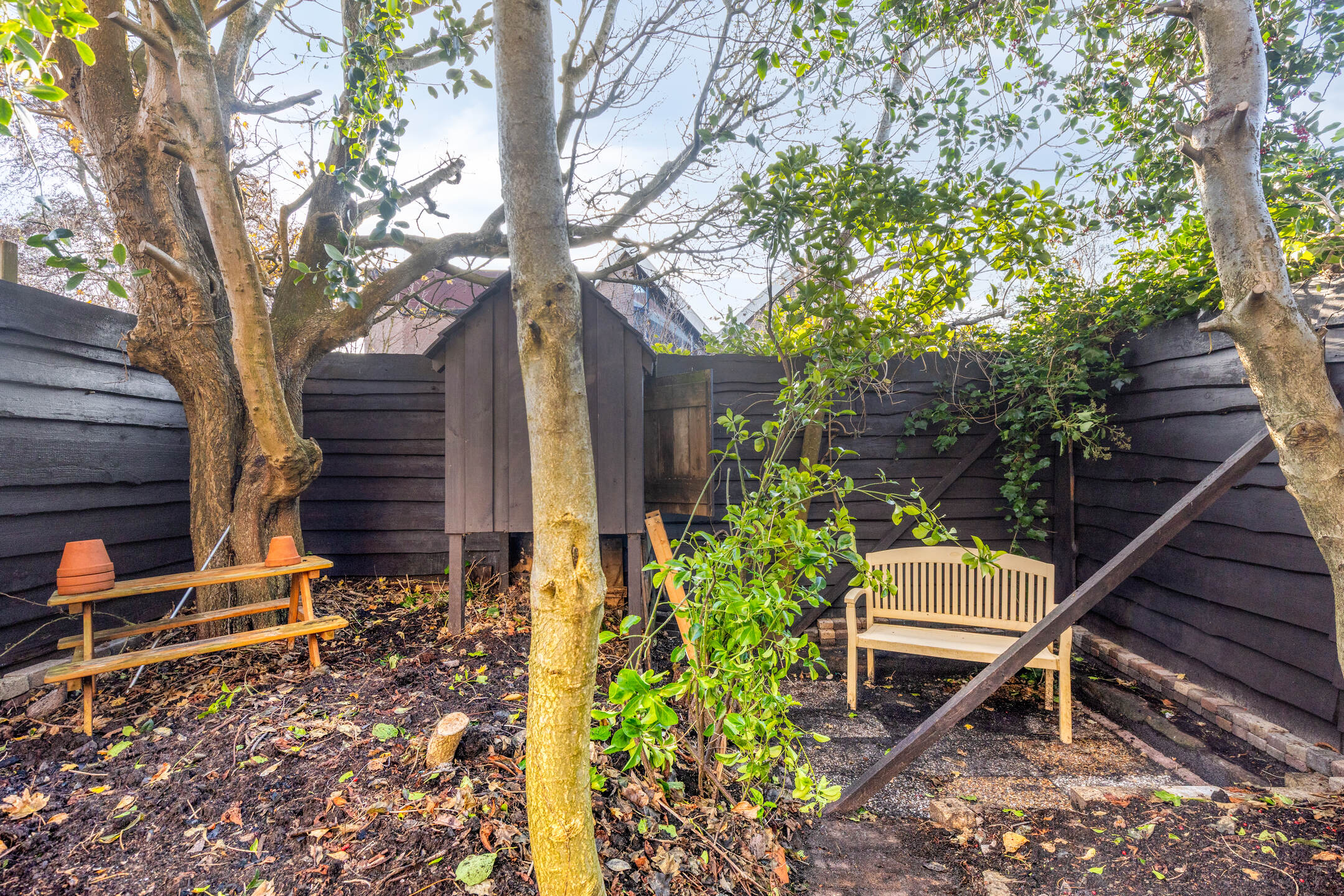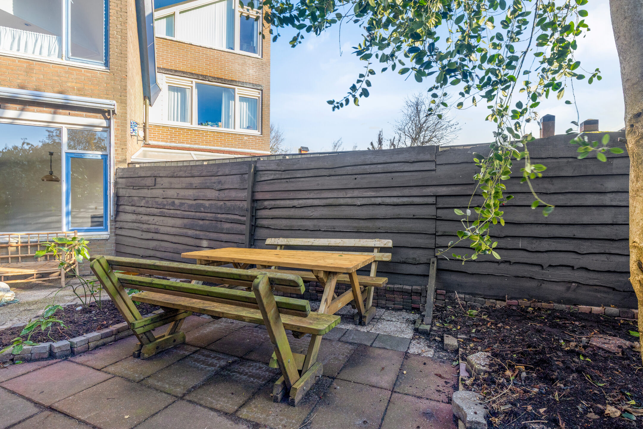 A backdoor leads to the rear garden: a large, well-shaped garden offering plenty of privacy and a favourable south-facing position. It’s an ideal space to transform into your perfect outdoor area, whether you envision a lounge corner, a play area or beautifully planted borders.