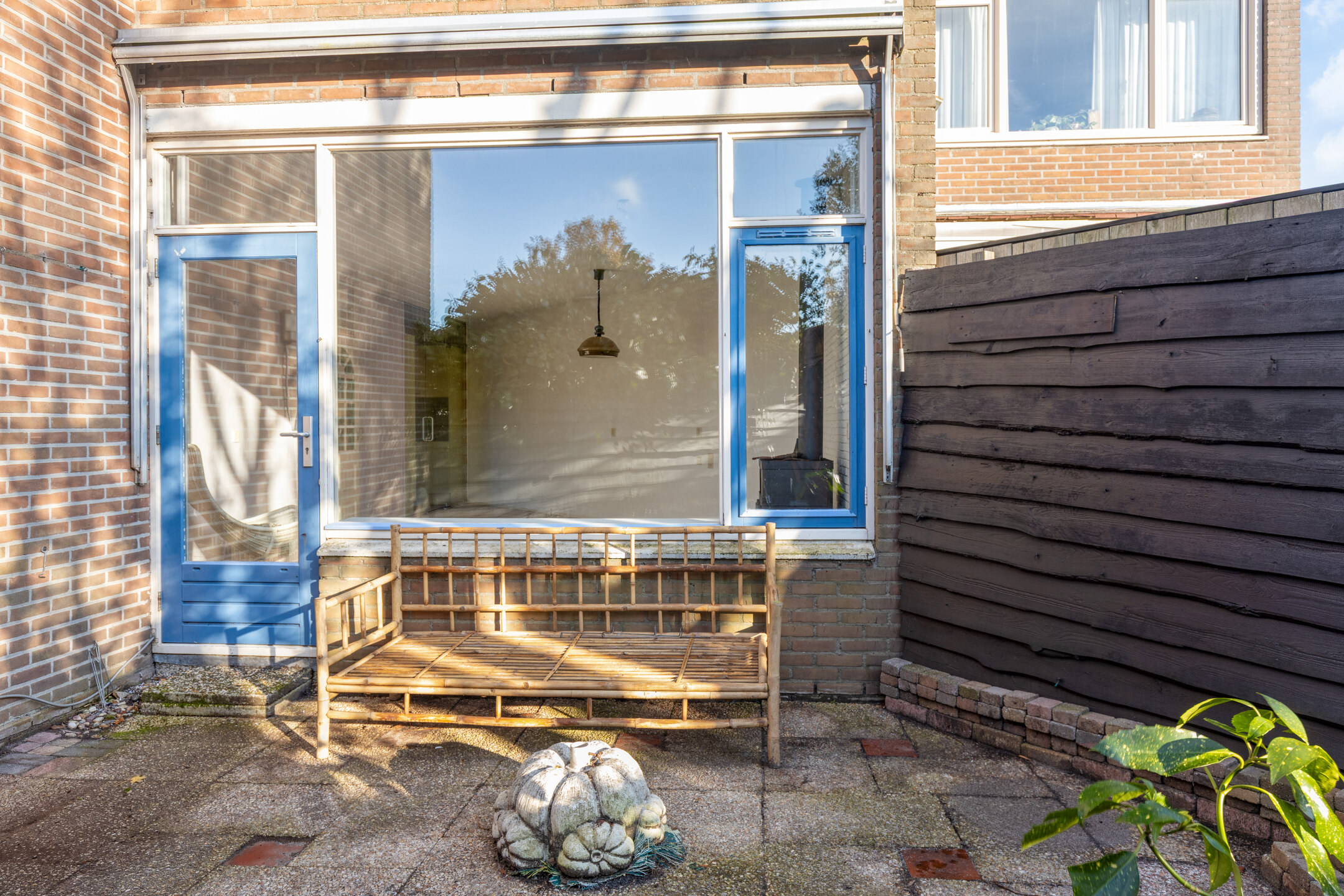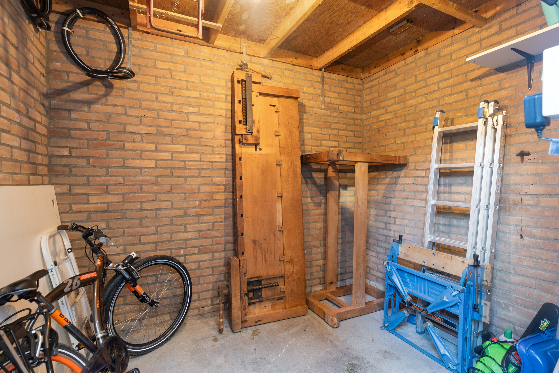 Aan de voorkant tref je een praktische stenen berging, ideaal voor fietsen en opslag.