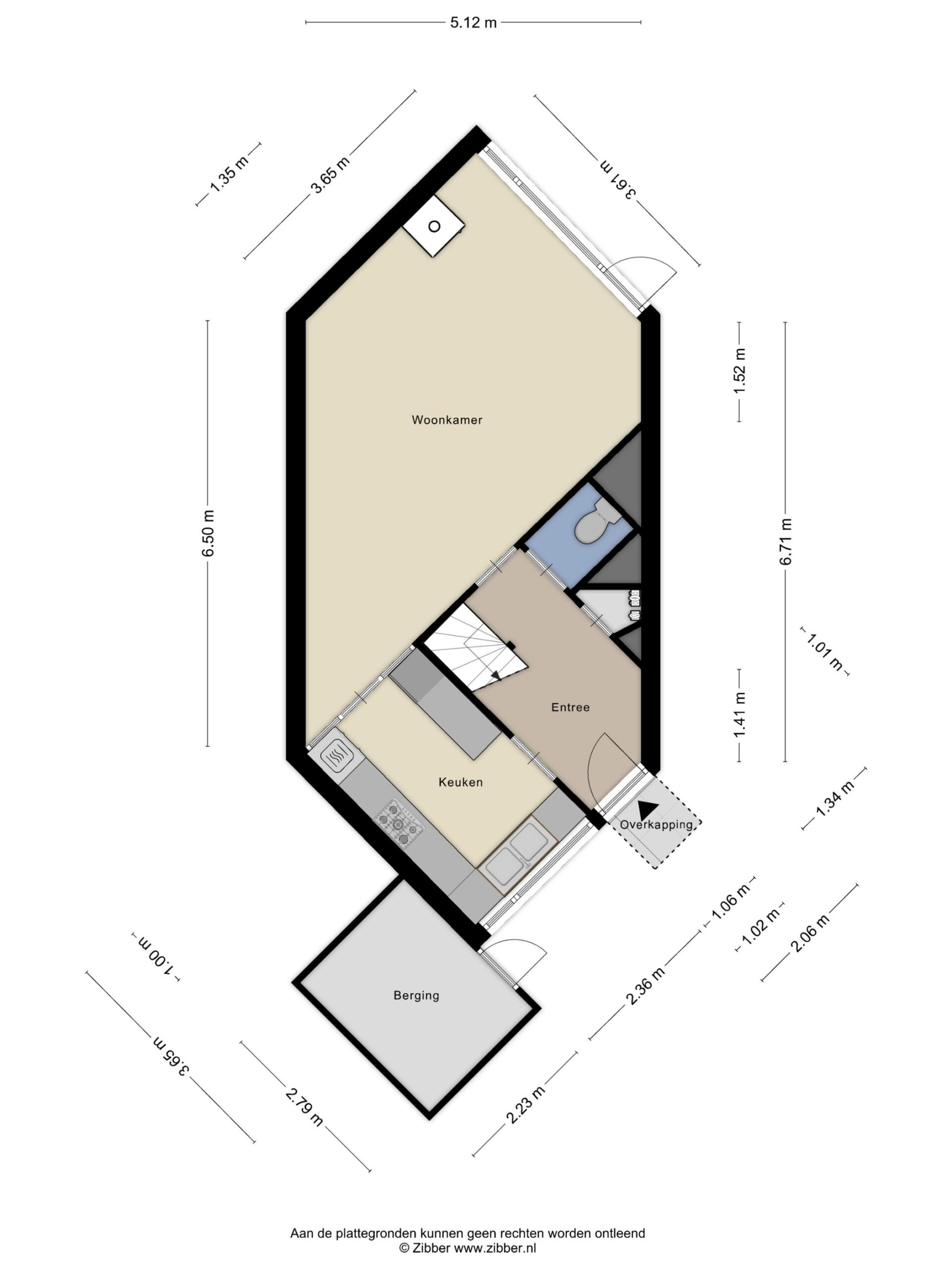 Je betreedt de woning via de entree met toegang tot het toilet, de meterkast en de trap naar de eerste verdieping. Vanuit de hal stap je de woonkamer in: een ruime, lichte leefruimte van bijna 12 meter lang die je geheel naar eigen wens kunt moderniseren. Door de speelse vorm van de woning zijn er volop mogelijkheden voor een verrassende indeling met een ruime zithoek en eethoek.