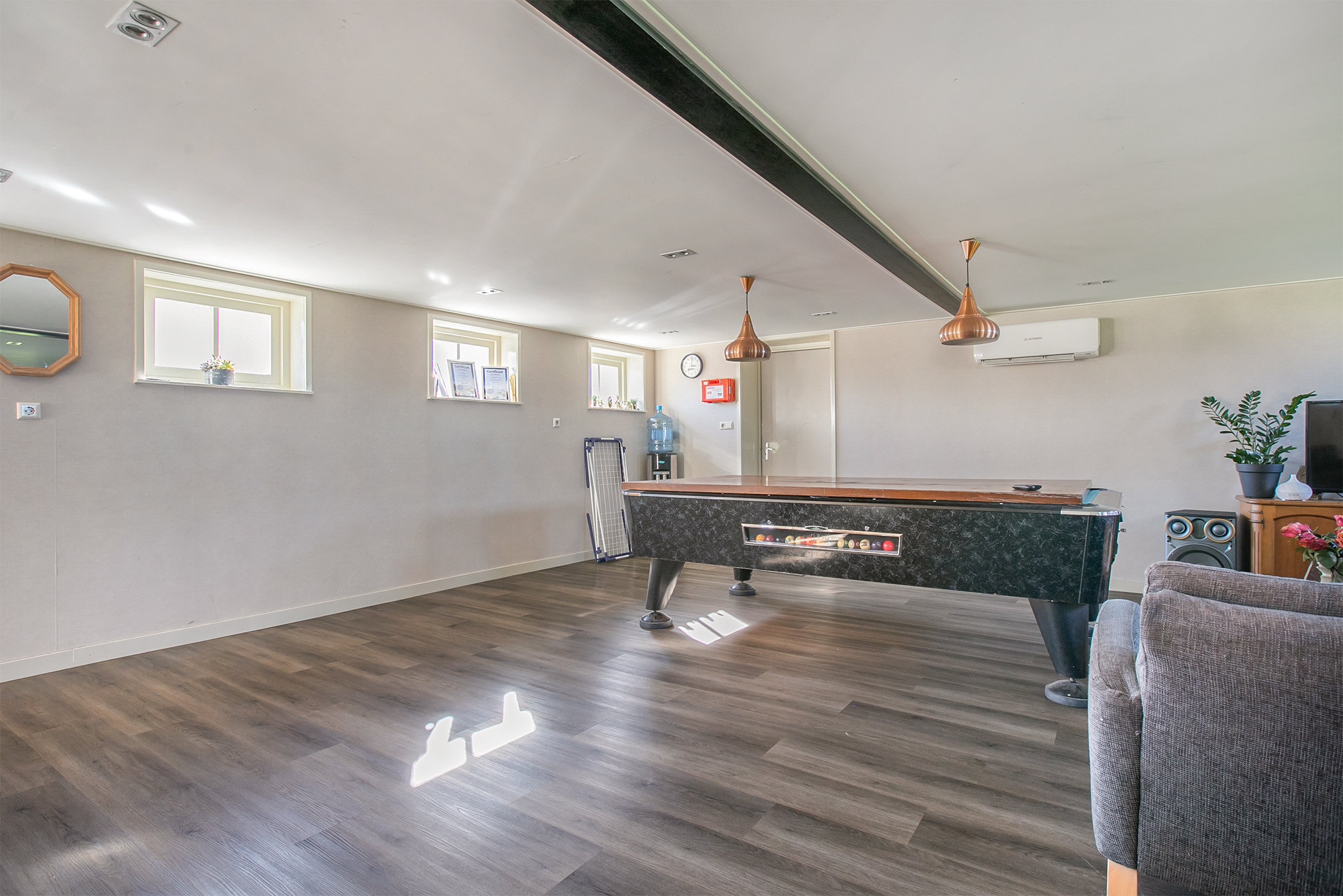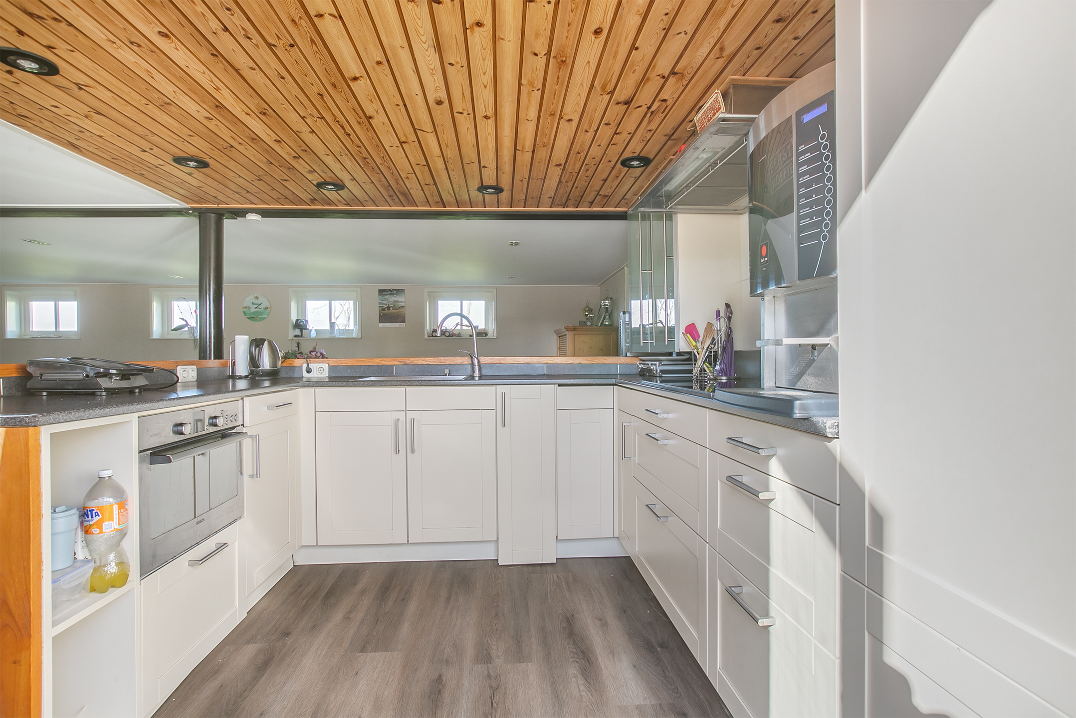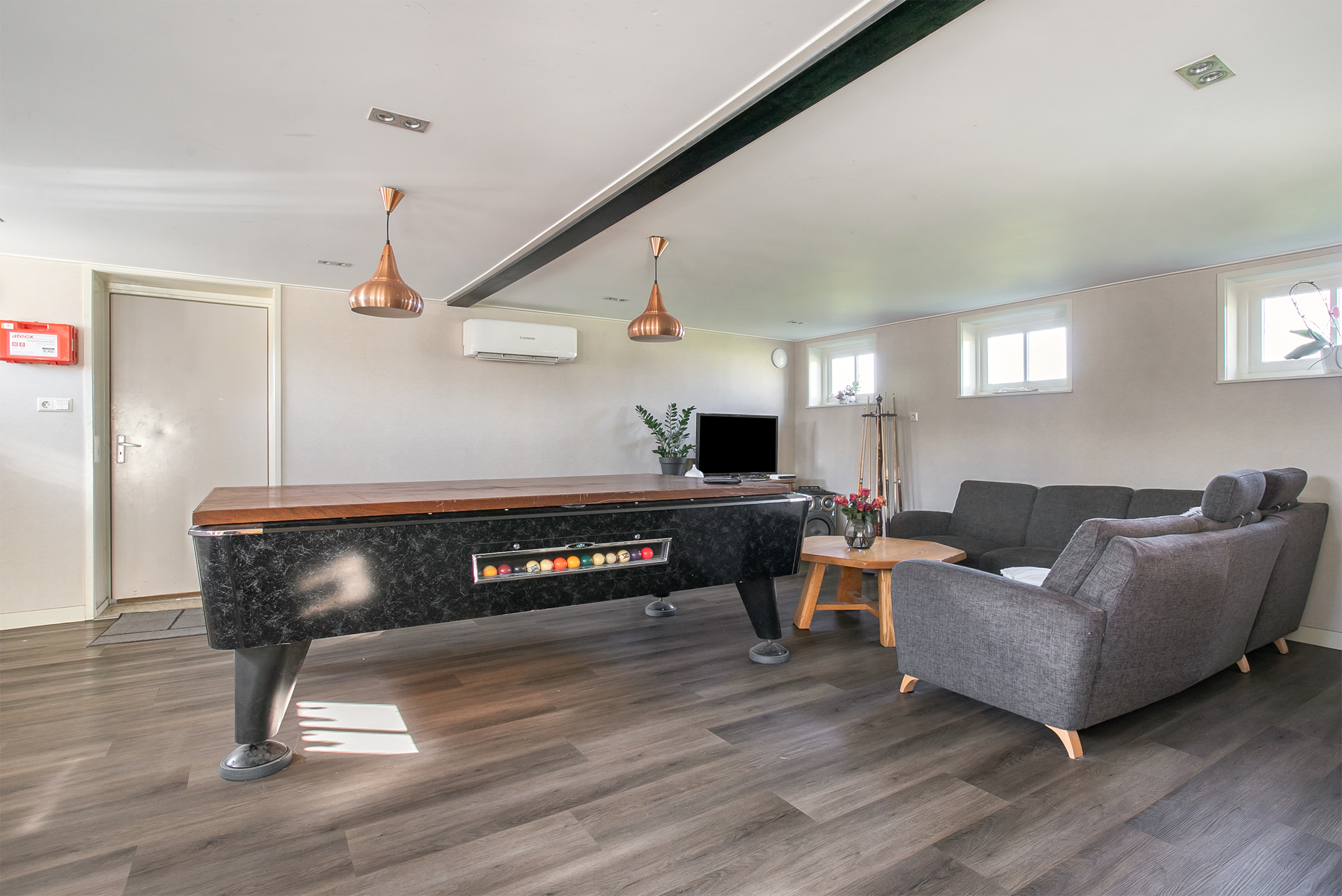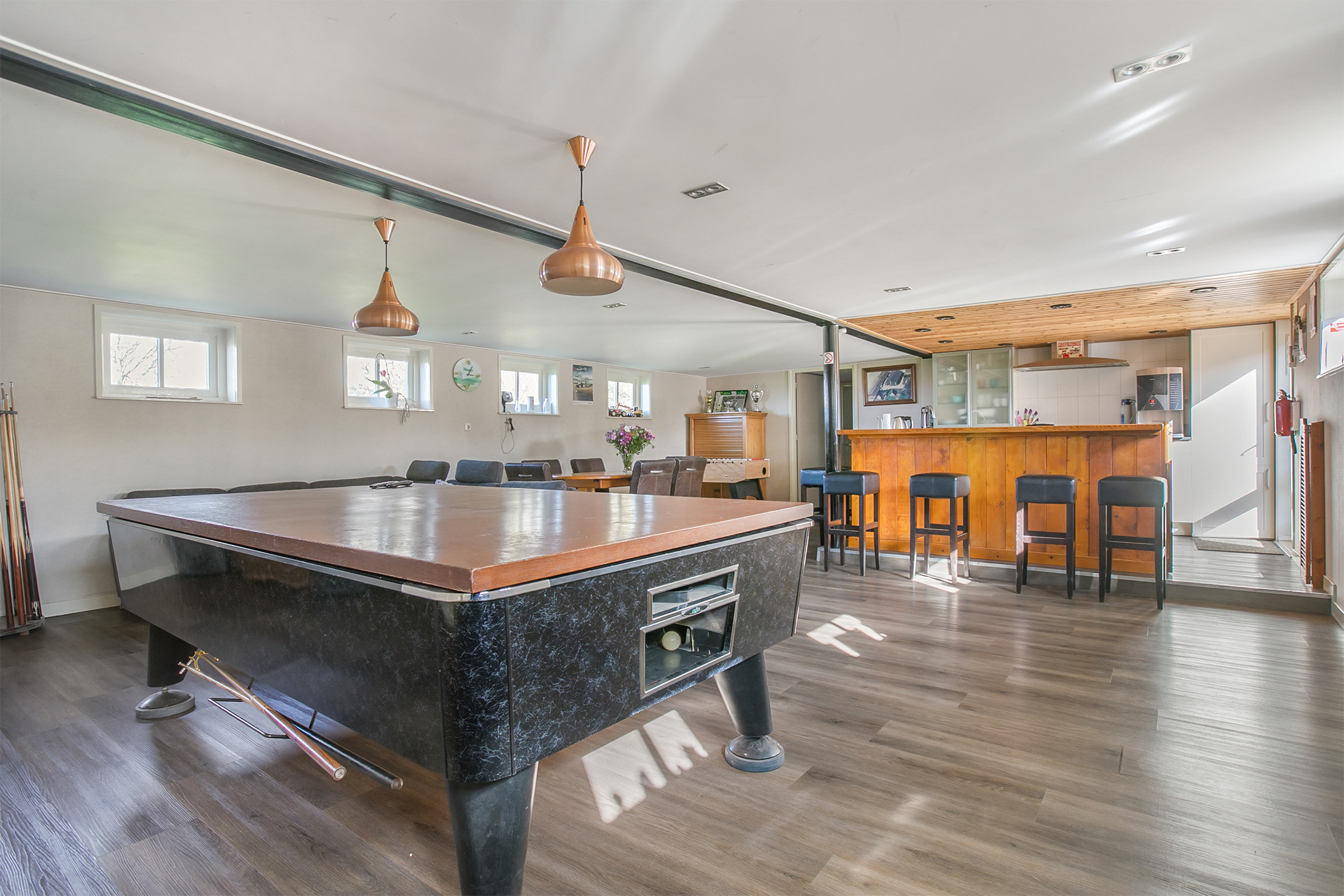 Bij binnenkomst in de woonkamer met open keuken zijn de openslaande deuren een echte eyecatcher. Deze brengen, samen met de ramen aan alle zijden van de ruimte, veel natuurlijk licht binnen, wat passend is bij de omgeving van het woonhuis. De keuken is voorzien van een vijfpits kookplaat, oven, combimagnetron, vaatwasser en koelkast. Aan de linkerzijde van de keuken bevindt zich een tweede hal, te gebruiken als bijkeuken. Op de eerste verdieping zijn maar liefst 5 slaapkamers te vinden, die natuurlijk ook voor andere doeleinden als een sportruimte kunnen fungeren. In de master-bedroom is een airco geplaatst die ook als verwarming gebruikt kan worden. De badkamer aan de linkerzijde van de overloop is evenals de toiletruimte op de begane grond vernieuwd in 2021. Deze beschikt over een wastafel, inloop regendouche en smaakvolle moderne tegels. De overloop biedt tevens toegang tot een aparte ruimte waar de HR-combiketel (2016) hangt en heeft daarnaast een vlizotrap die leidt naar de vliering/bergzolder. Voorlopig energielabel C.