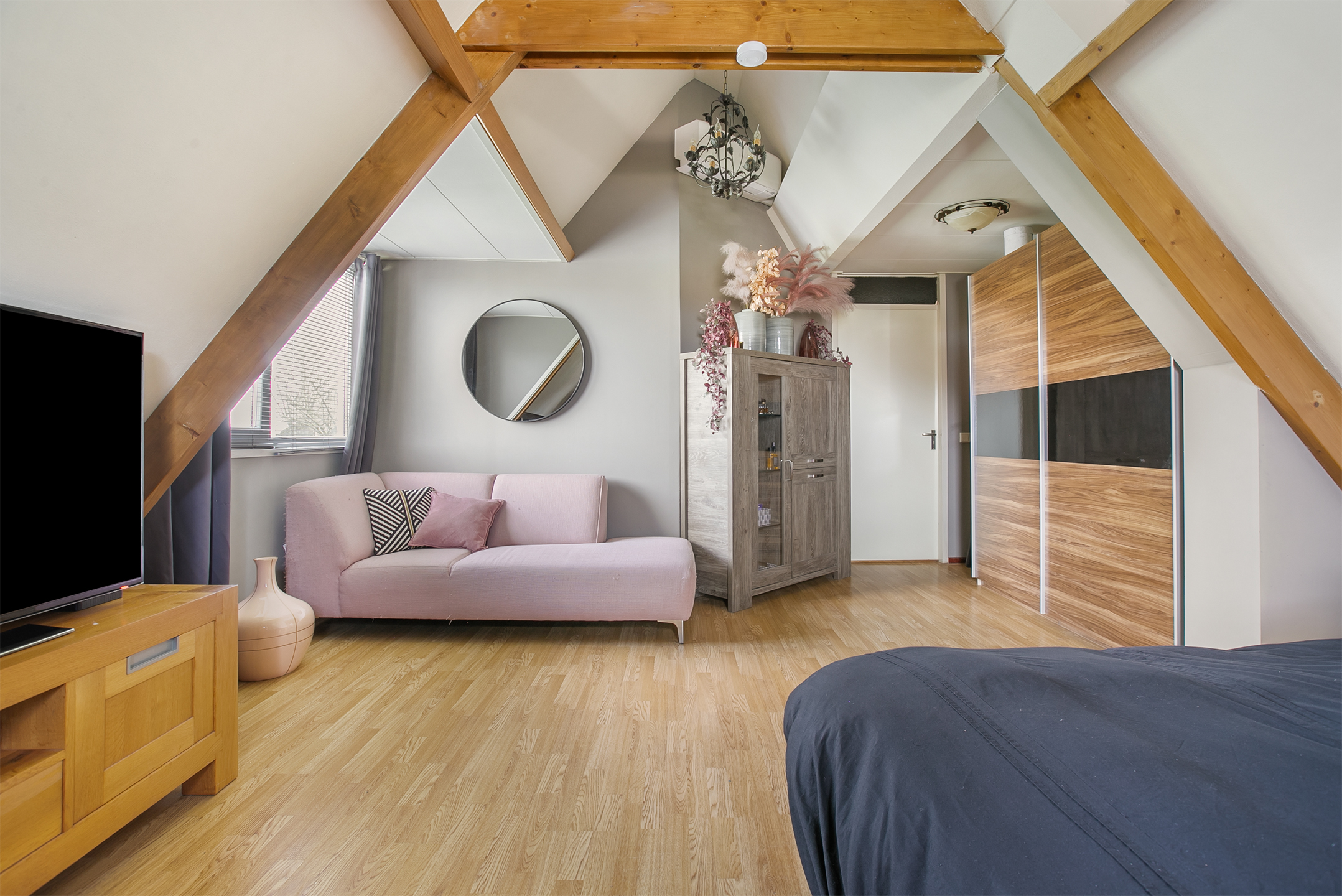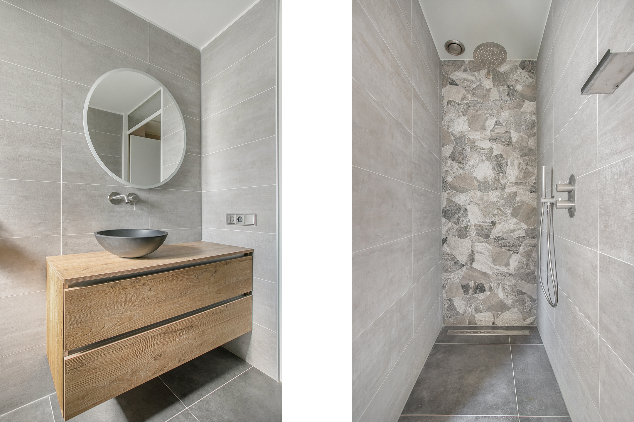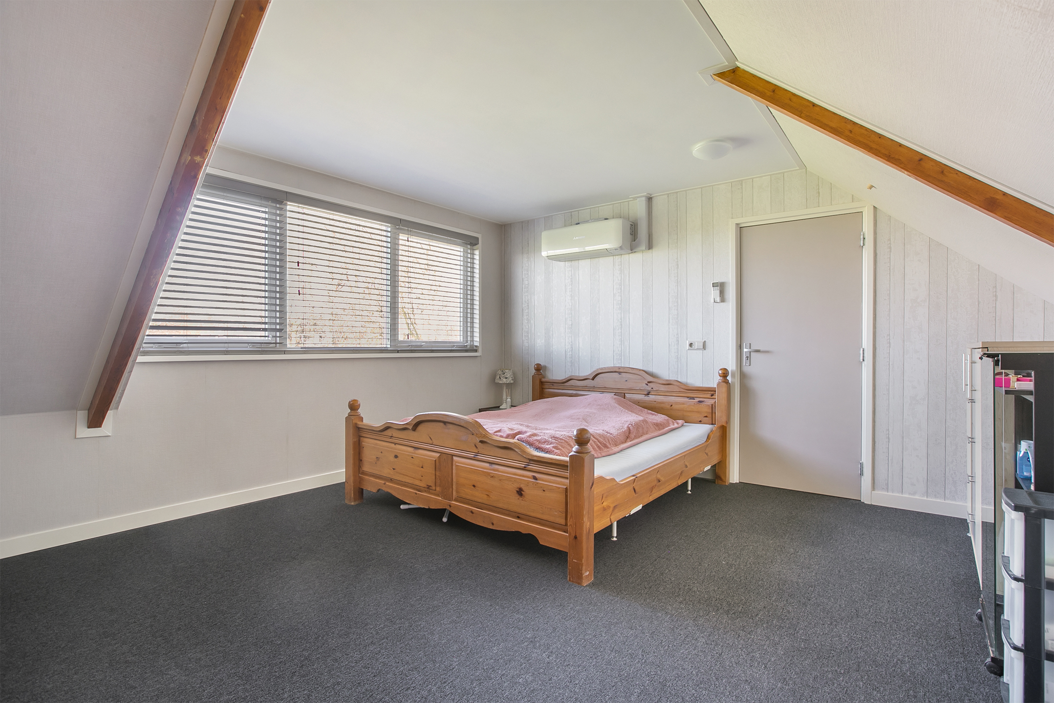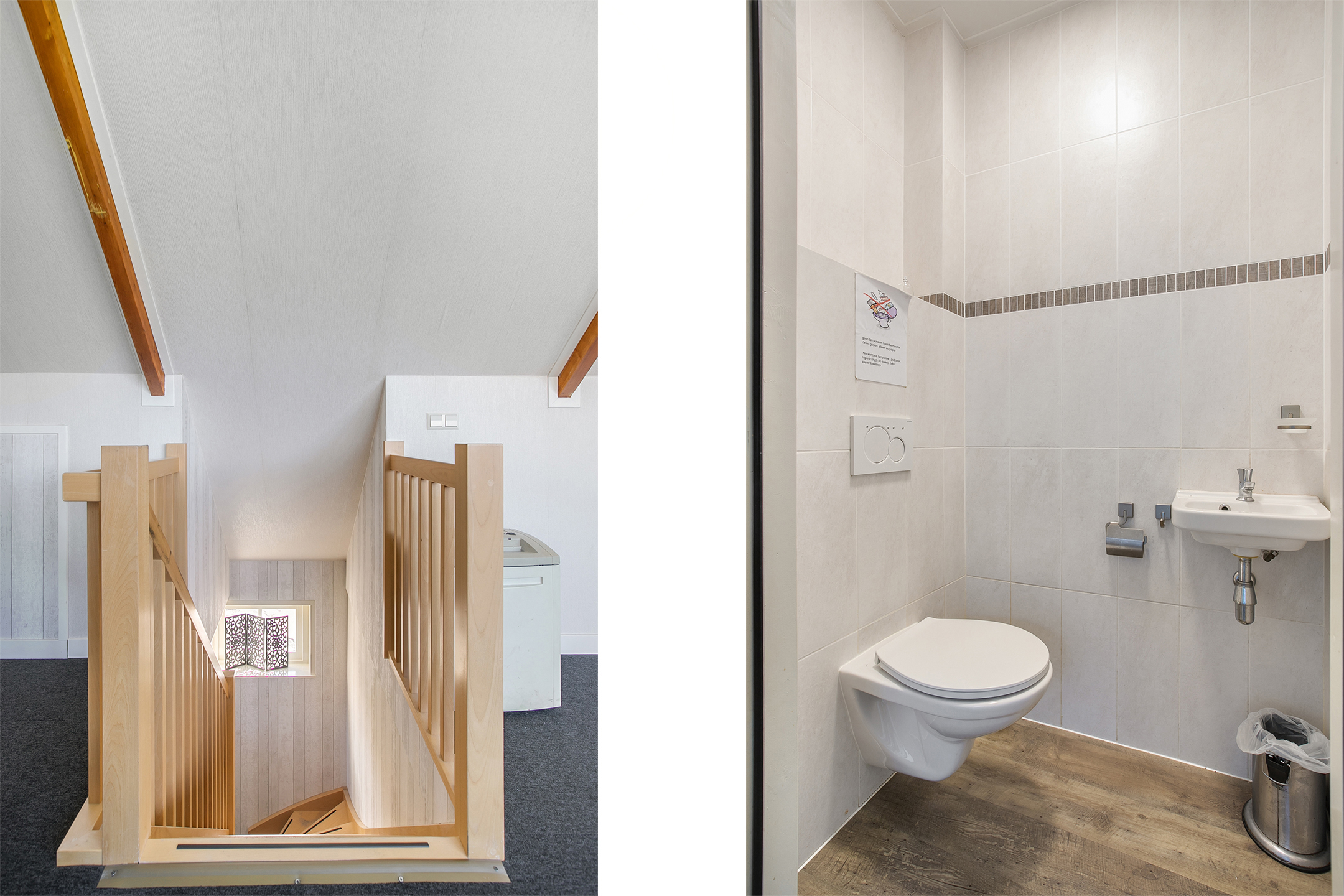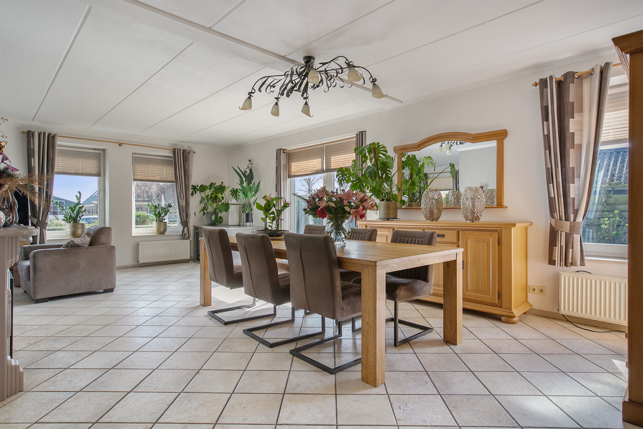 Bij binnenkomst in de woonkamer met open keuken zijn de openslaande deuren een echte eyecatcher. Deze brengen, samen met de ramen aan alle zijden van de ruimte, veel natuurlijk licht binnen, wat passend is bij de omgeving van het woonhuis. De keuken is voorzien van een vijfpits kookplaat, oven, combimagnetron, vaatwasser en koelkast. Aan de linkerzijde van de keuken bevindt zich een tweede hal, te gebruiken als bijkeuken. Op de eerste verdieping zijn maar liefst 5 slaapkamers te vinden, die natuurlijk ook voor andere doeleinden als een sportruimte kunnen fungeren. In de master-bedroom is een airco geplaatst die ook als verwarming gebruikt kan worden. De badkamer aan de linkerzijde van de overloop is evenals de toiletruimte op de begane grond vernieuwd in 2021. Deze beschikt over een wastafel, inloop regendouche en smaakvolle moderne tegels. De overloop biedt tevens toegang tot een aparte ruimte waar de HR-combiketel (2016) hangt en heeft daarnaast een vlizotrap die leidt naar de vliering/bergzolder. Voorlopig energielabel C.