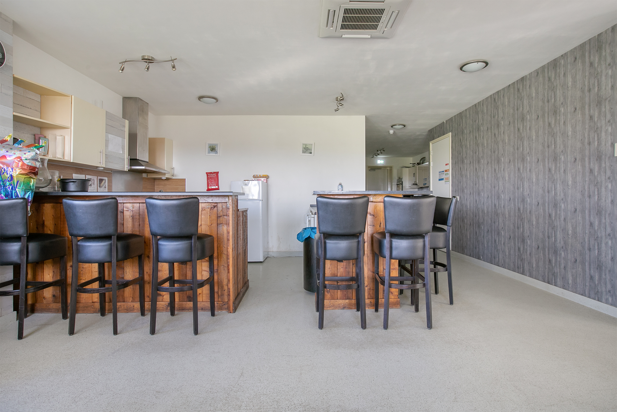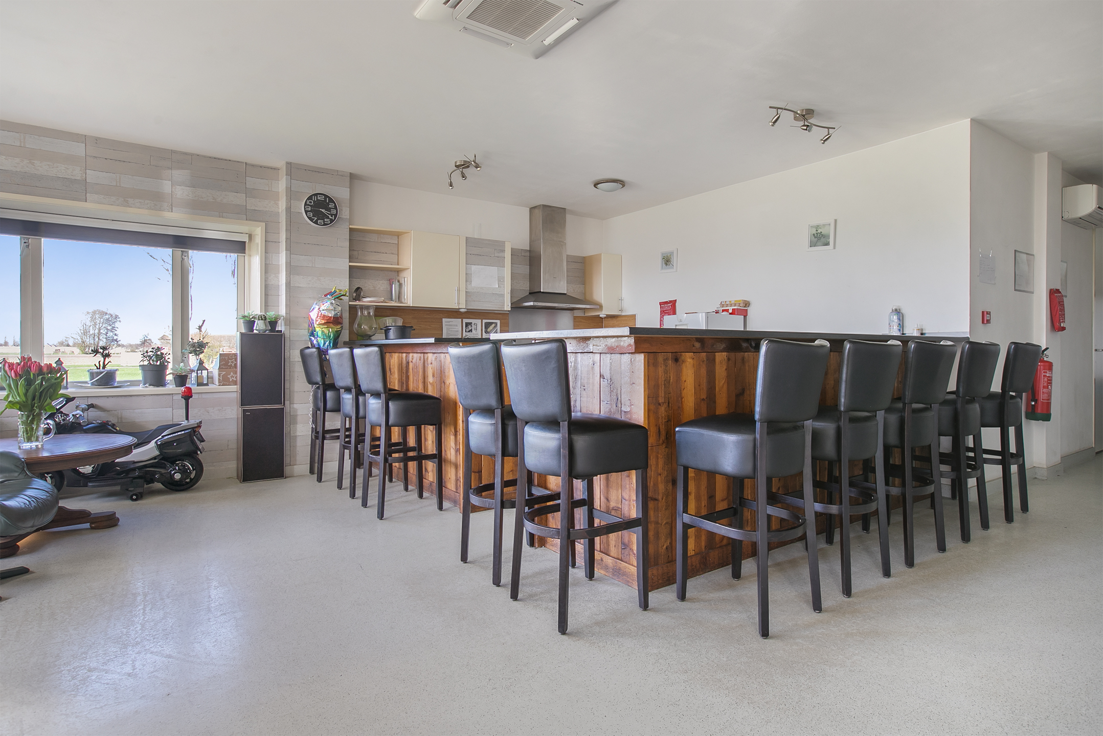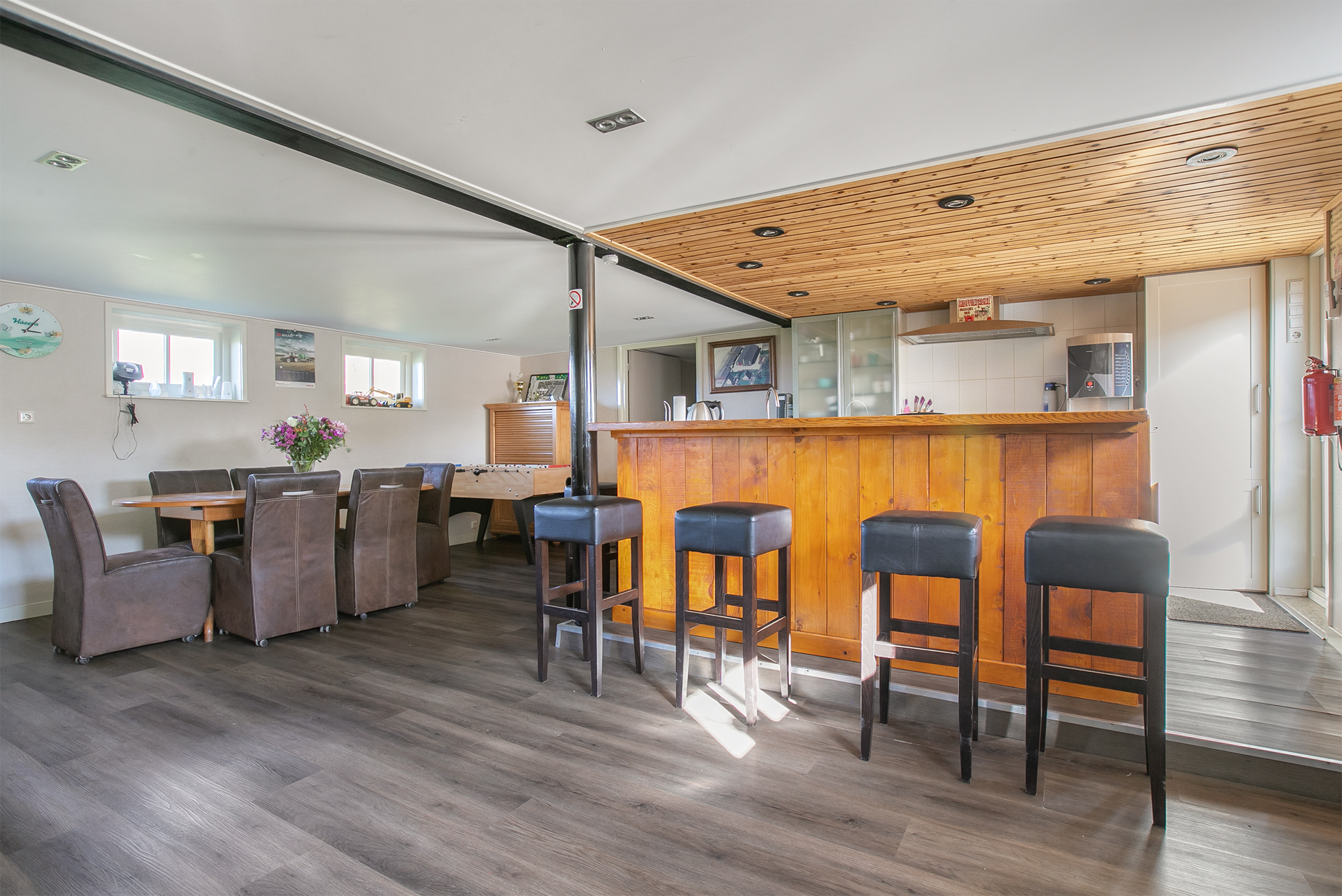 Deze sfeervolle kantine beschikt over een bar en keukenblok, badkamer, toilet en doucheruimte. Via de houten trap betreedt u de eerste verdieping waar een grote slaapkamer met dakkapel is gerealiseerd. Verwarming en koeling in dit pand is middels airconditioning en een warmtepomp. De ramen zijn geheel voorzien van isolerende beglazing hen heeft een geïsoleerd zadeldak gedekt met dakpannen. Aan de achterzijde is tevens een groot dakkapel.