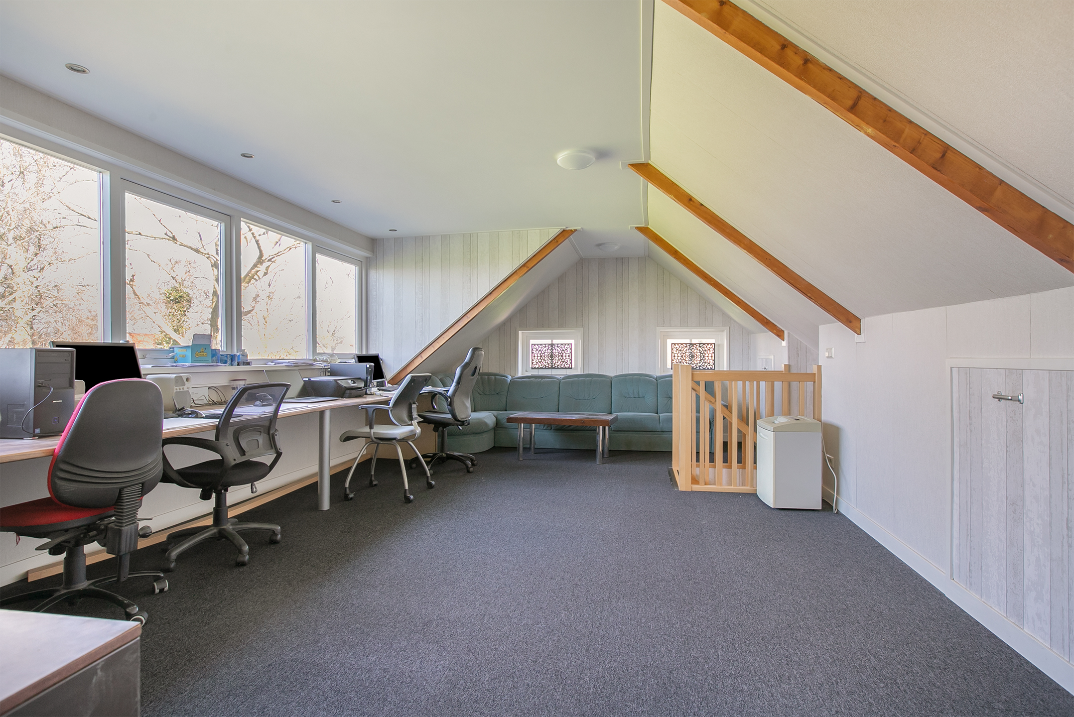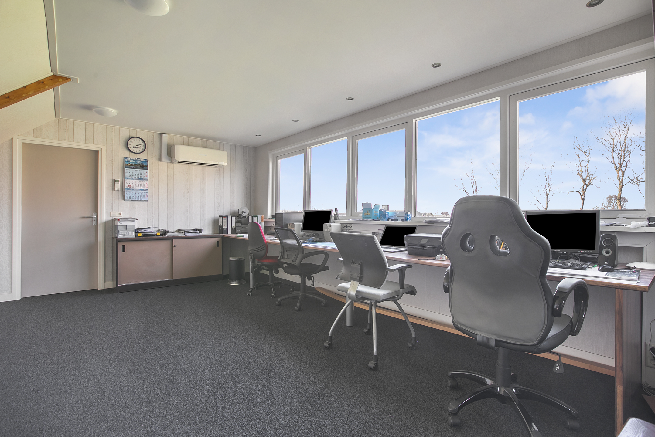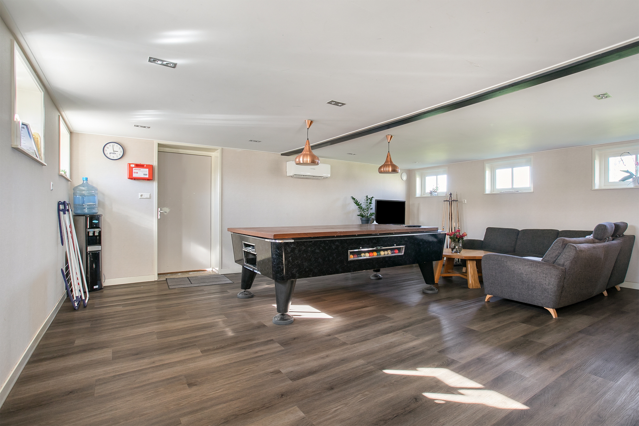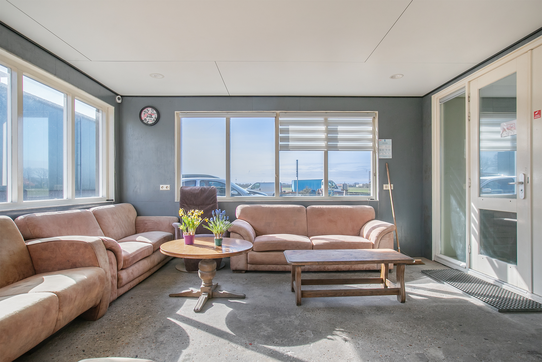 Deze sfeervolle kantine beschikt over een bar en keukenblok, badkamer, toilet en doucheruimte. Via de houten trap betreedt u de eerste verdieping waar een grote slaapkamer met dakkapel is gerealiseerd. Verwarming en koeling in dit pand is middels airconditioning en een warmtepomp. De ramen zijn geheel voorzien van isolerende beglazing hen heeft een geïsoleerd zadeldak gedekt met dakpannen. Aan de achterzijde is tevens een groot dakkapel.