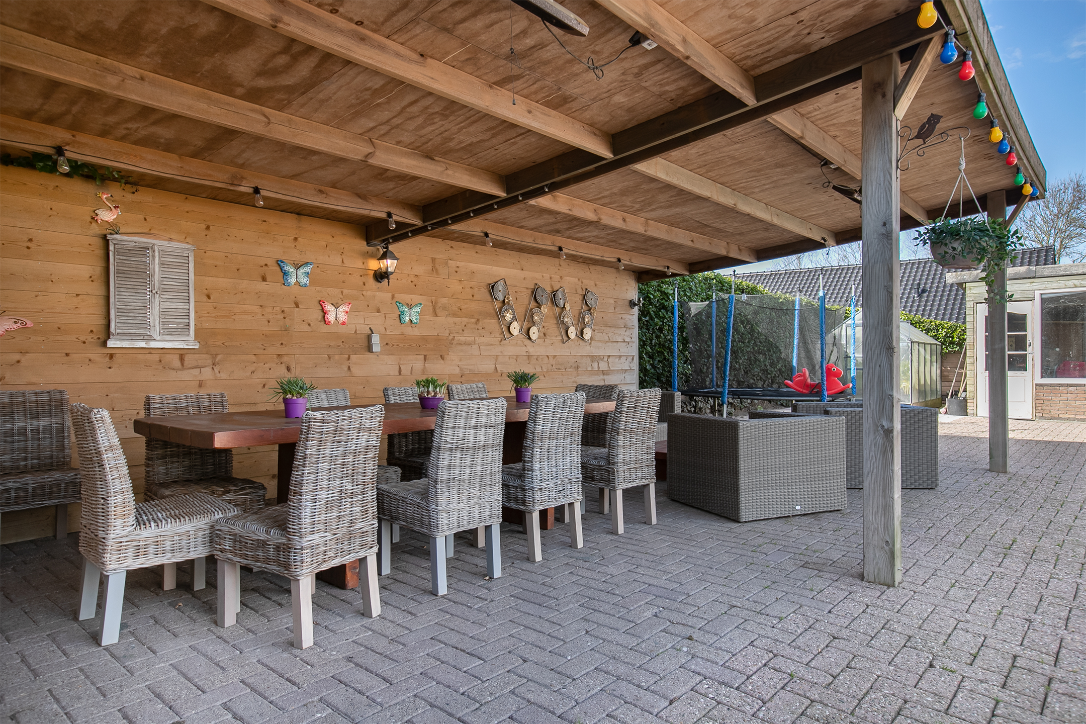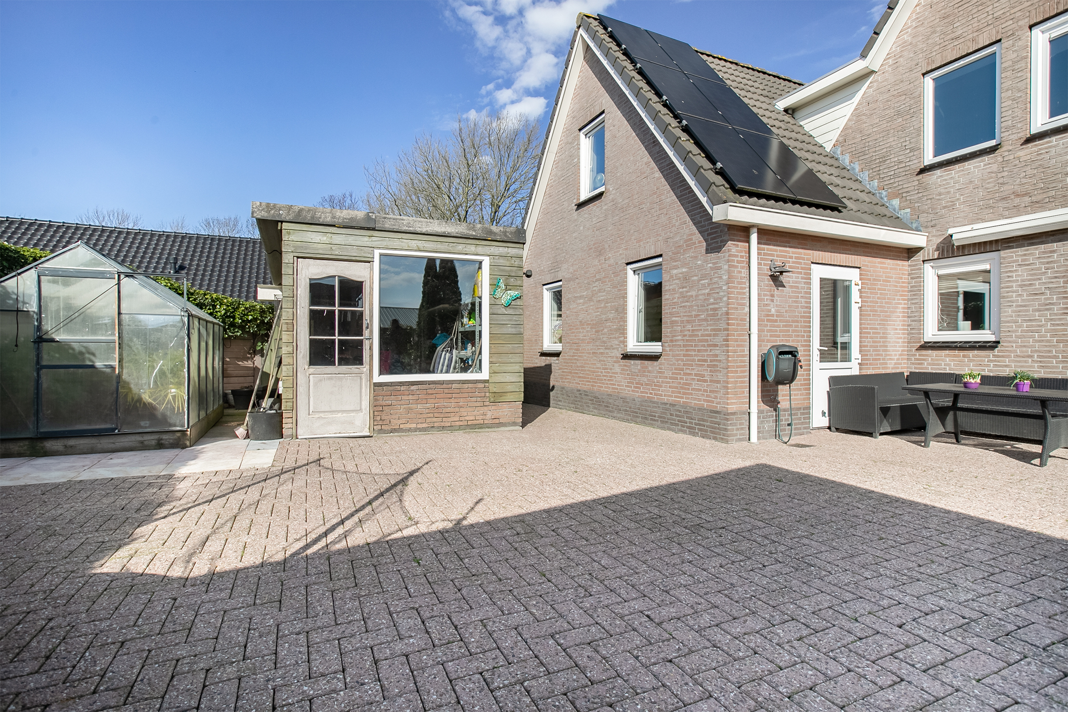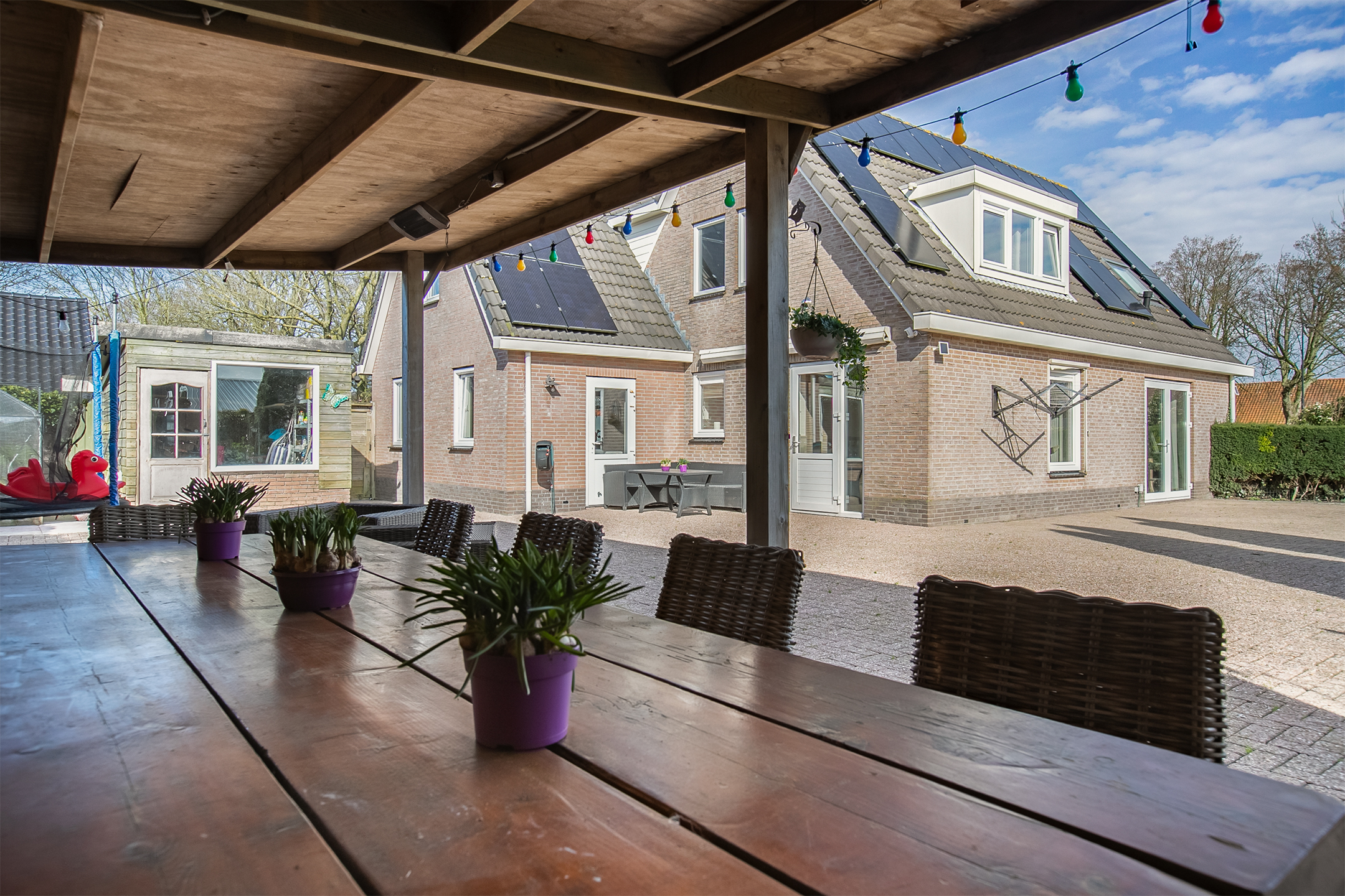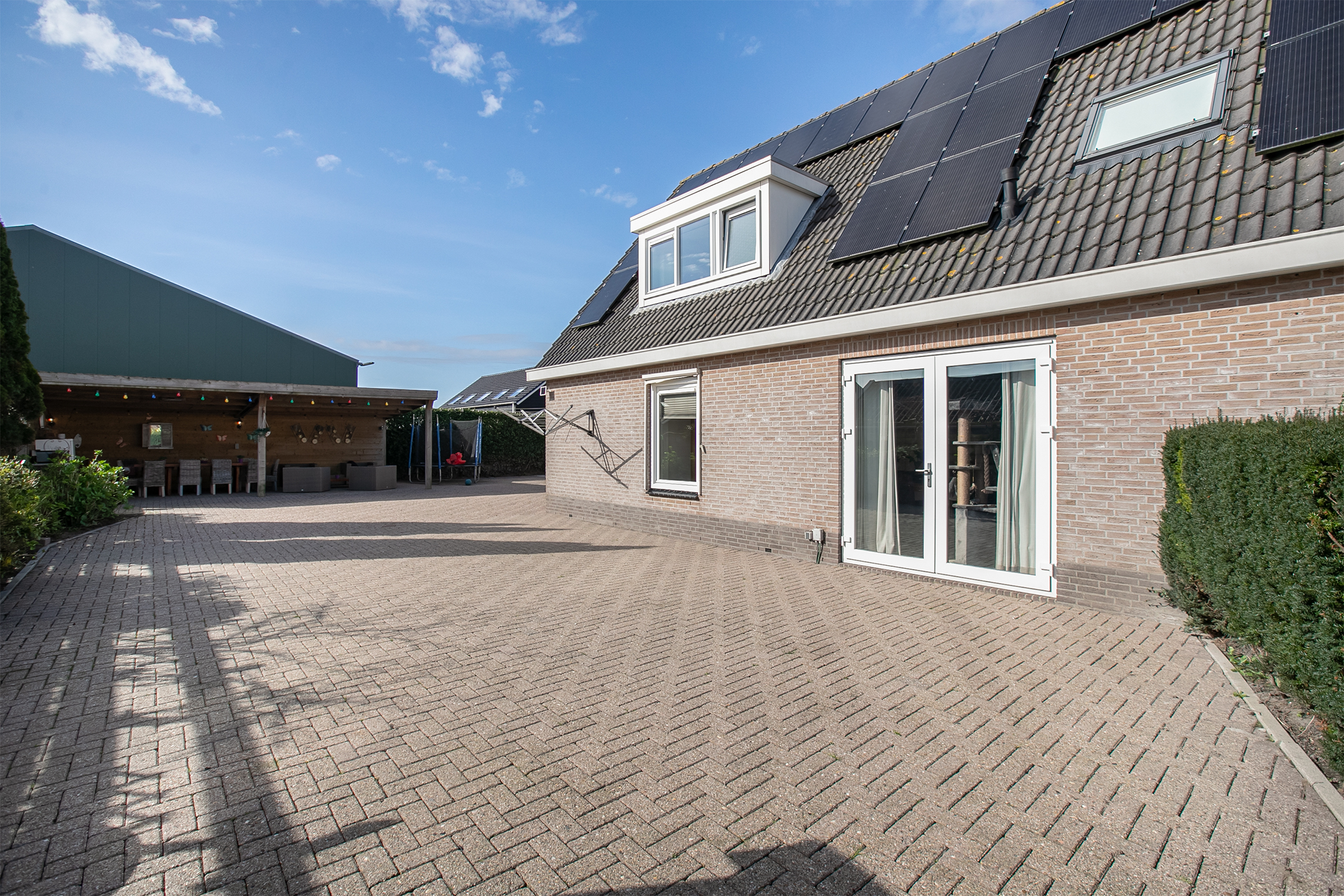 Het royale woonhuis met een oppervlakte van 167 m2 is geheel voorzien van kunststof kozijnen en isolerende beglazing. Tevens beschikt het over een gedeeltelijke vloerverwarming op de begane grond en badkamer. Op het dak liggen 25 zonnepanelen met een totale capaciteit van 7.500 KWh. De garage aan de zijkant van het huis is verbonden met de keuken van de woning. Daarnaast is er buiten nog een extra berging met een oppervlakte van circa 12 m2 en een ruime vrijstaande overkapping. Bij binnenkomst op de begane grond bevindt zich aan uw linkerzijde de vernieuwde en geheel betegelde toiletruimte (2021) met zwevend toilet en fonteintje.