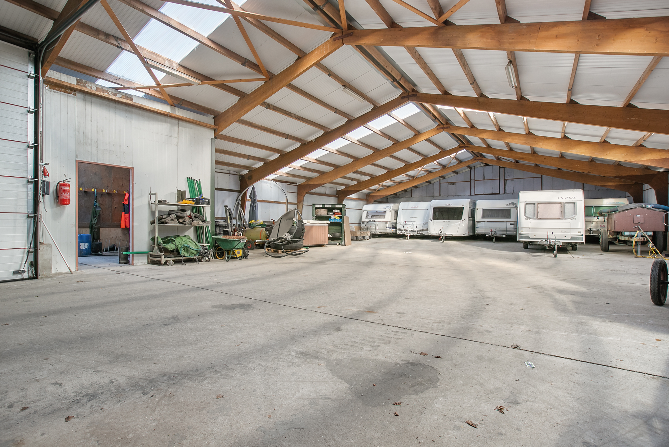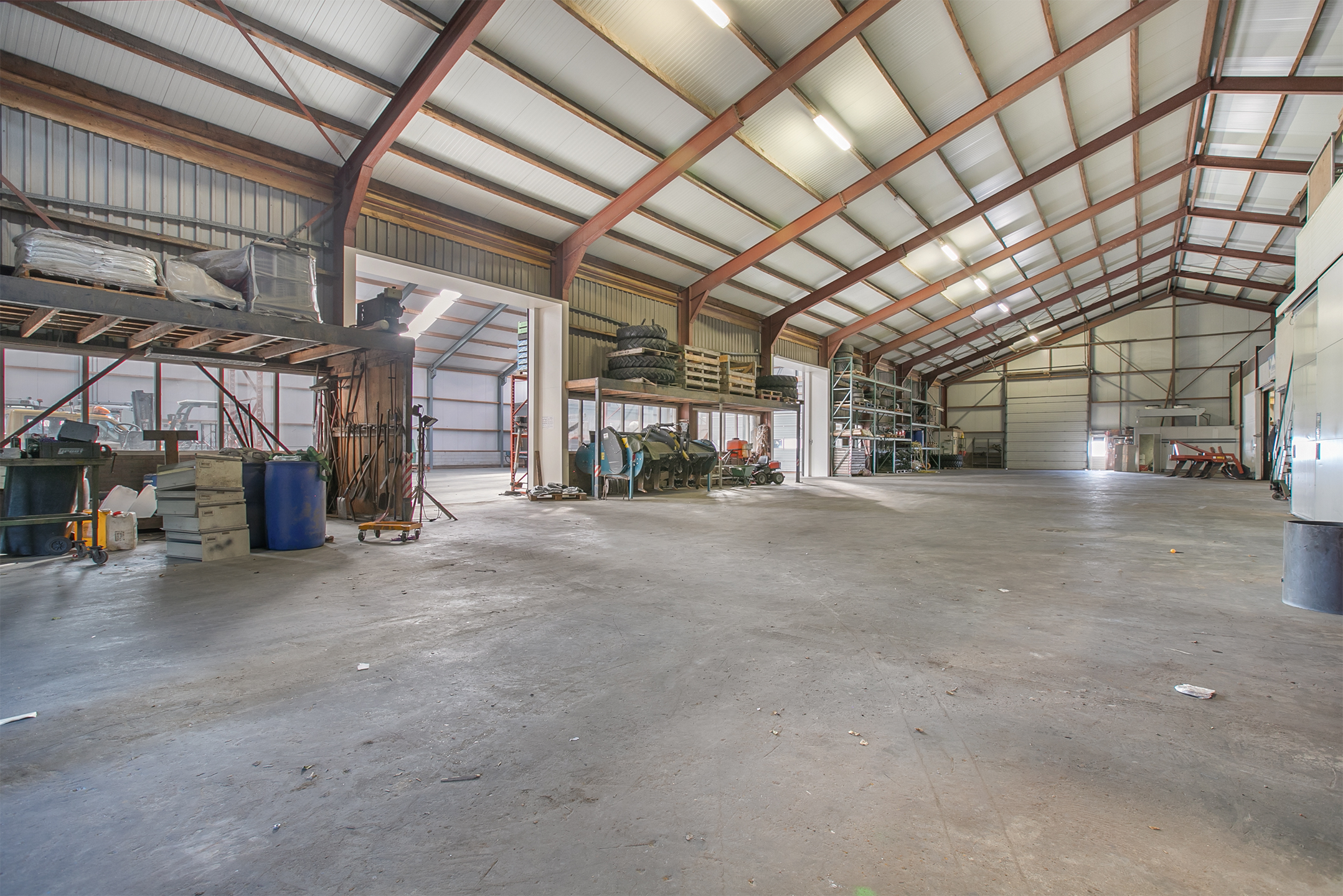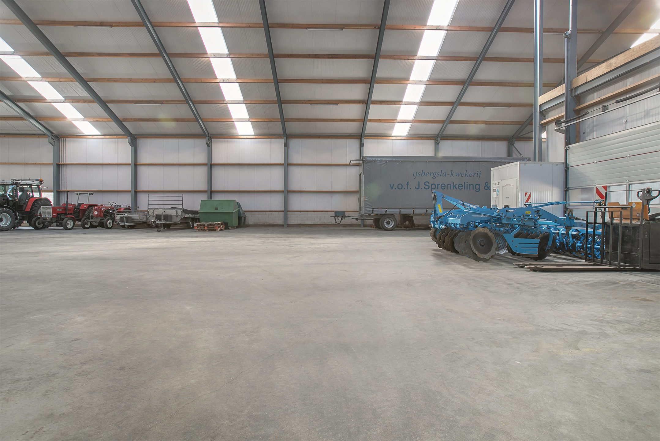 Schuur 2 beschikt over een laad- en losruimte, opslagruimte fust en machineberging. Op deze schuur heeft net als de eerste elektrische overheaddeuren en een zonnestroomsysteem met maar liefst 259 zonnepanelen met een capaciteit van 82.000 KWh. Daarnaast is deze ruimte voorzien van een gewapende betonvloer (24cm dikte) op schuimbetonnen ondervloer, stalen spanten en twee inpandige dockshelters met levellers.